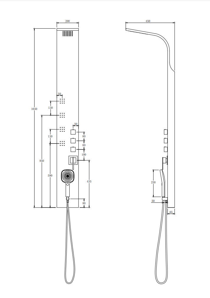 - Вынос верхнего душа от стены, см: 45