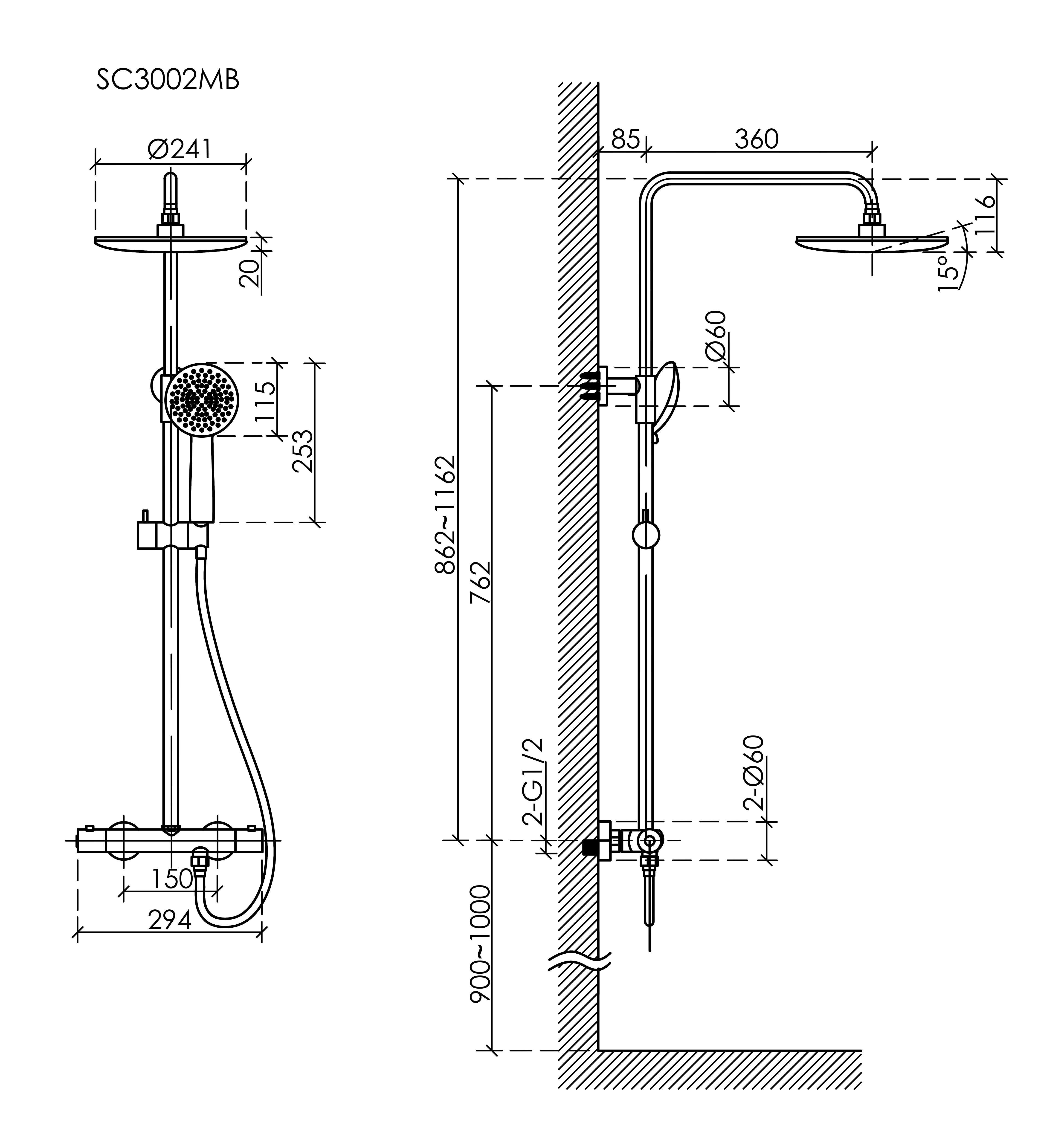 Оснащение: душевой шланг / душевая лейка / держатель для душа / переключатель потоков / эксцентрики