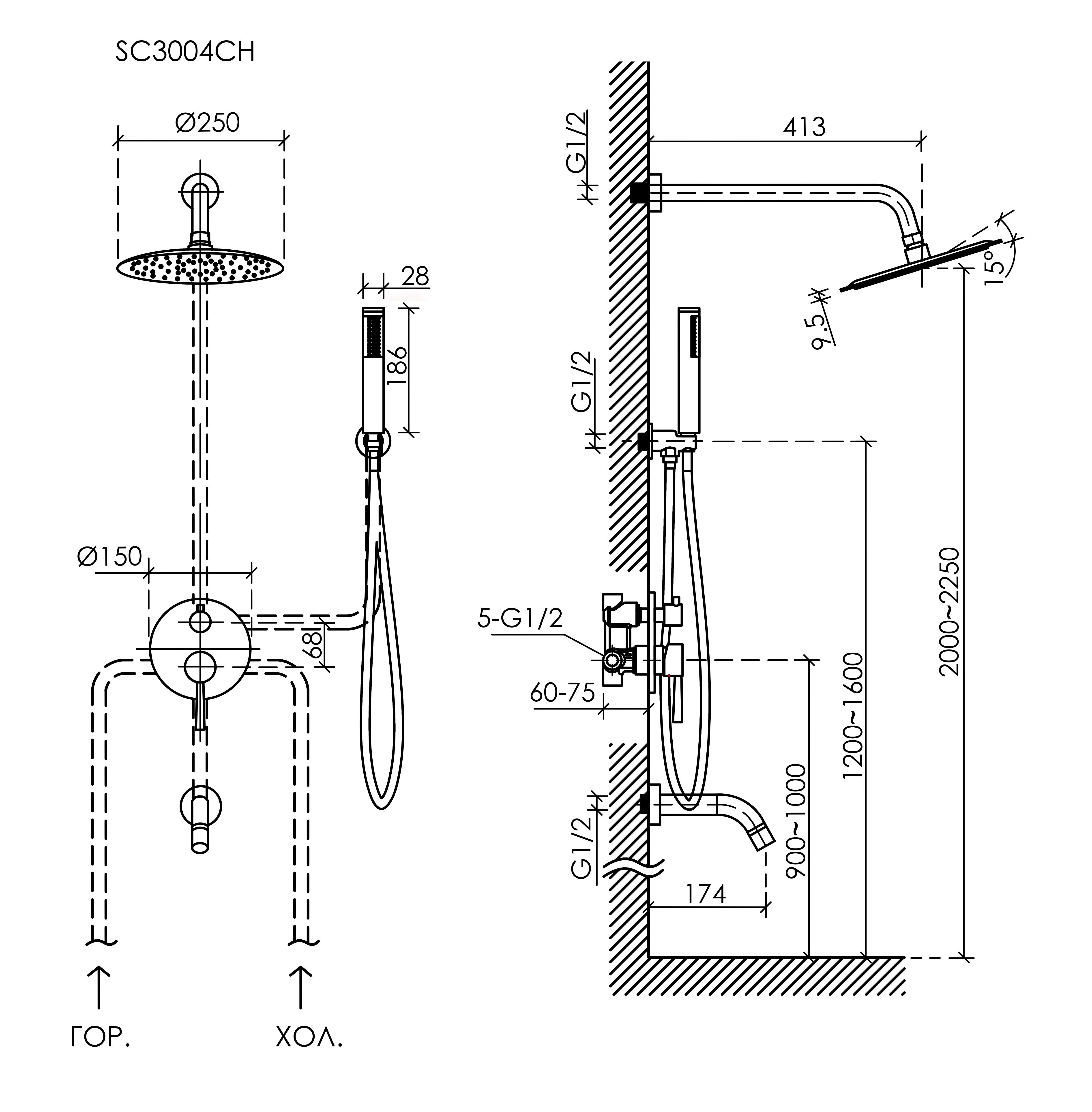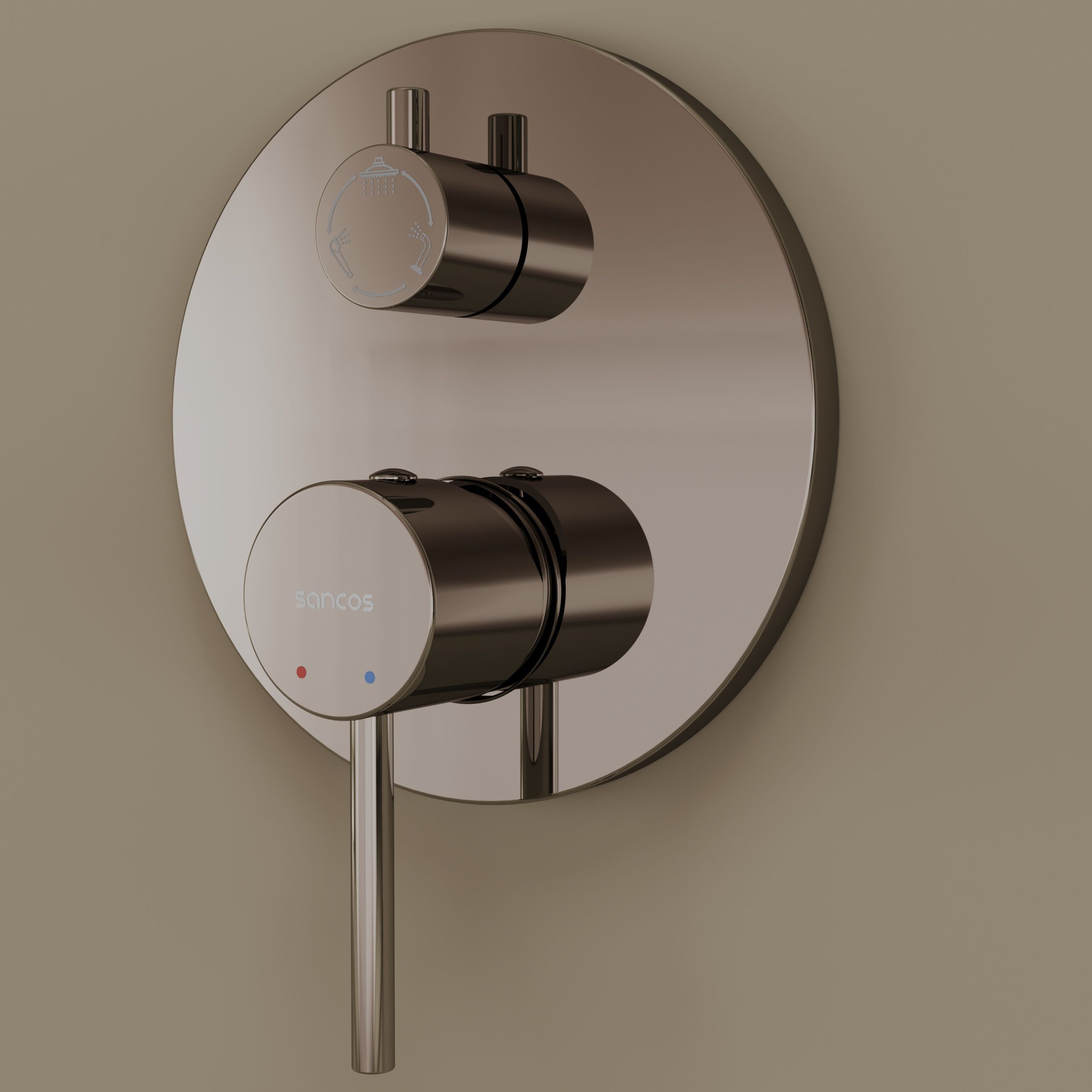 Оснащение: душевой шланг / душевая лейка / держатель для душа / переключатель потоков