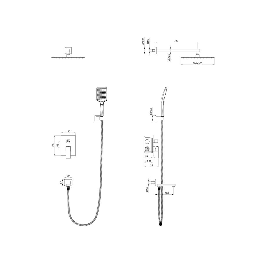 - Форма верхнего душа: Прямоугольная