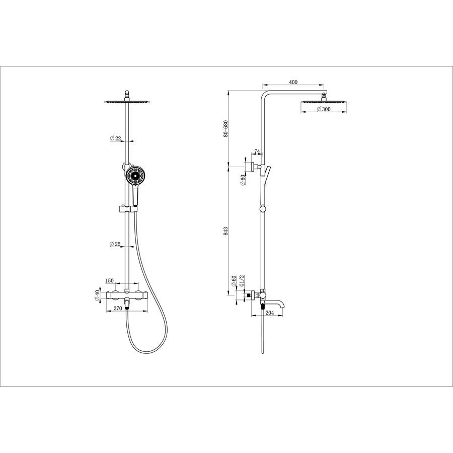 - Форма верхнего душа: Круглая