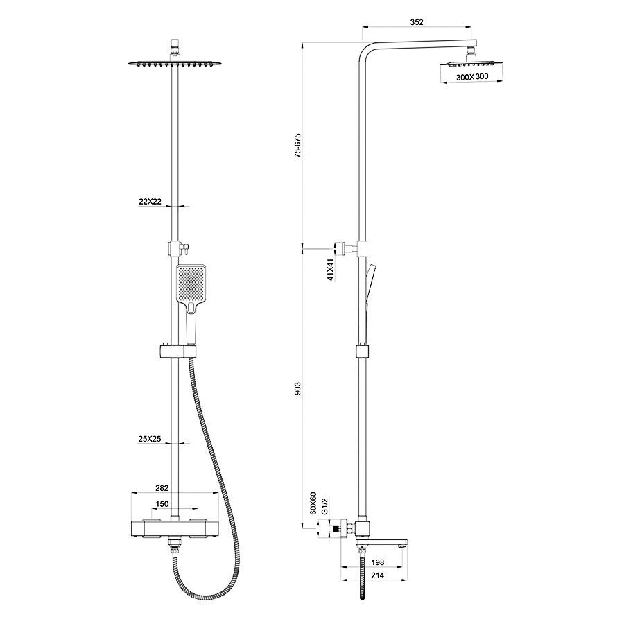 - Форма верхнего душа: Квадратная