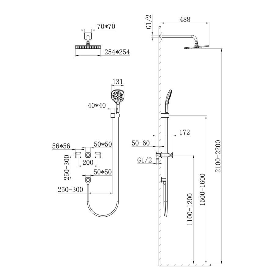 - Комплектация: Смеситель / Душевой шланг/ Держатель для душа / Верхний душ / Душевая лейка / Эксцентрики / Монтажный комплект