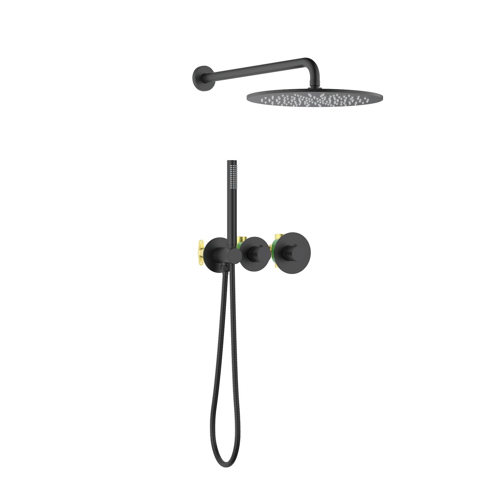 - Комплектация: смеситель, внутренняя часть, верхний душ, душевая лейка, шланг