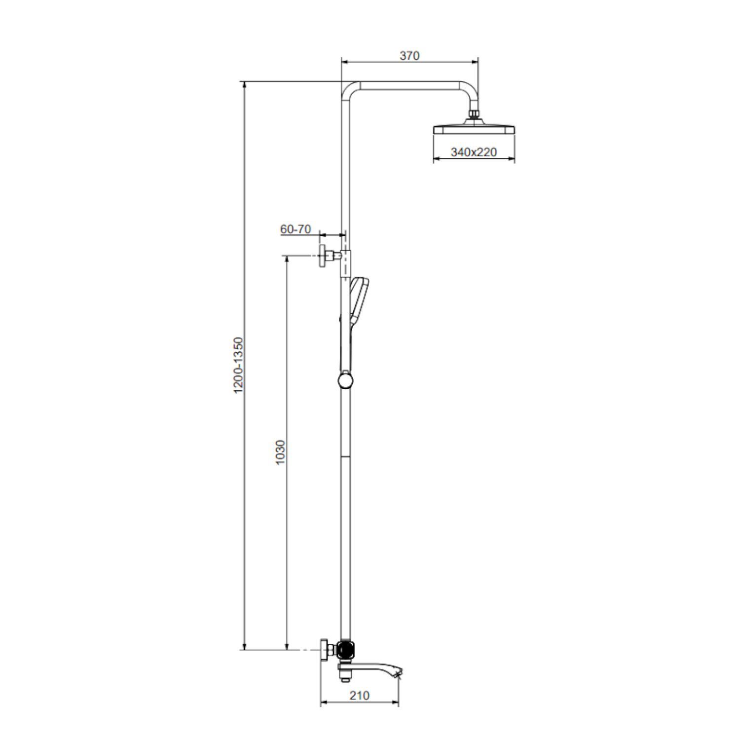 Верхний душ, душевая штанга с держателем лейки, ручной душ, смеситель, шланг |