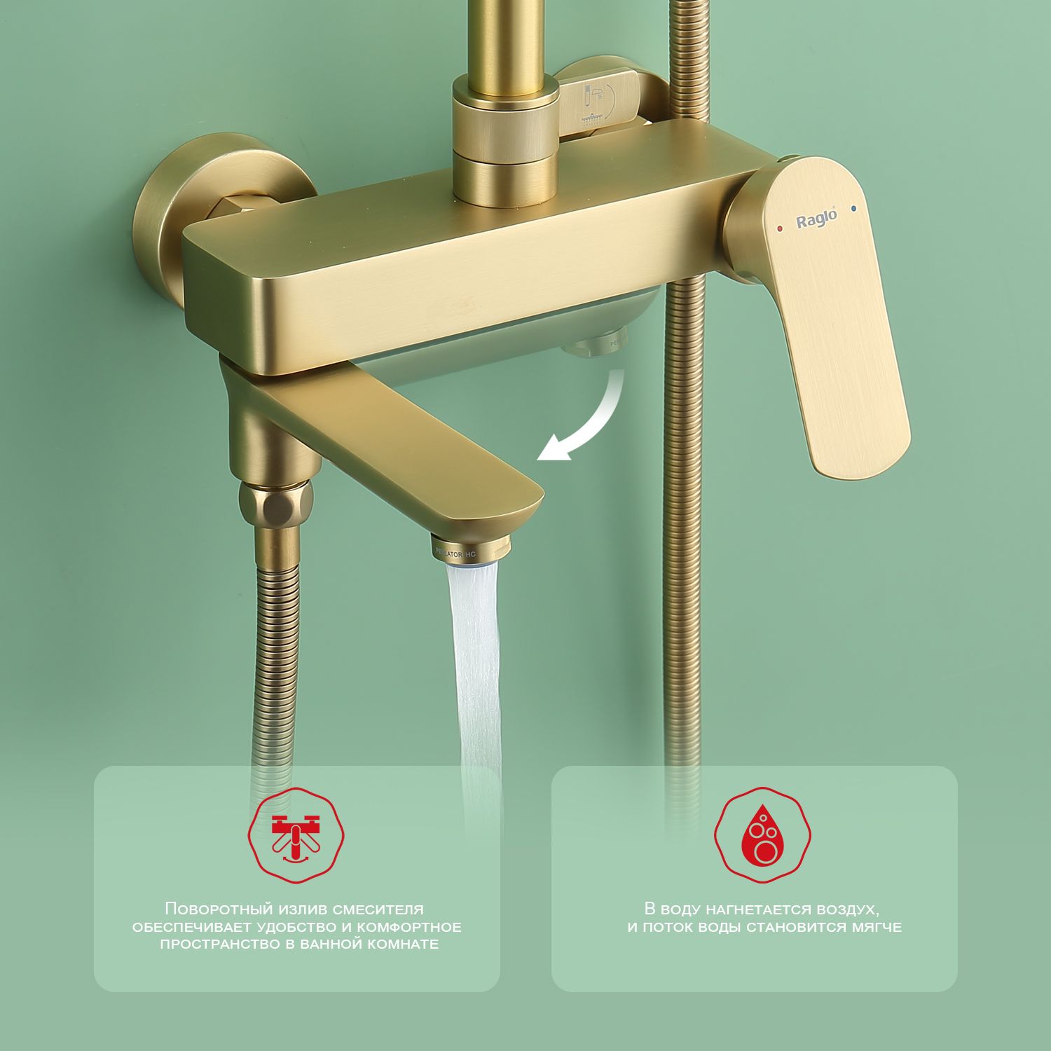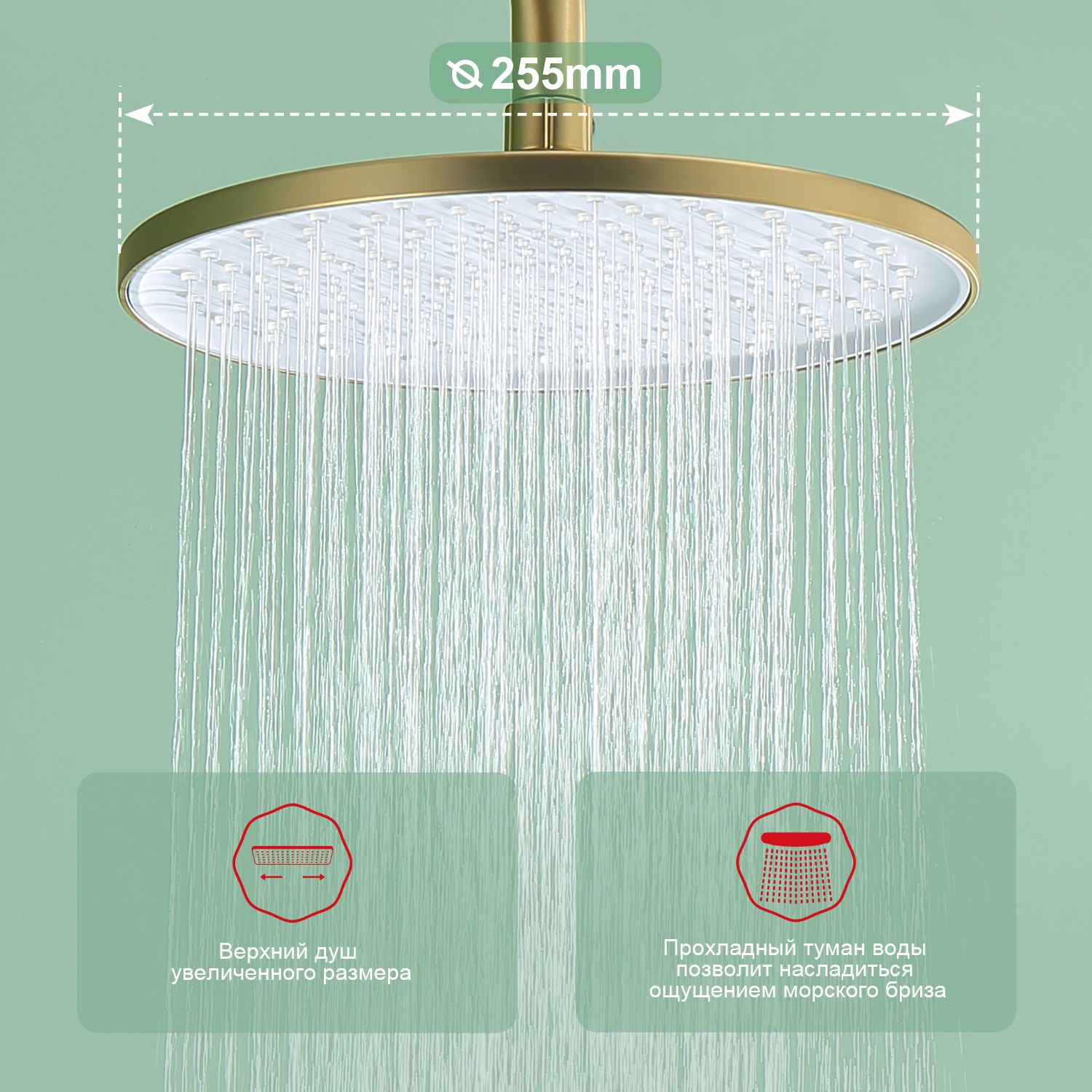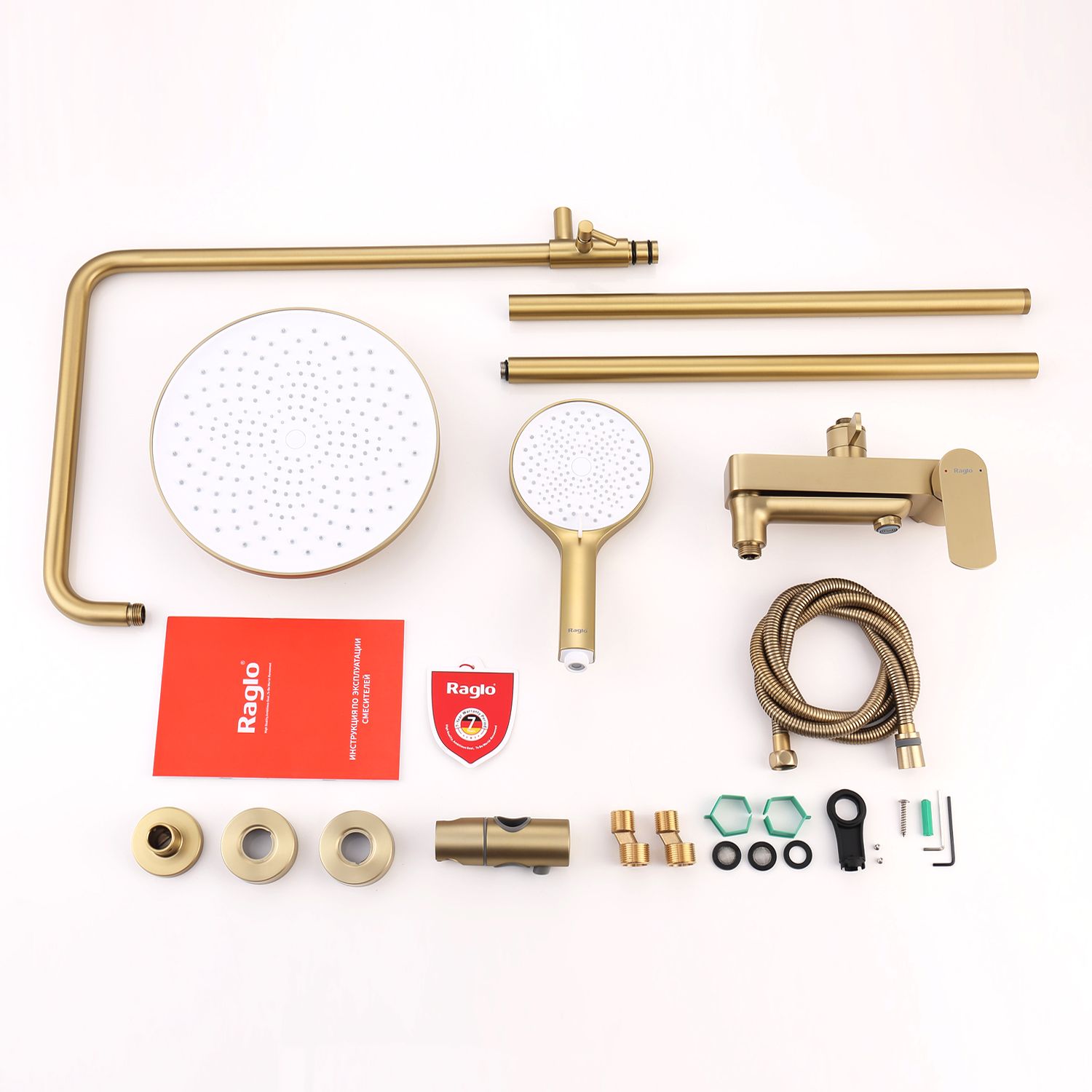 Верхний душ, душевая штанга с держателем лейки, ручной душ, смеситель, шланг |
