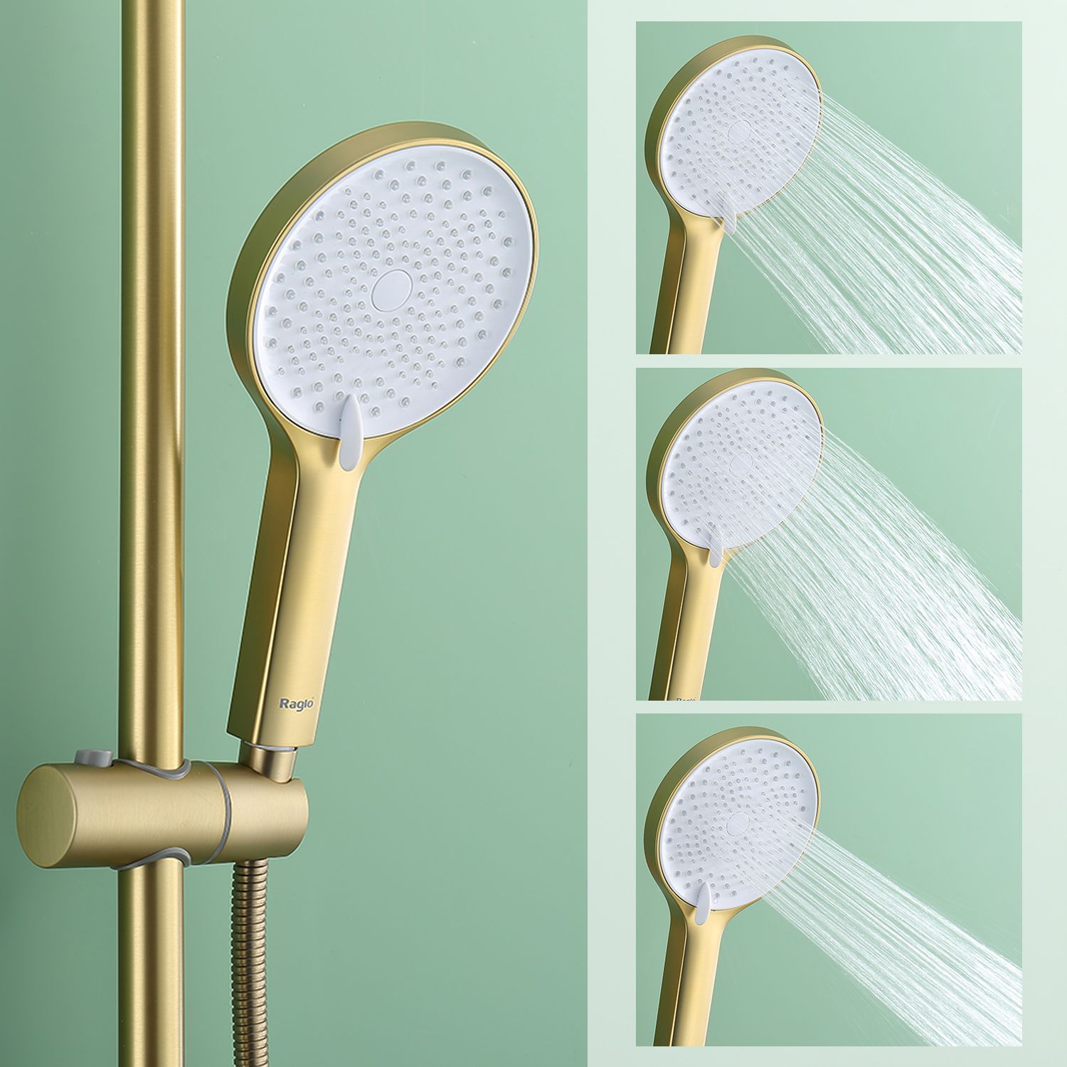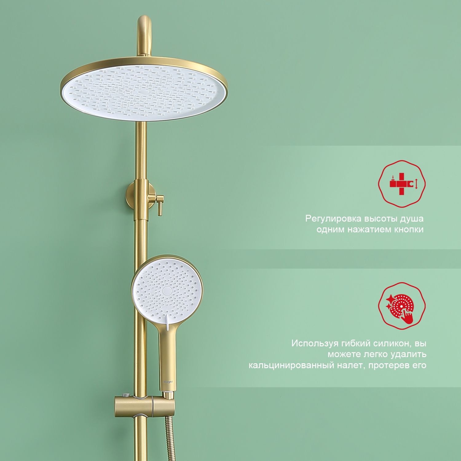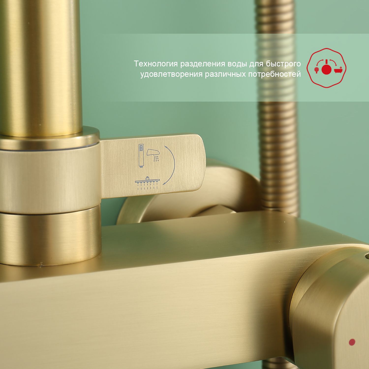 Верхний душ, душевая штанга с держателем лейки, ручной душ, смеситель, шланг |