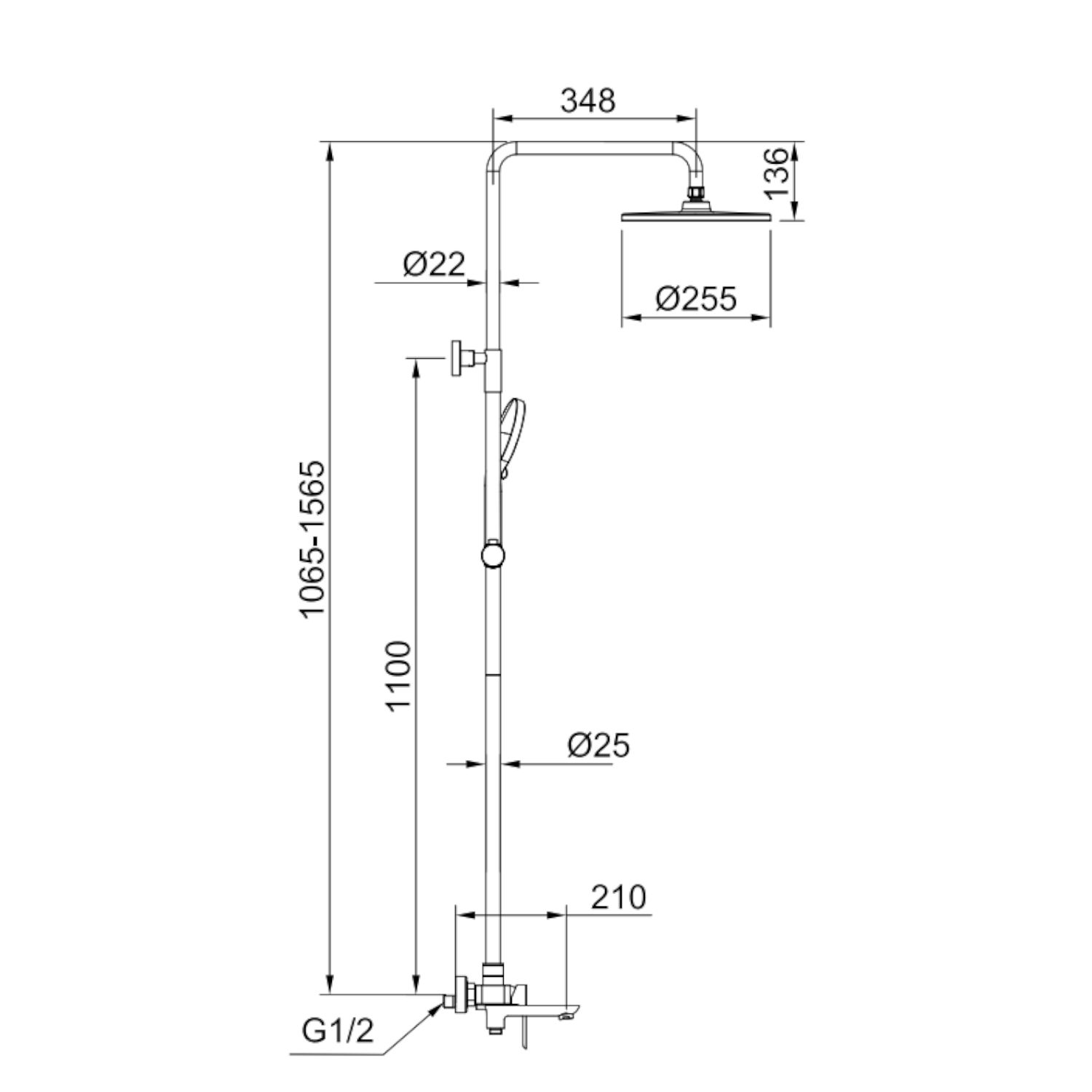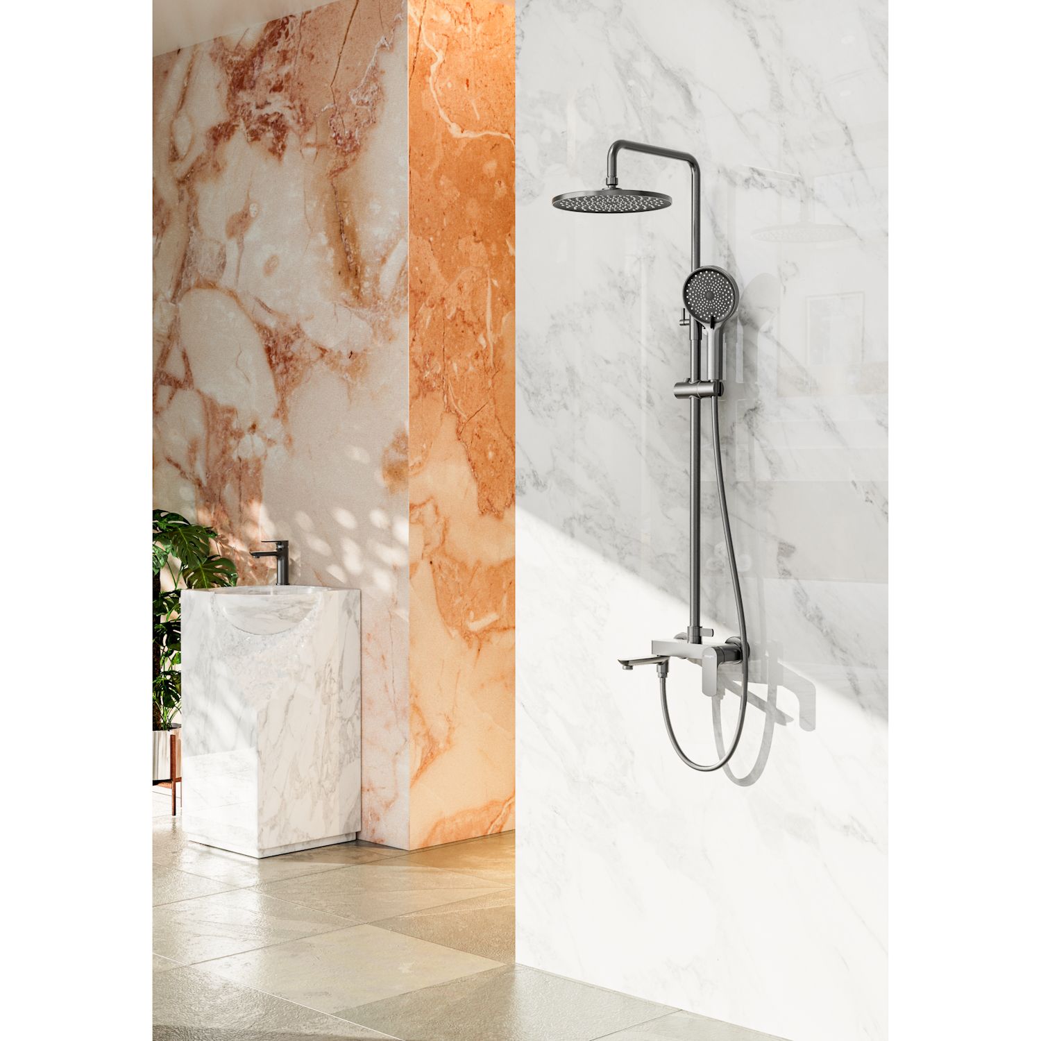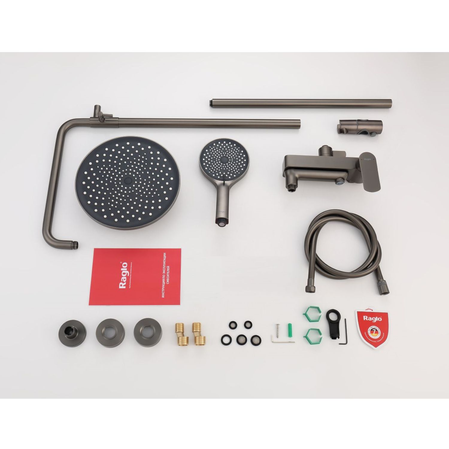 Верхний душ, душевая штанга с держателем лейки, ручной душ, смеситель, шланг |