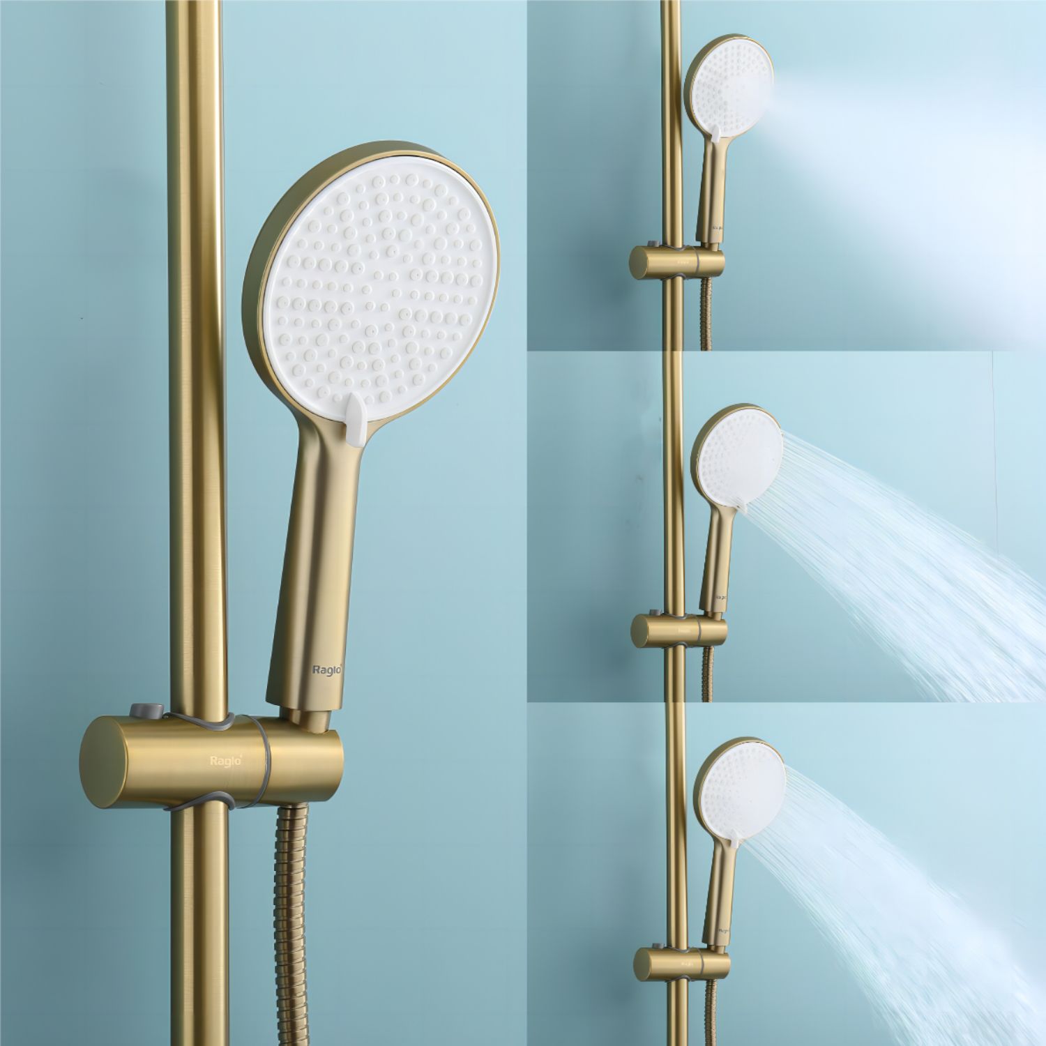 Верхний душ, душевая штанга с держателем лейки, ручной душ, смеситель, шланг |