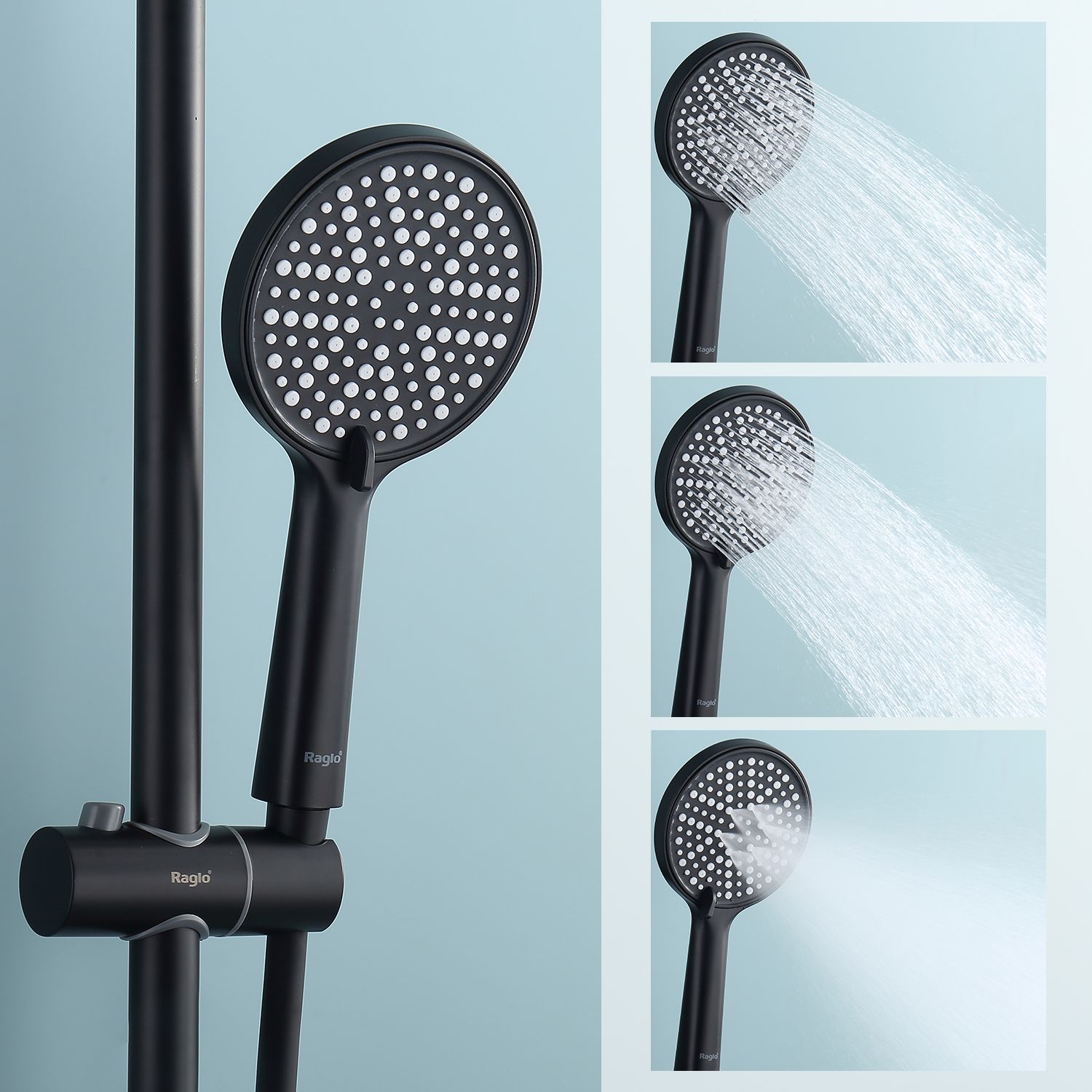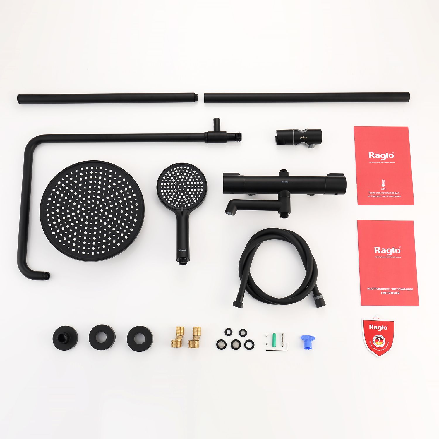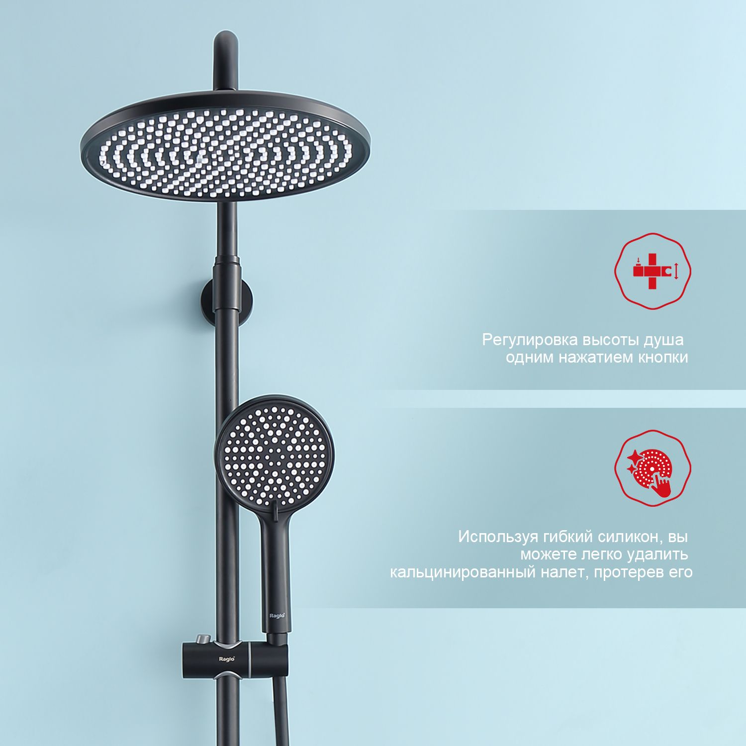 Верхний душ, душевая штанга с держателем лейки, ручной душ, смеситель, шланг |