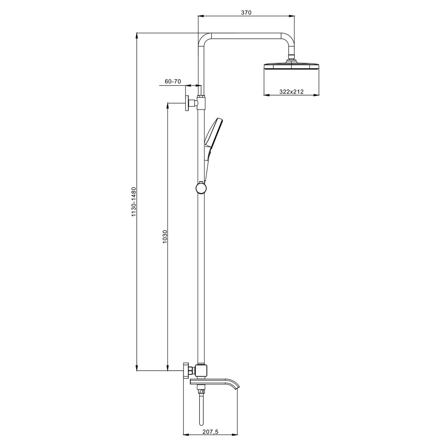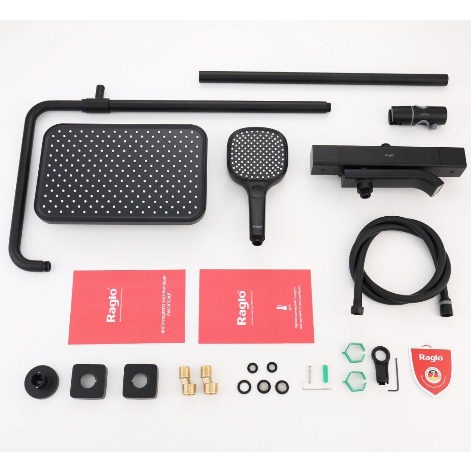 Верхний душ, душевая штанга с держателем лейки, ручной душ, смеситель, шланг |