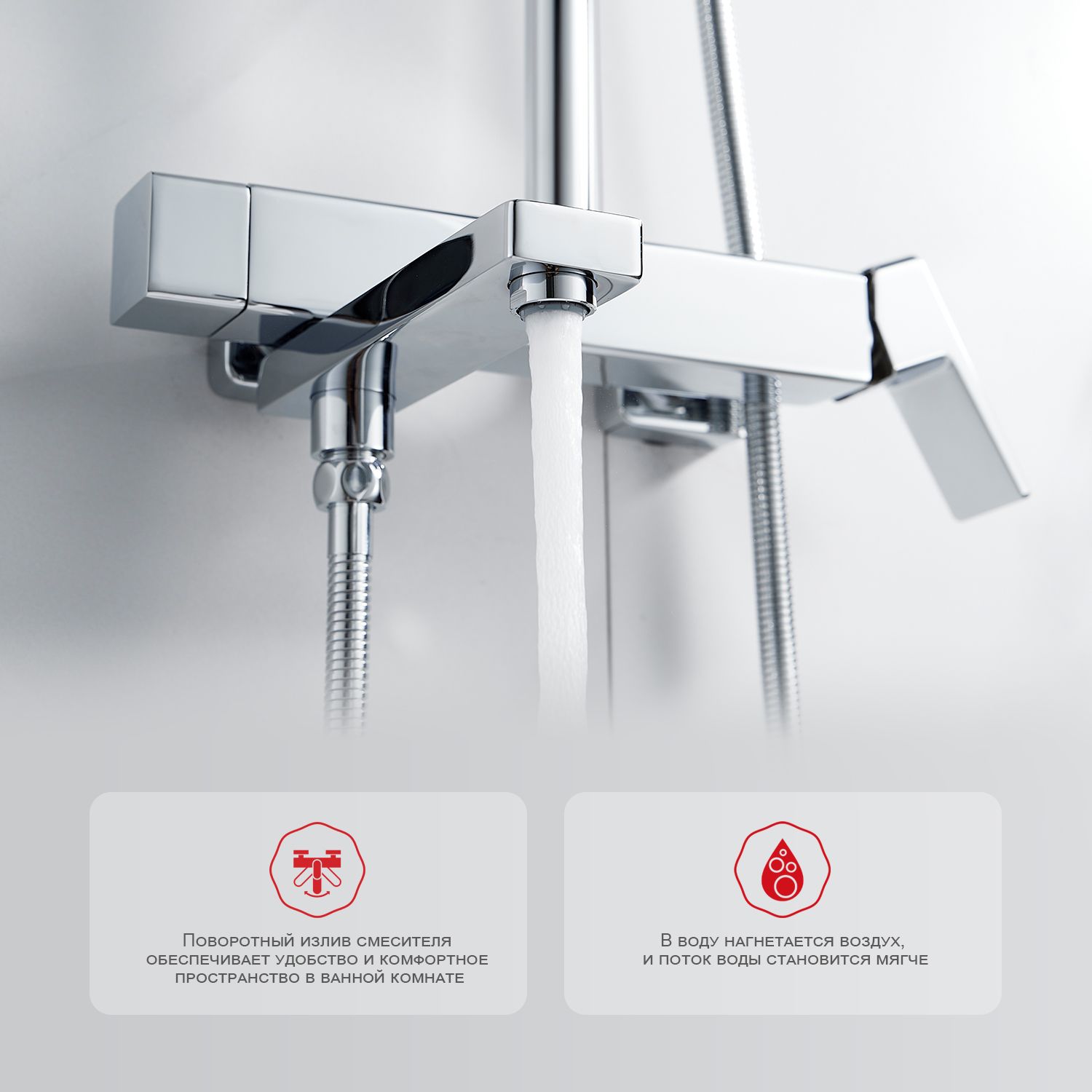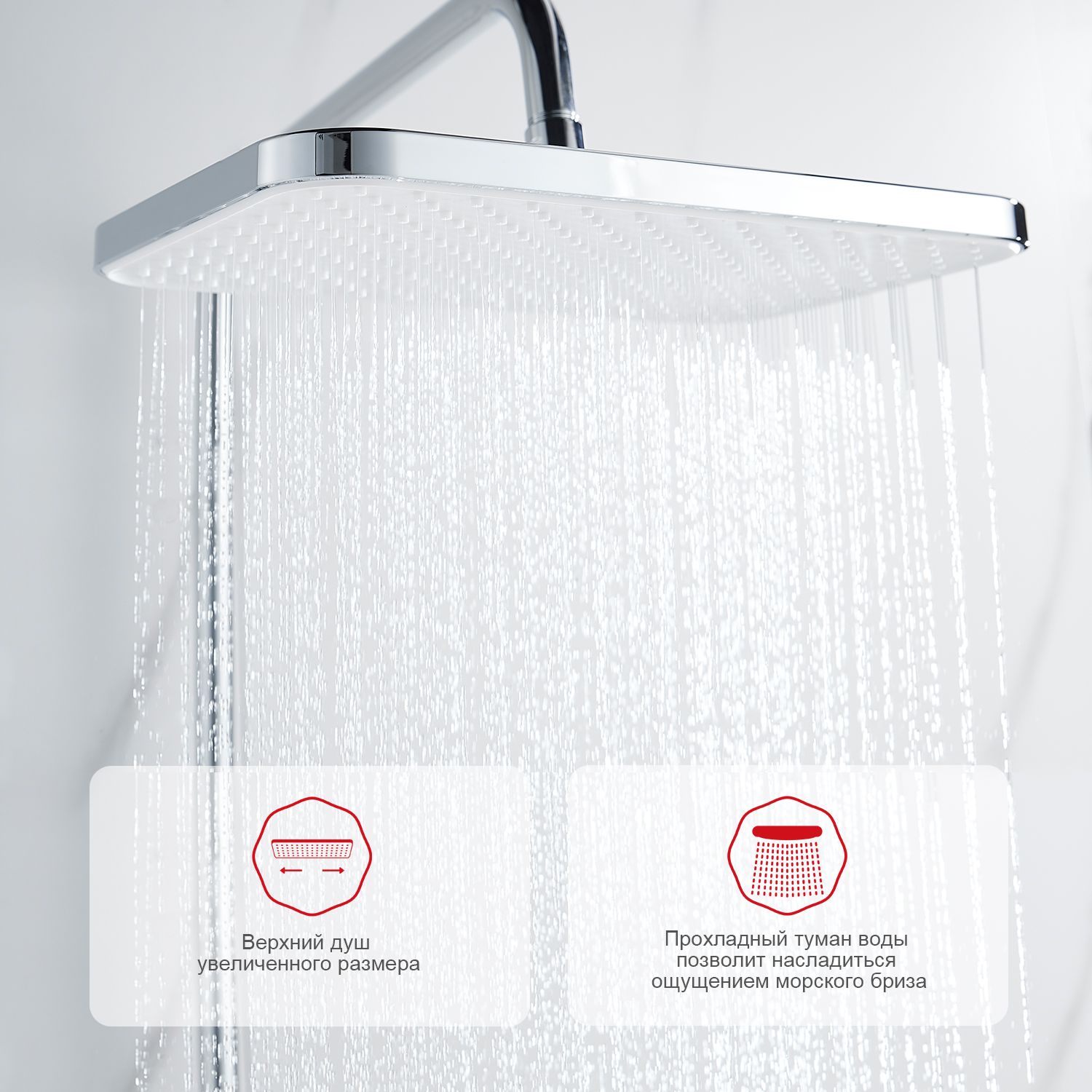 Верхний душ, душевая штанга с держателем лейки, ручной душ, смеситель, шланг |