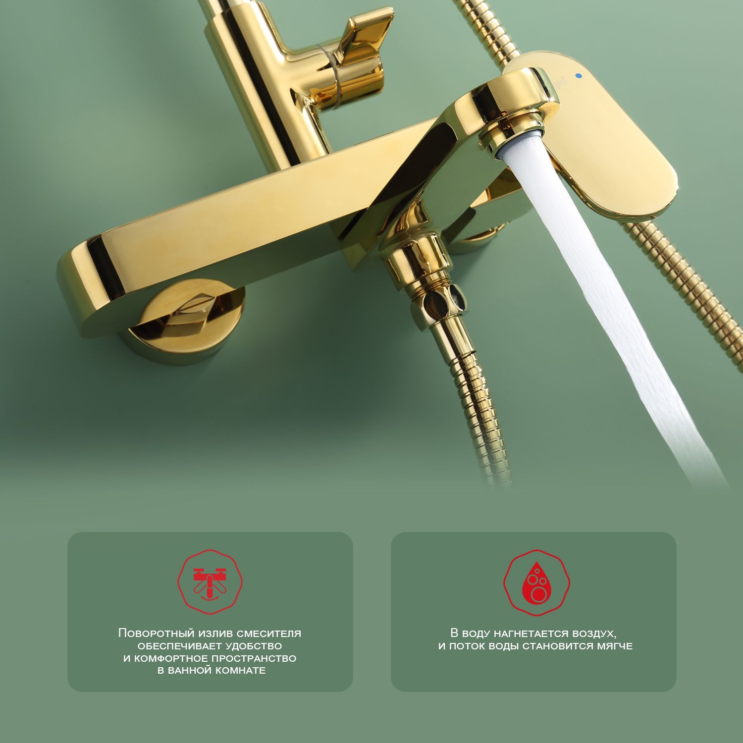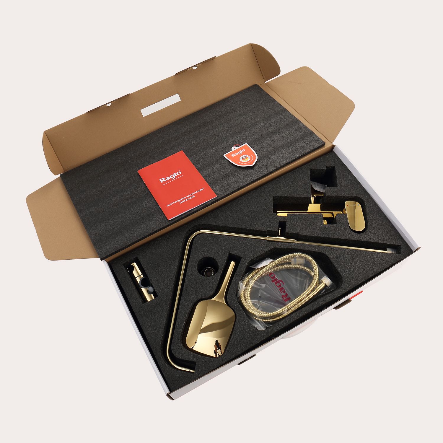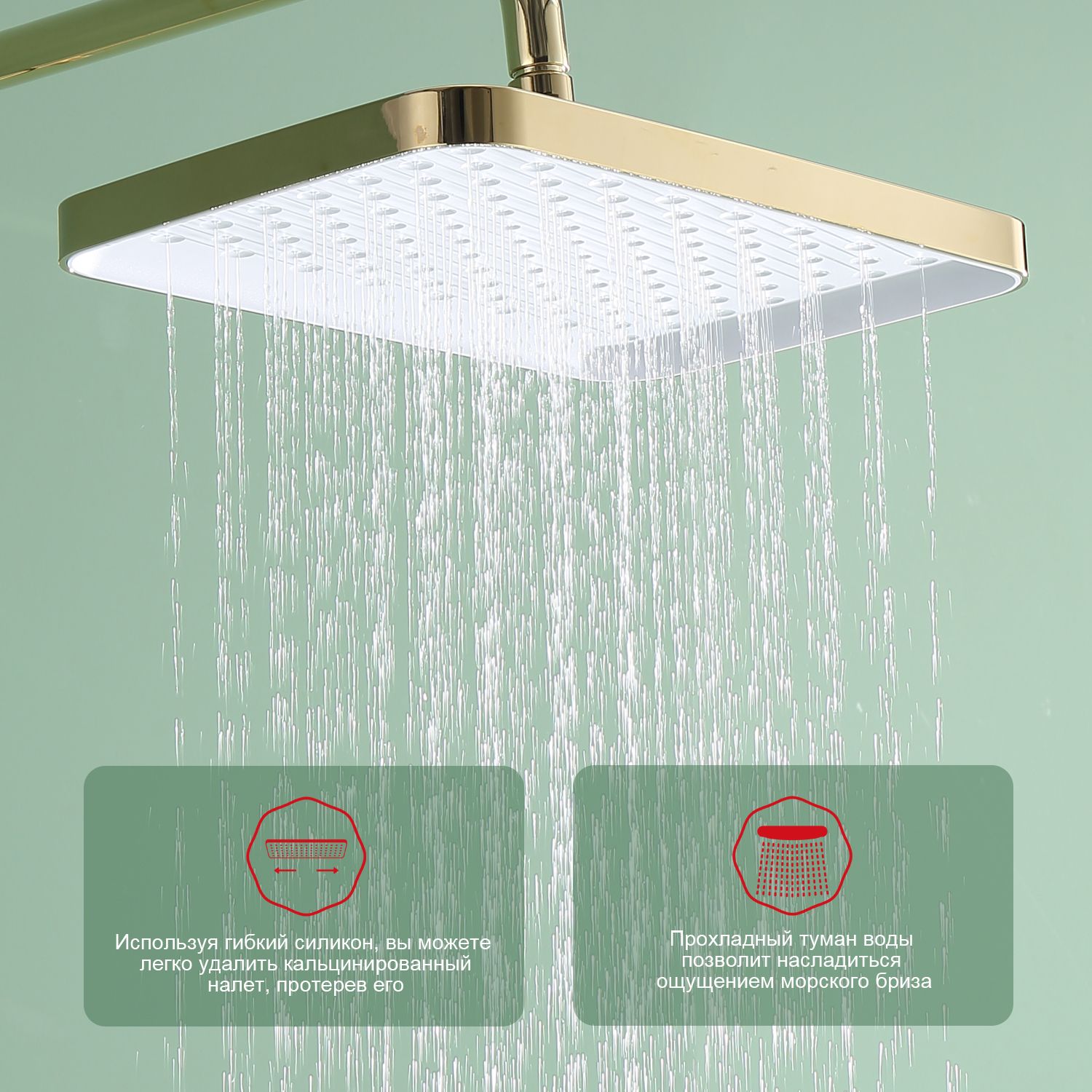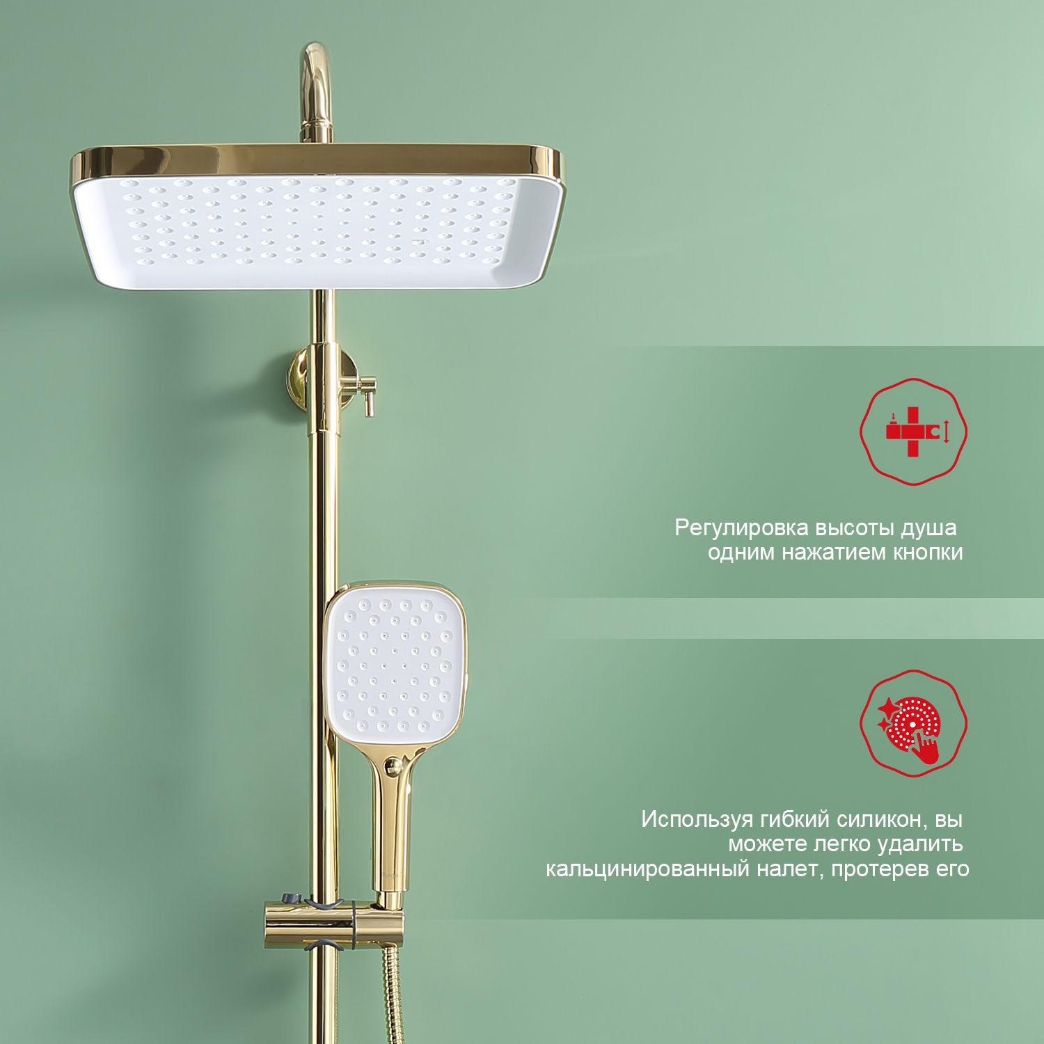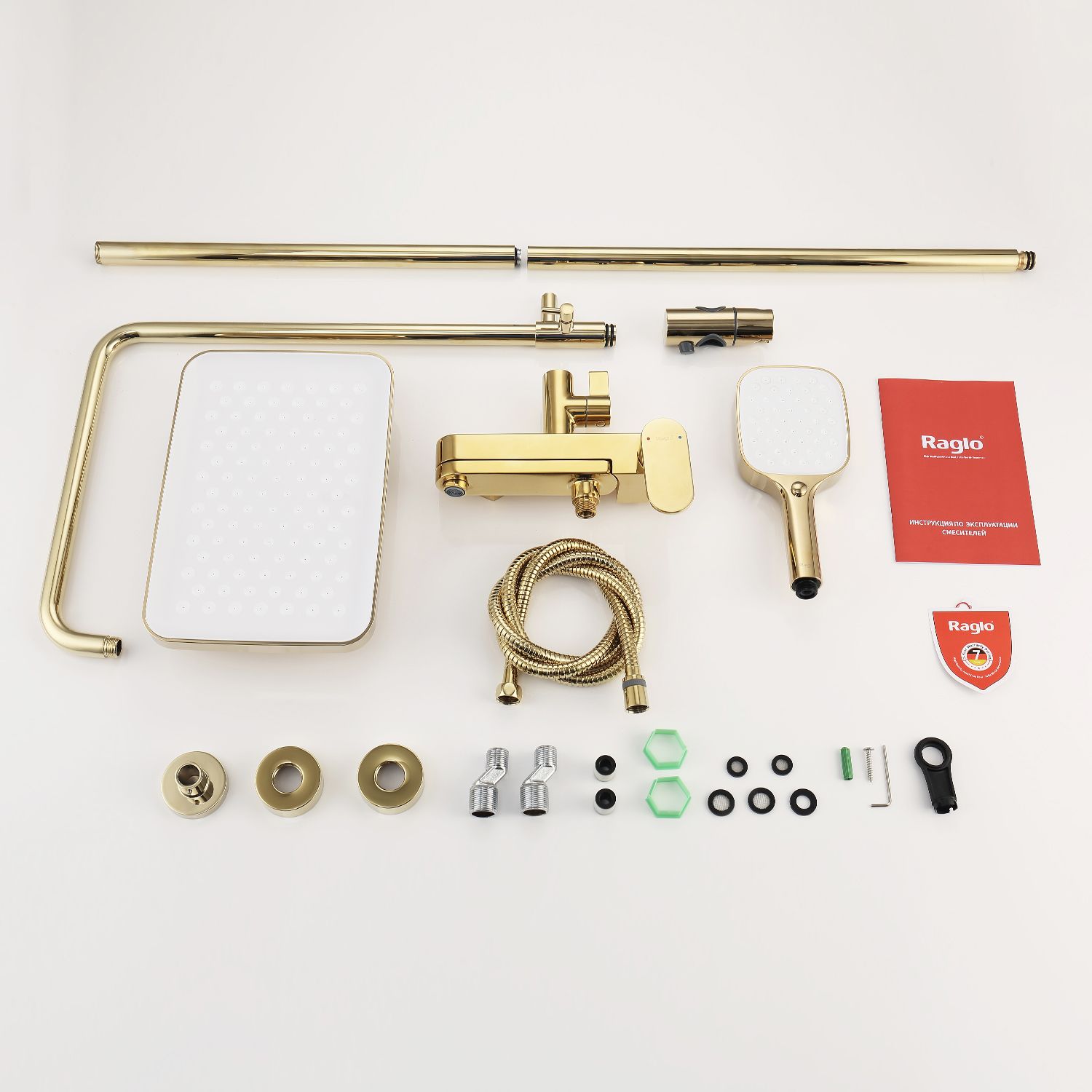 Верхний душ, душевая штанга с держателем лейки, ручной душ, смеситель, шланг |