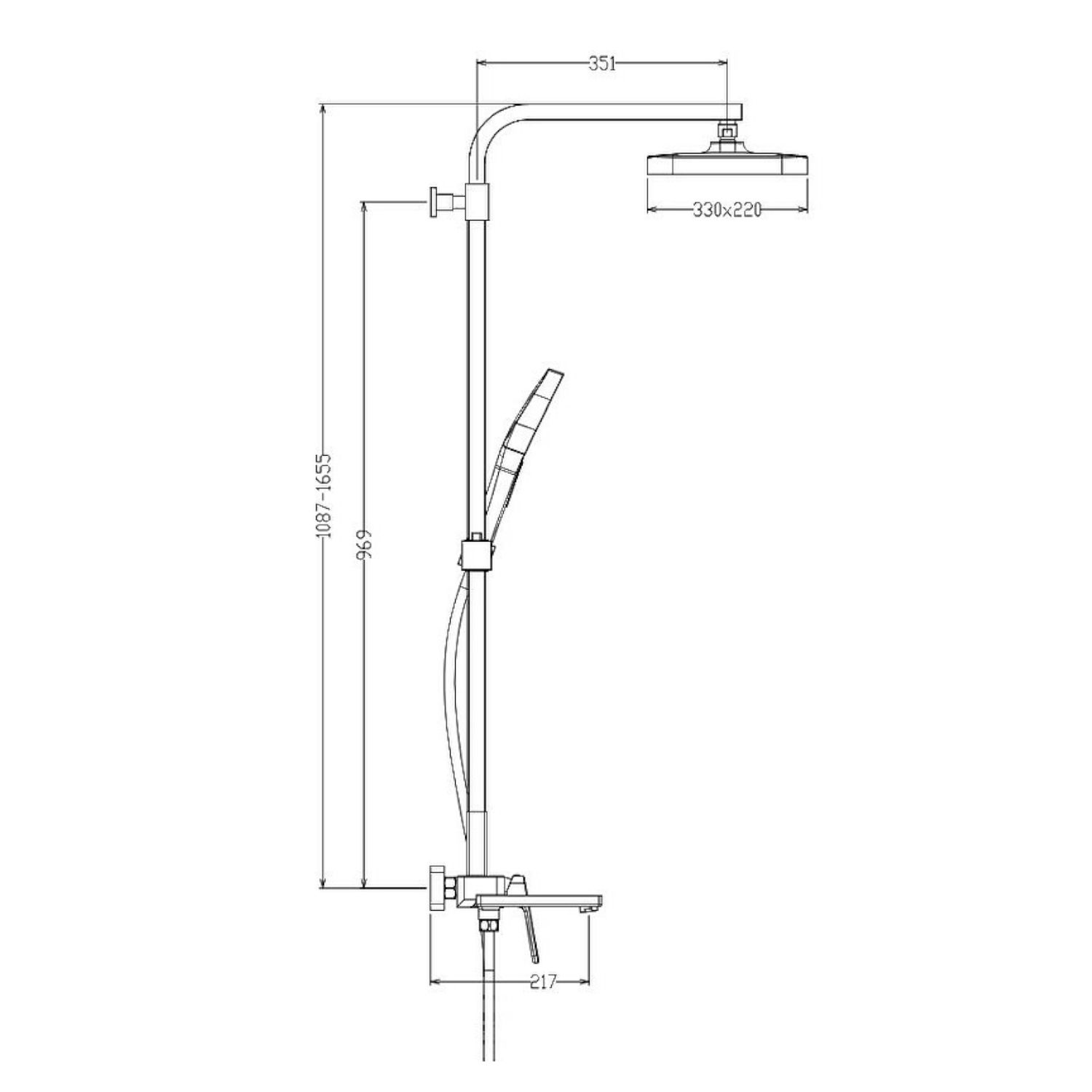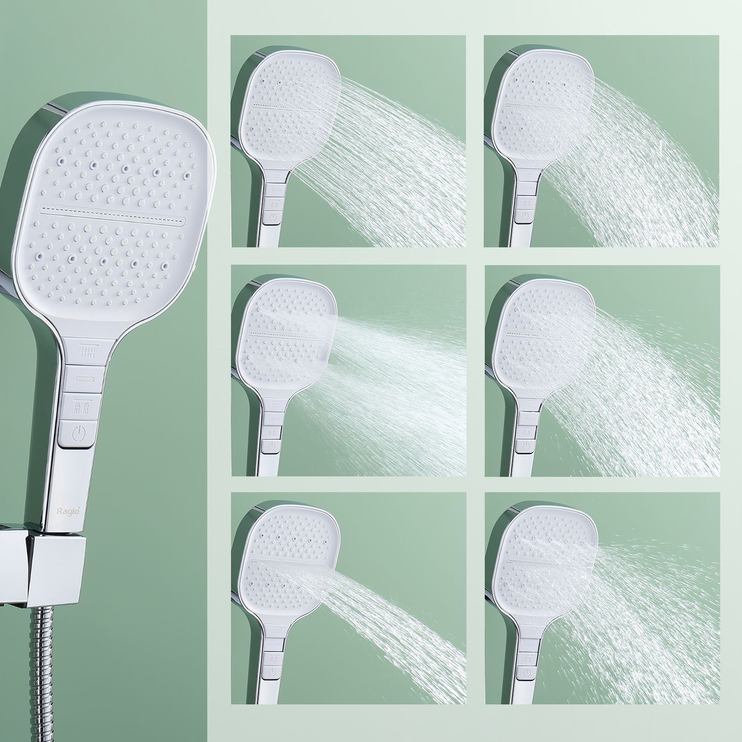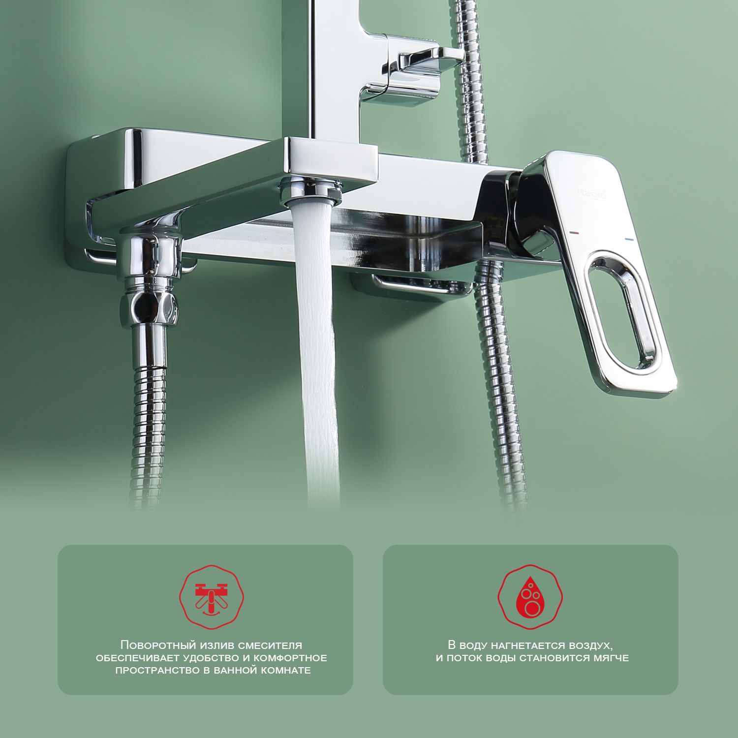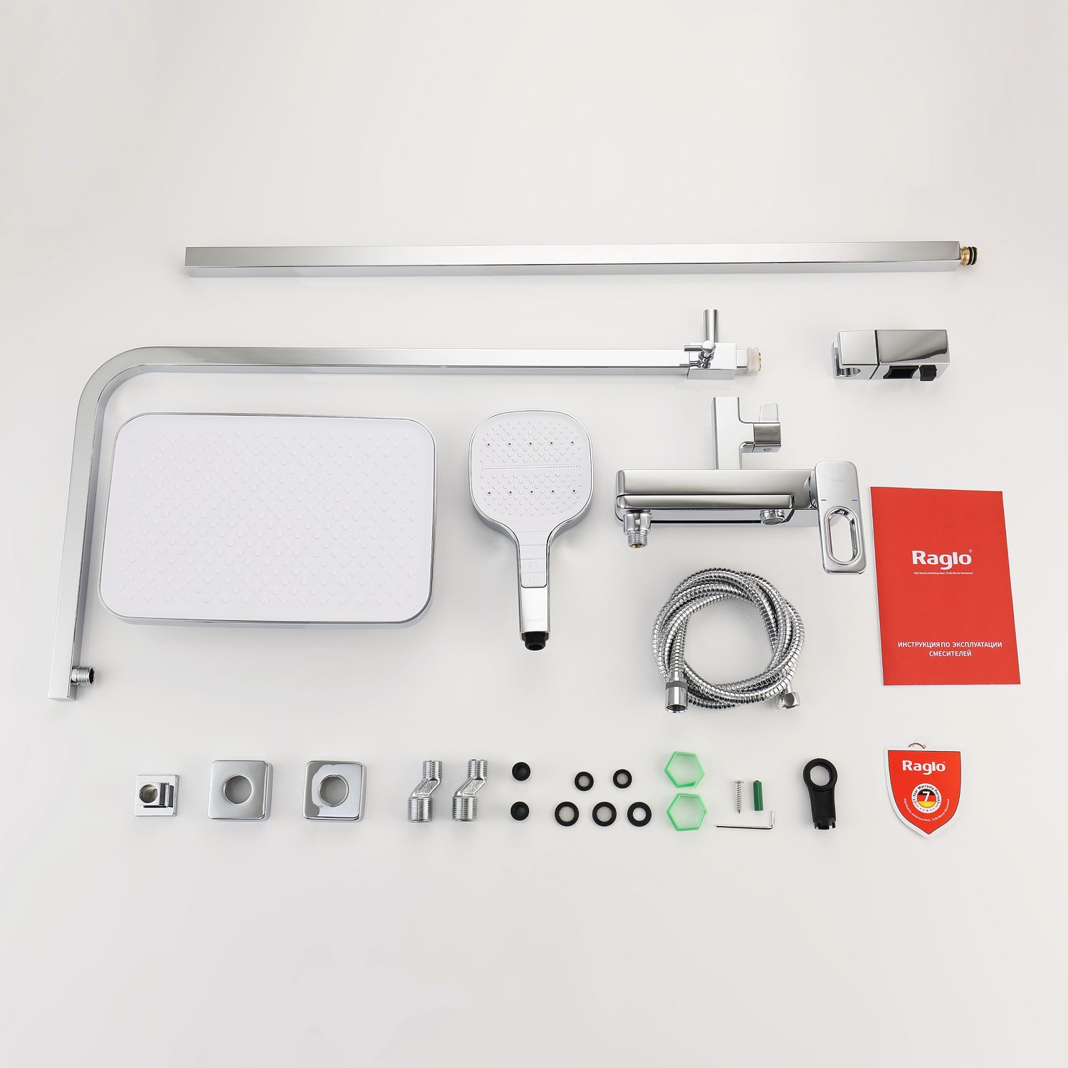 Верхний душ, душевая штанга с держателем лейки, ручной душ, смеситель, шланг |