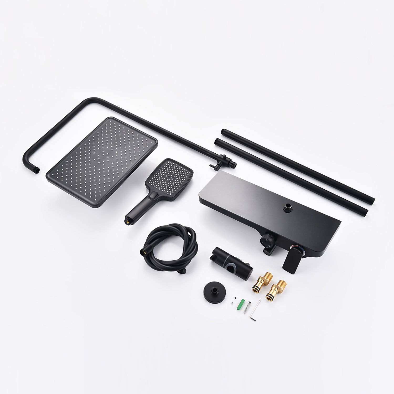 Верхний душ, душевая штанга с держателем лейки, ручной душ, смеситель, шланг |