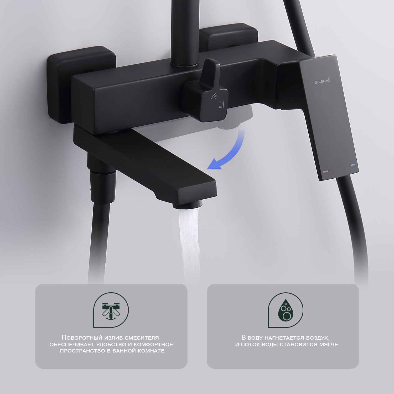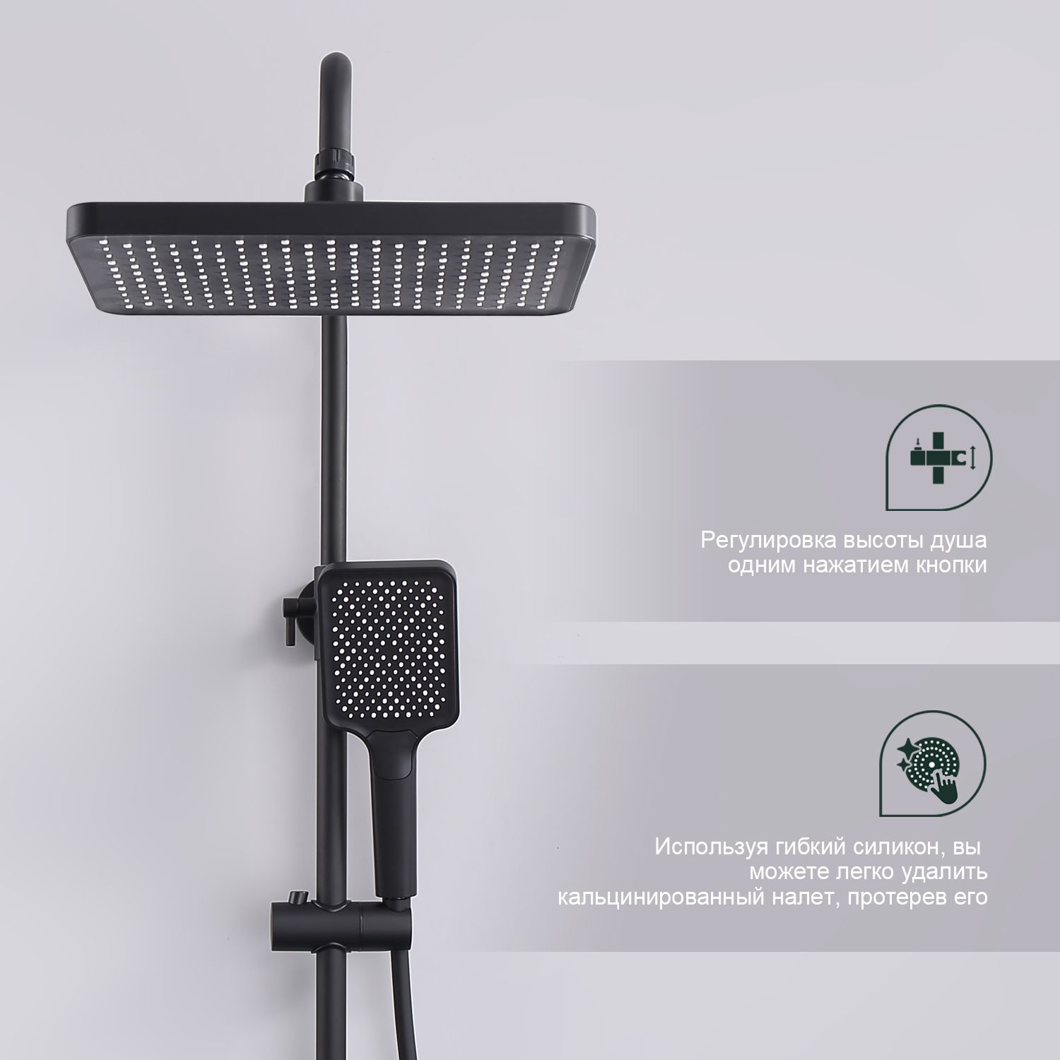Верхний душ, душевая штанга с держателем лейки, ручной душ, смеситель, шланг |