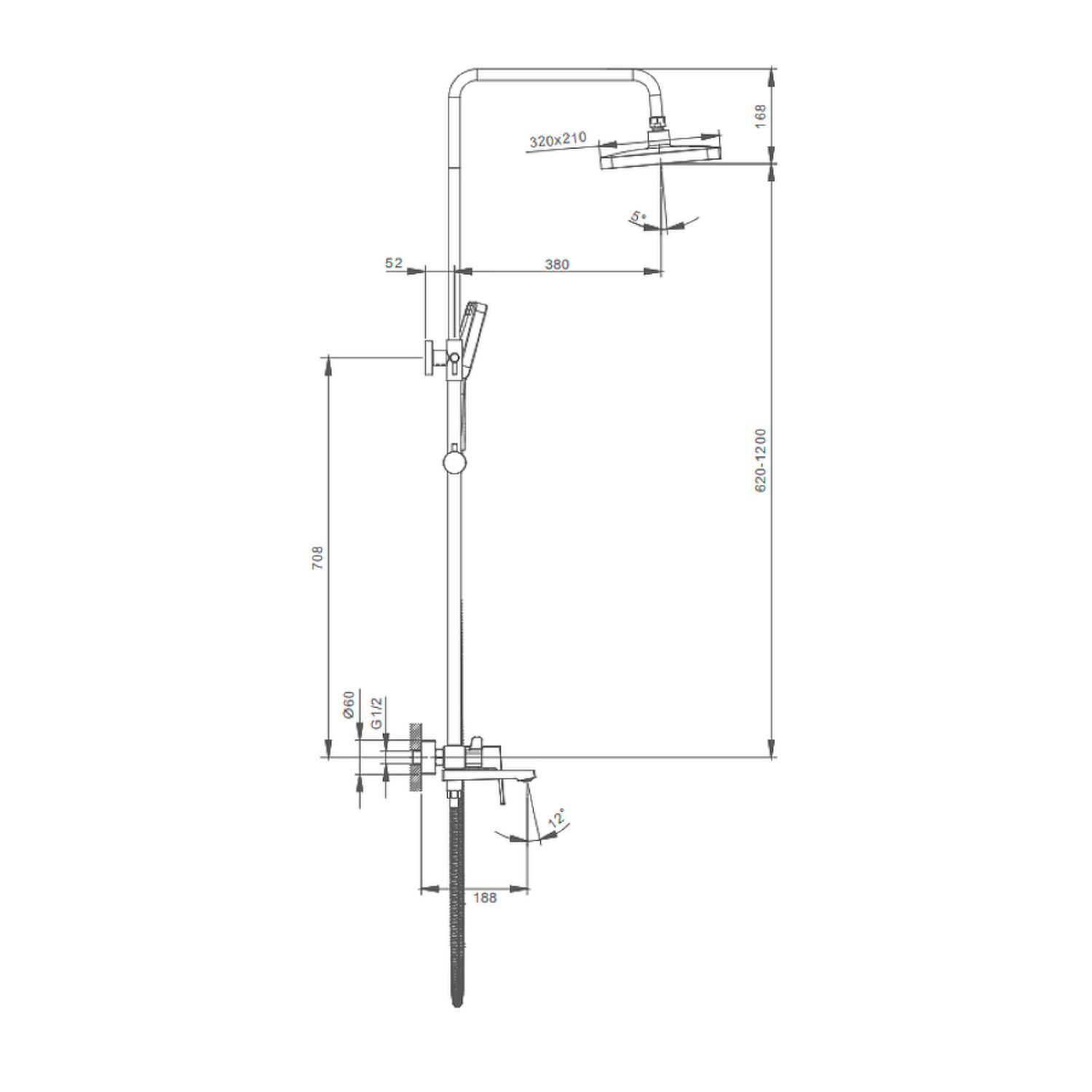 Верхний душ, душевая штанга с держателем лейки, ручной душ, смеситель, шланг |
