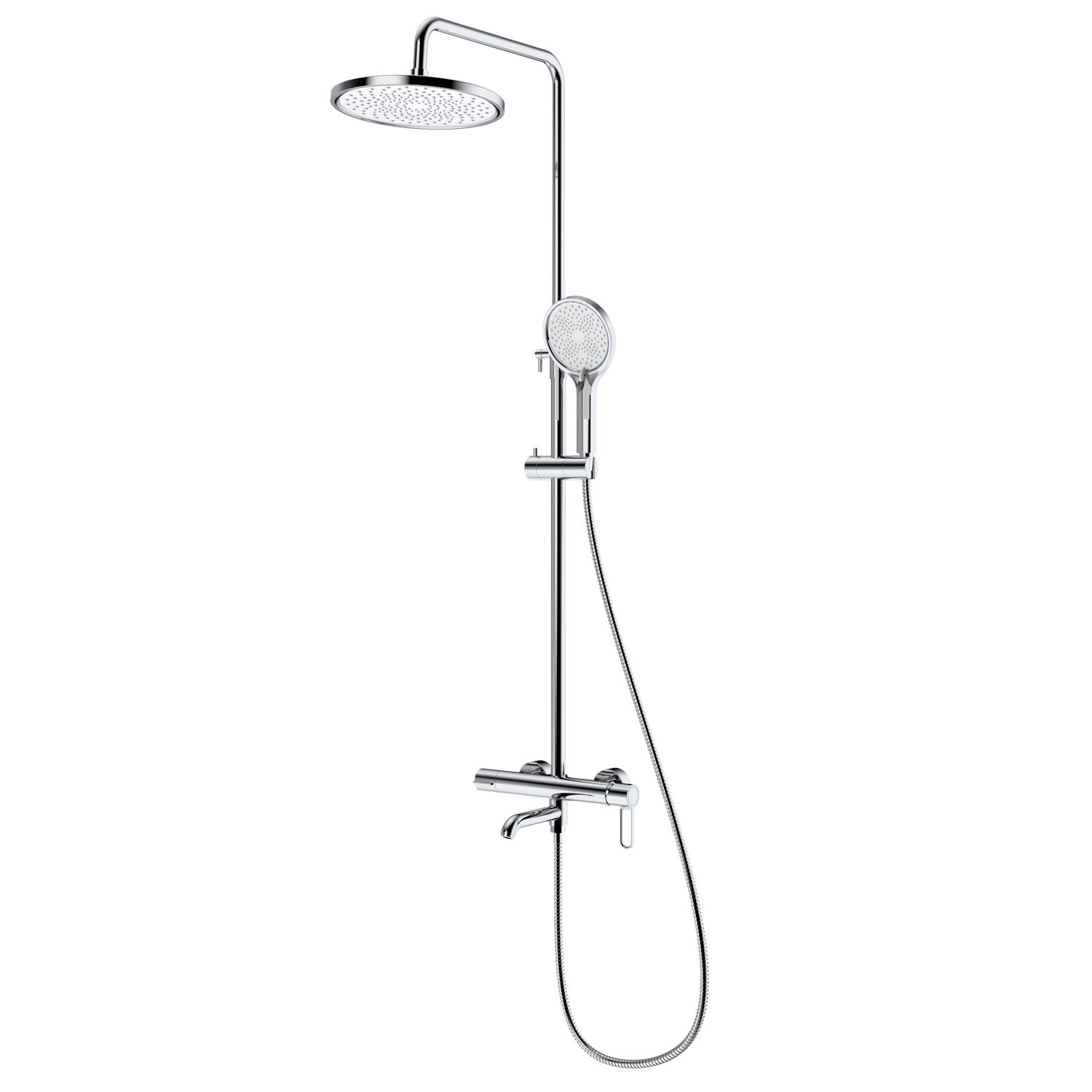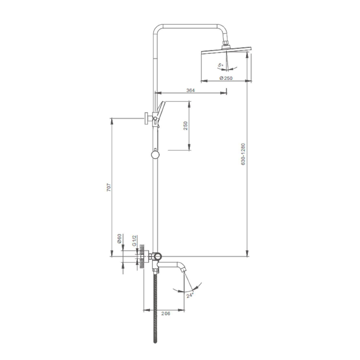 Форма верхнего душа: круглая. Диаметр верхнего душа: 250 мм. Количество режимов струи ручного душа: 3. Регулируемая душевая штанга: 630-1280 мм. Монтаж: на стену.