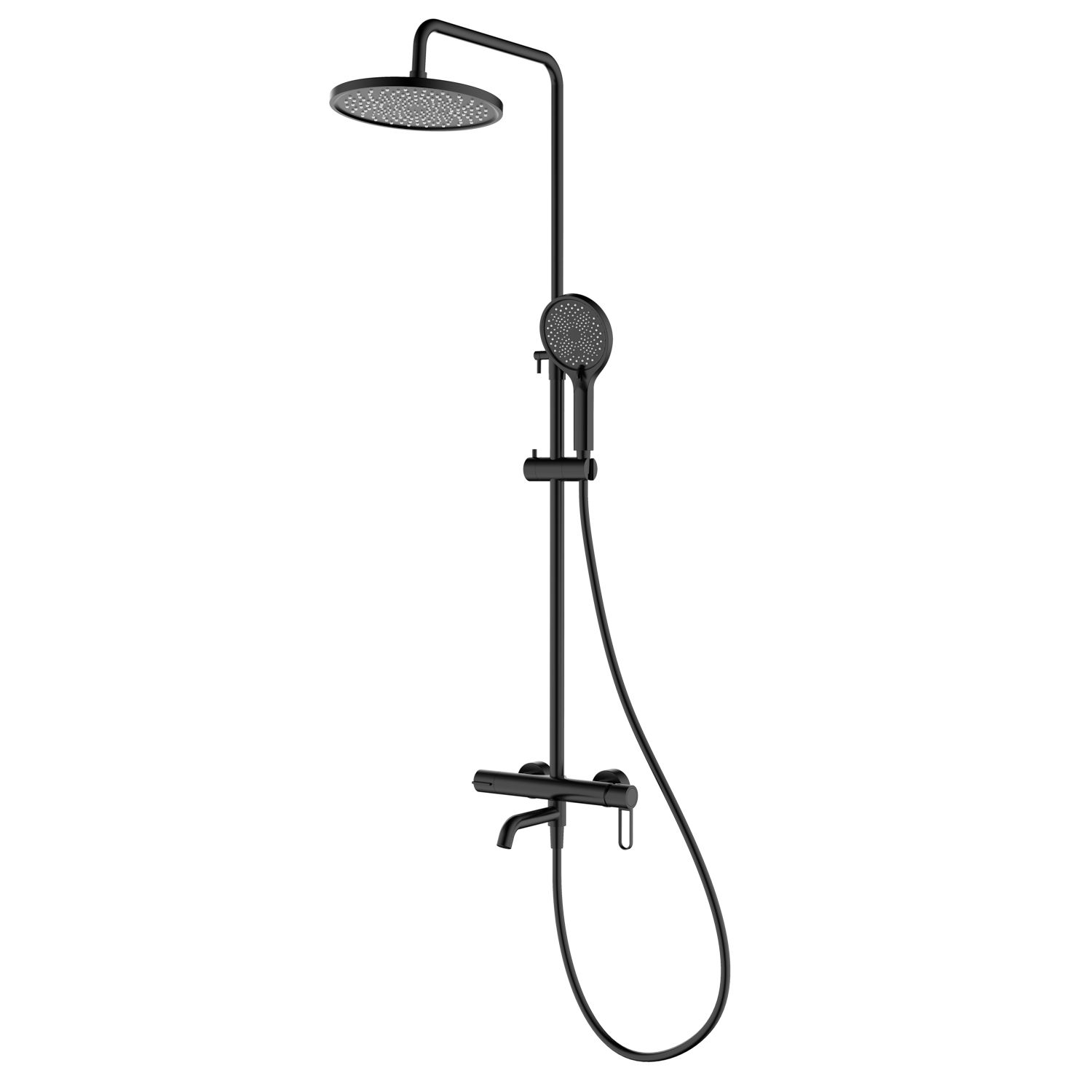 Форма верхнего душа: круглая. Диаметр верхнего душа: 250 мм. Количество режимов струи ручного душа: 3. Регулируемая душевая штанга: 630-1280 мм. Монтаж: на стену.