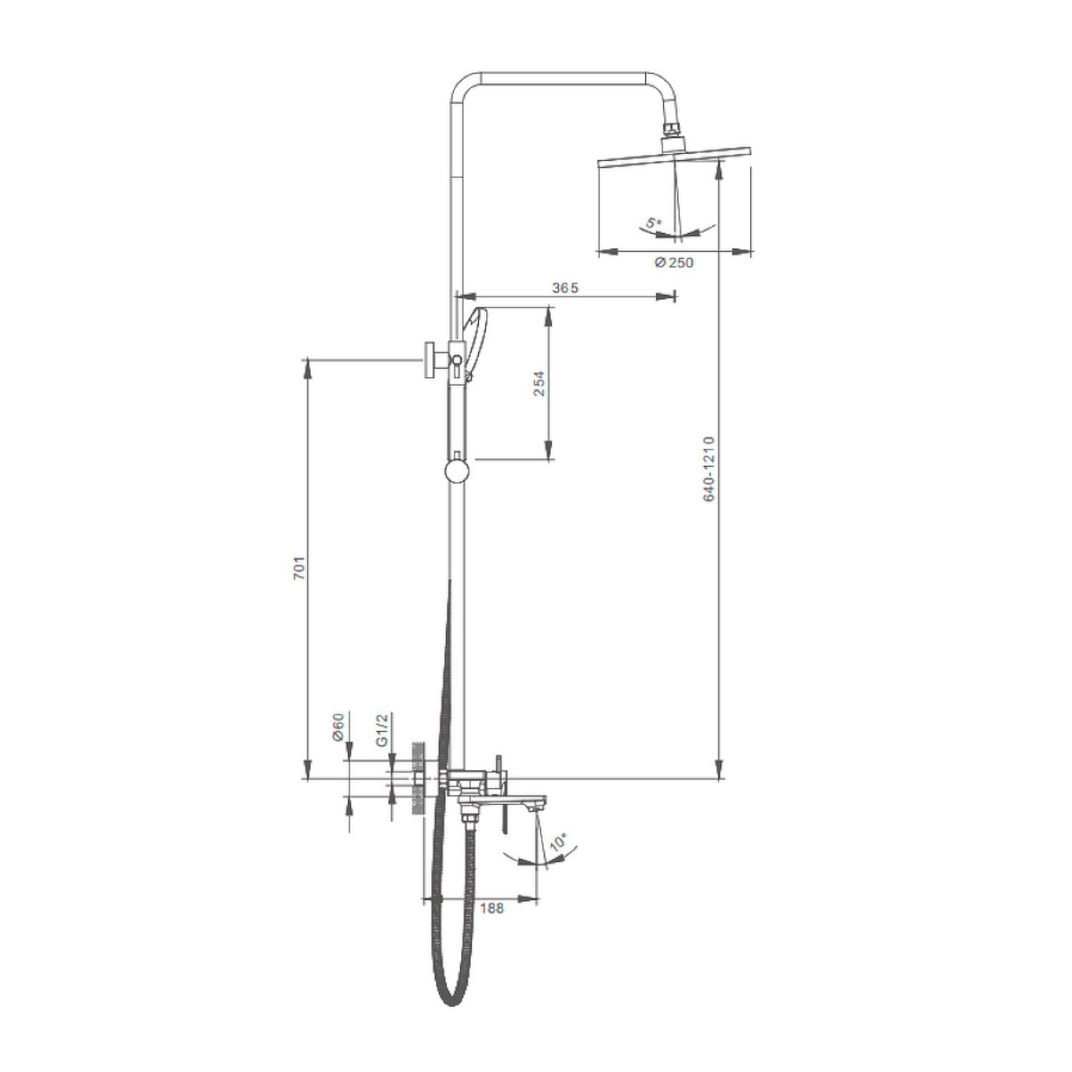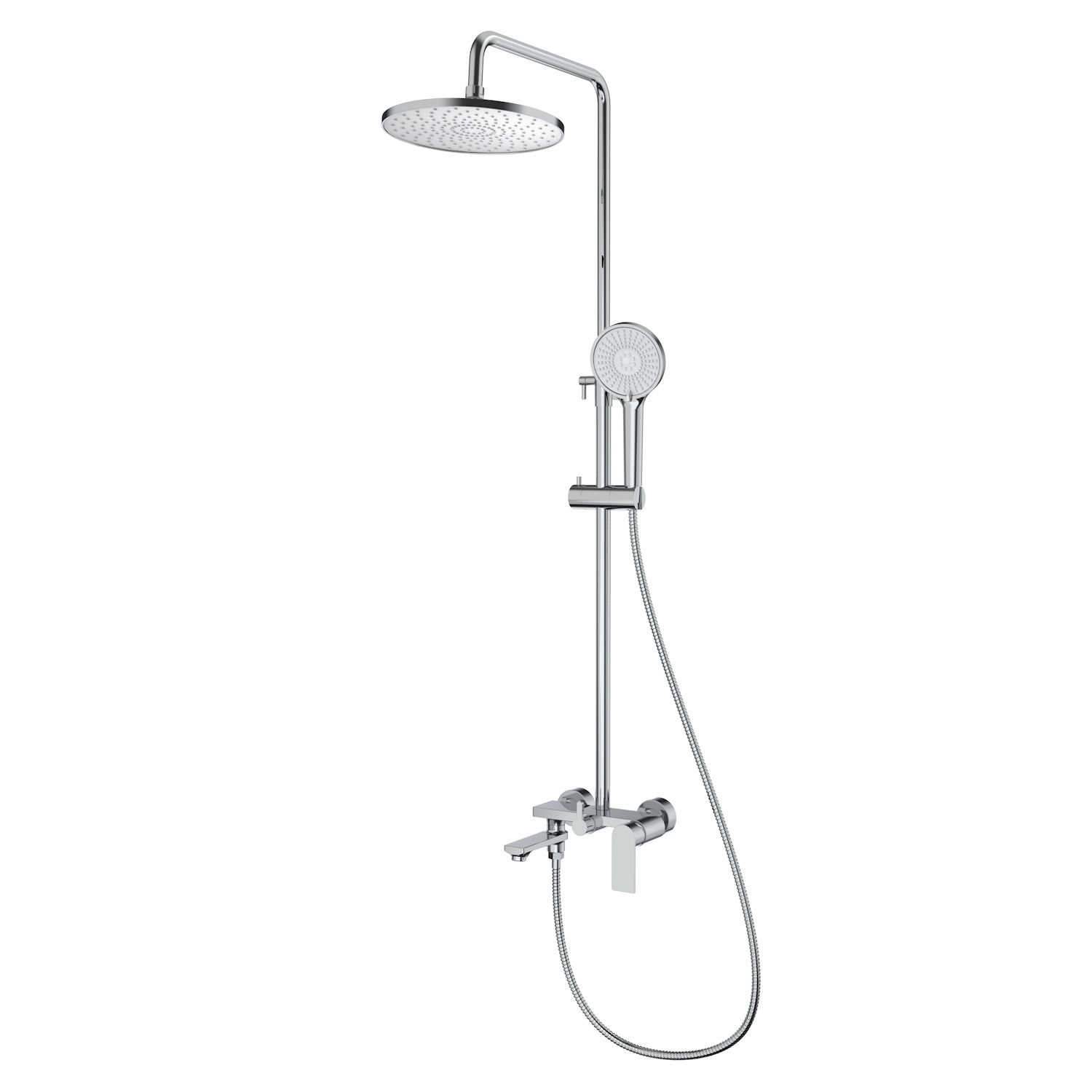 Форма верхнего душа: круглая. Диаметр верхнего душа: 250 мм. Количество режимов струи ручного душа: 3. Регулируемая душевая штанга: 640-1210 мм. Монтаж: на стену.