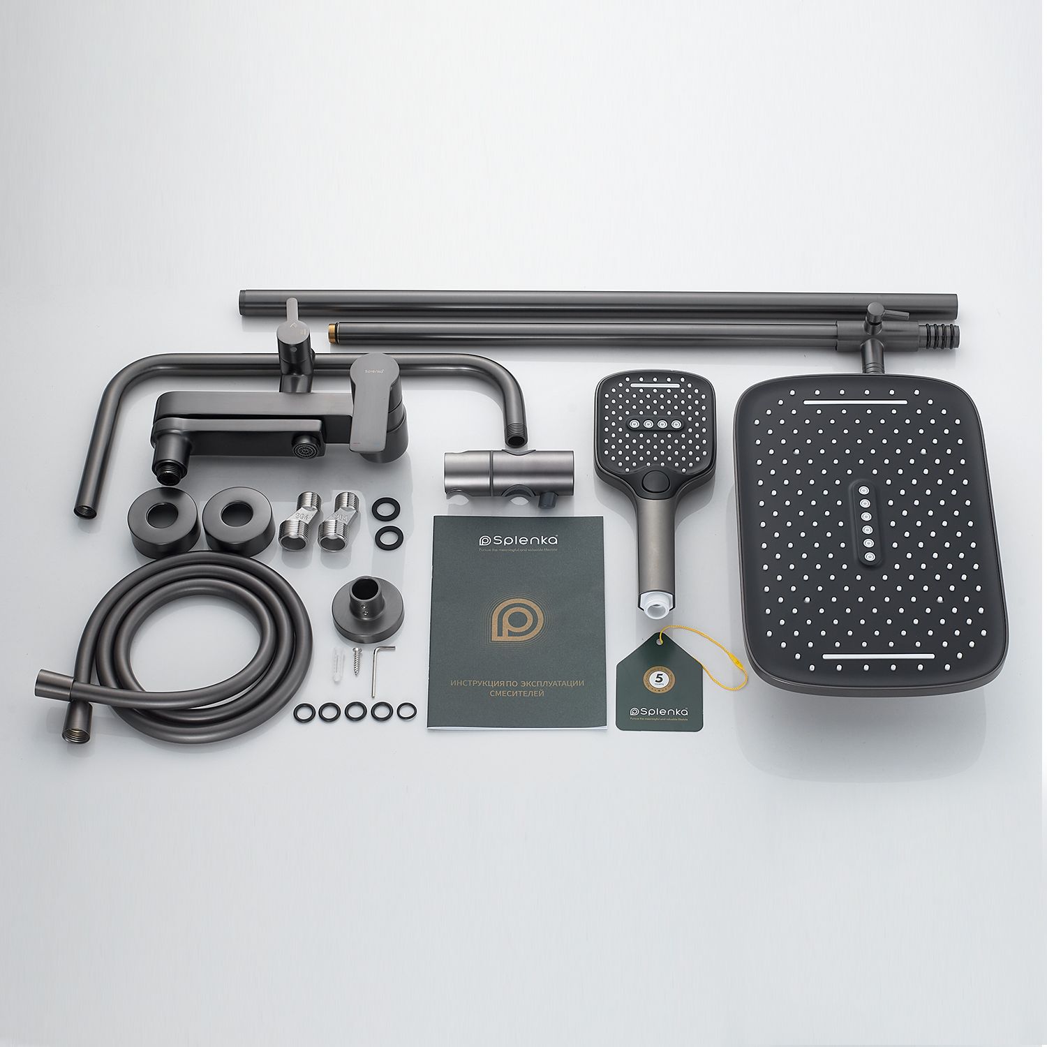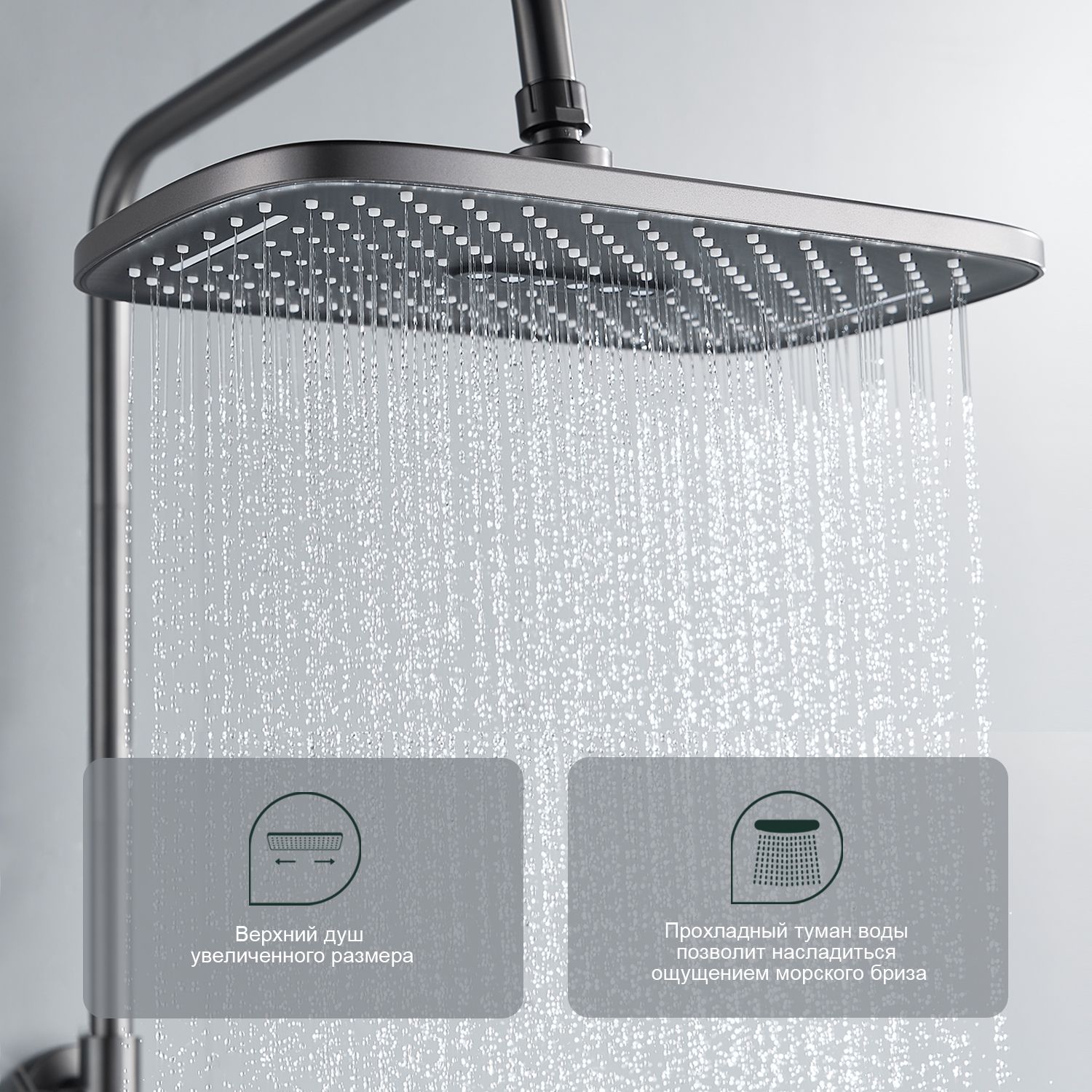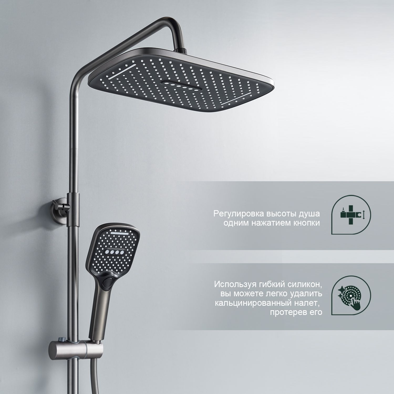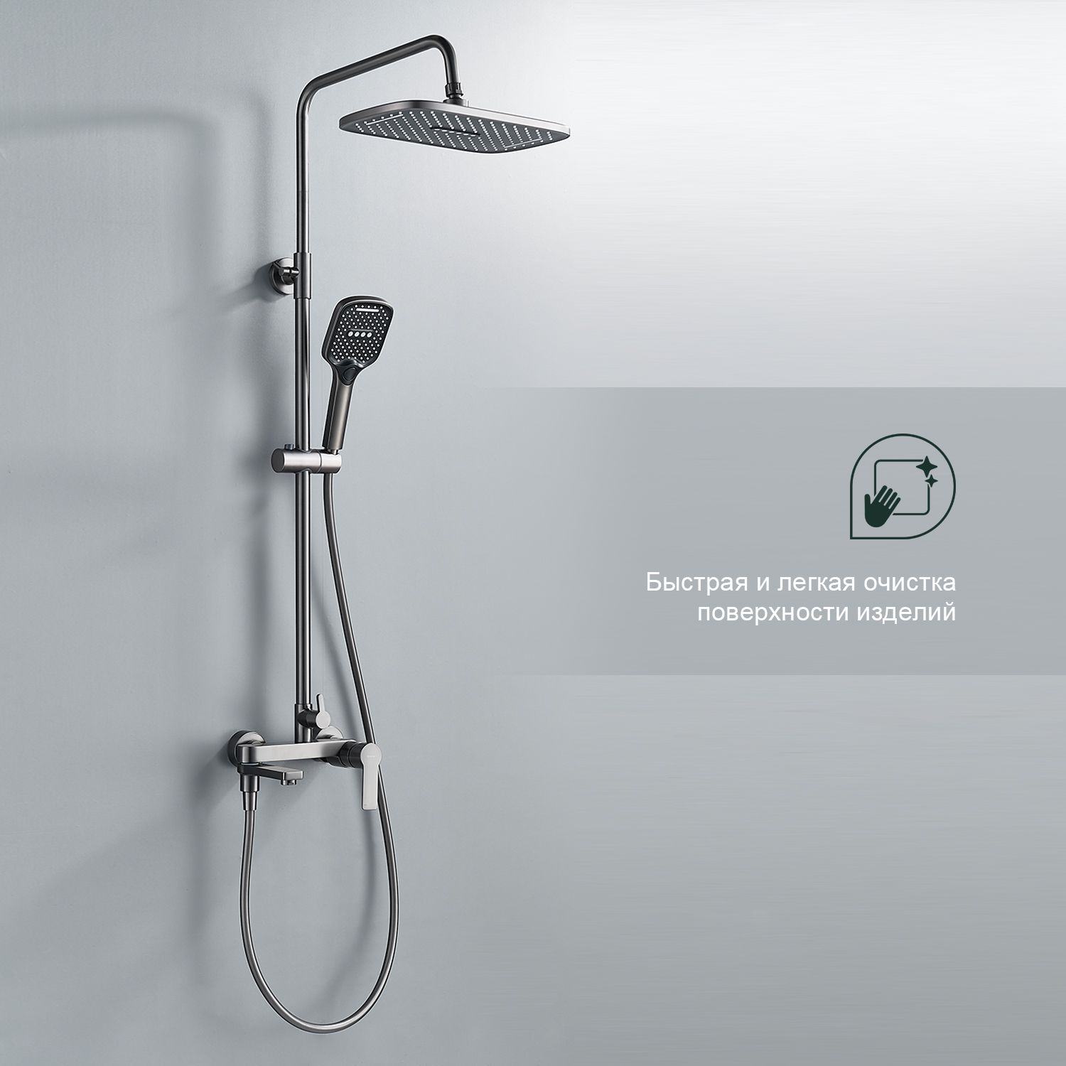 Верхний душ, душевая штанга с держателем лейки, ручной душ, смеситель, шланг |
