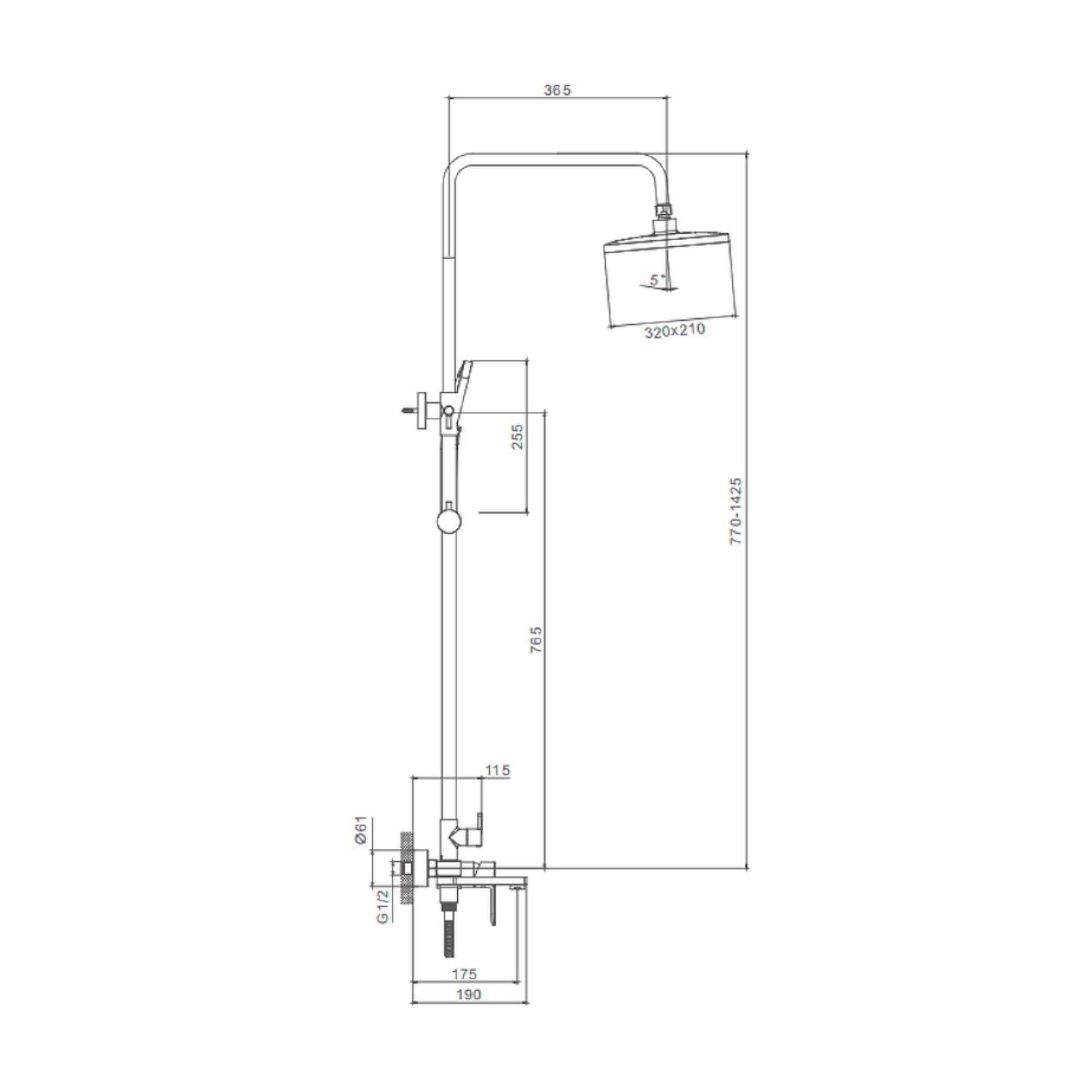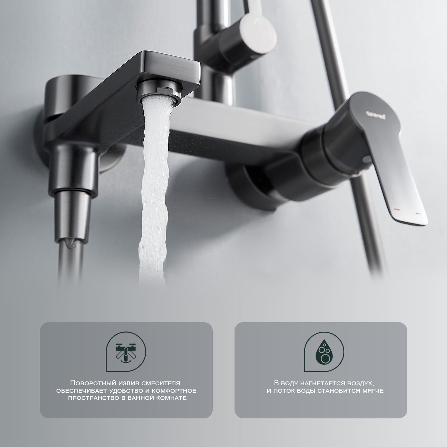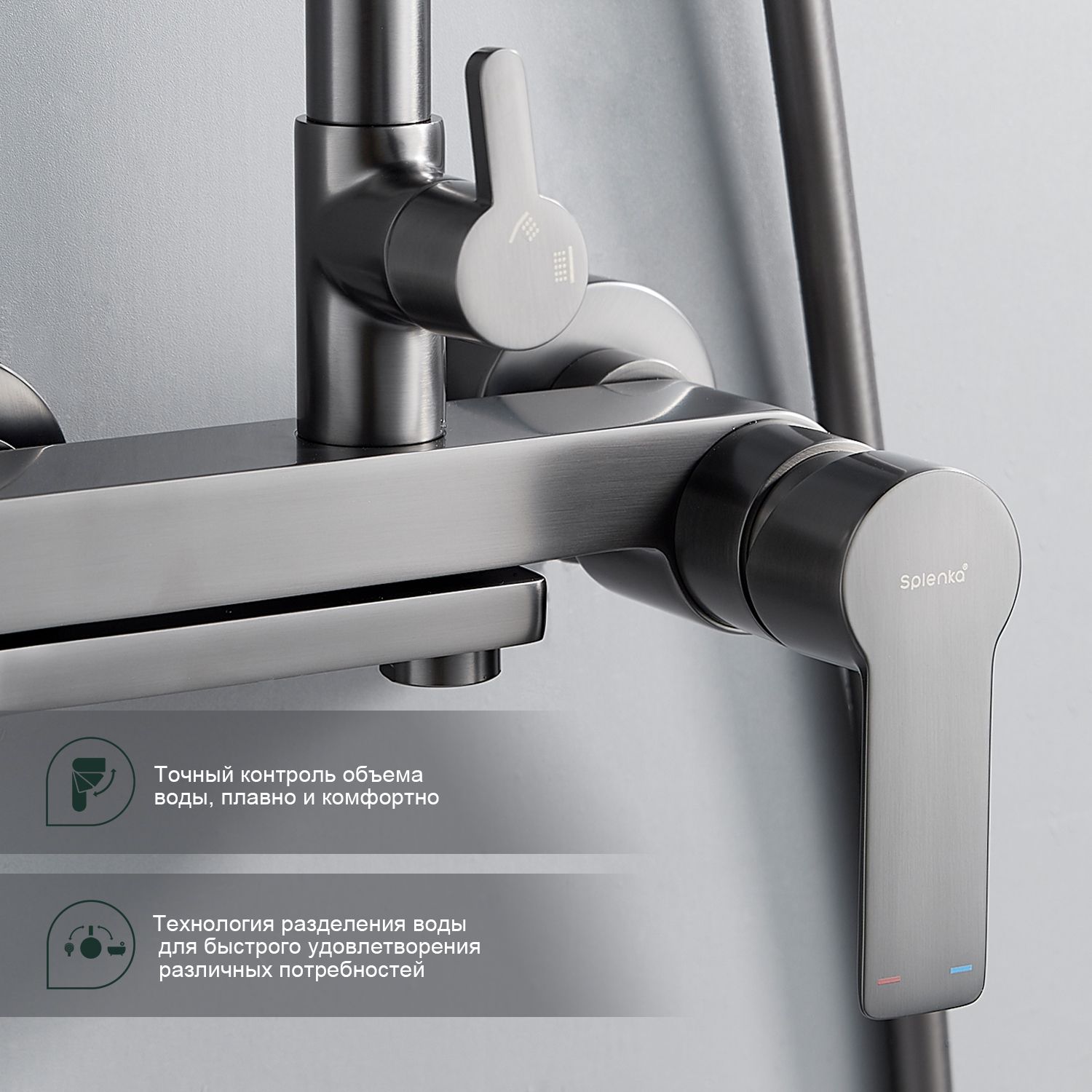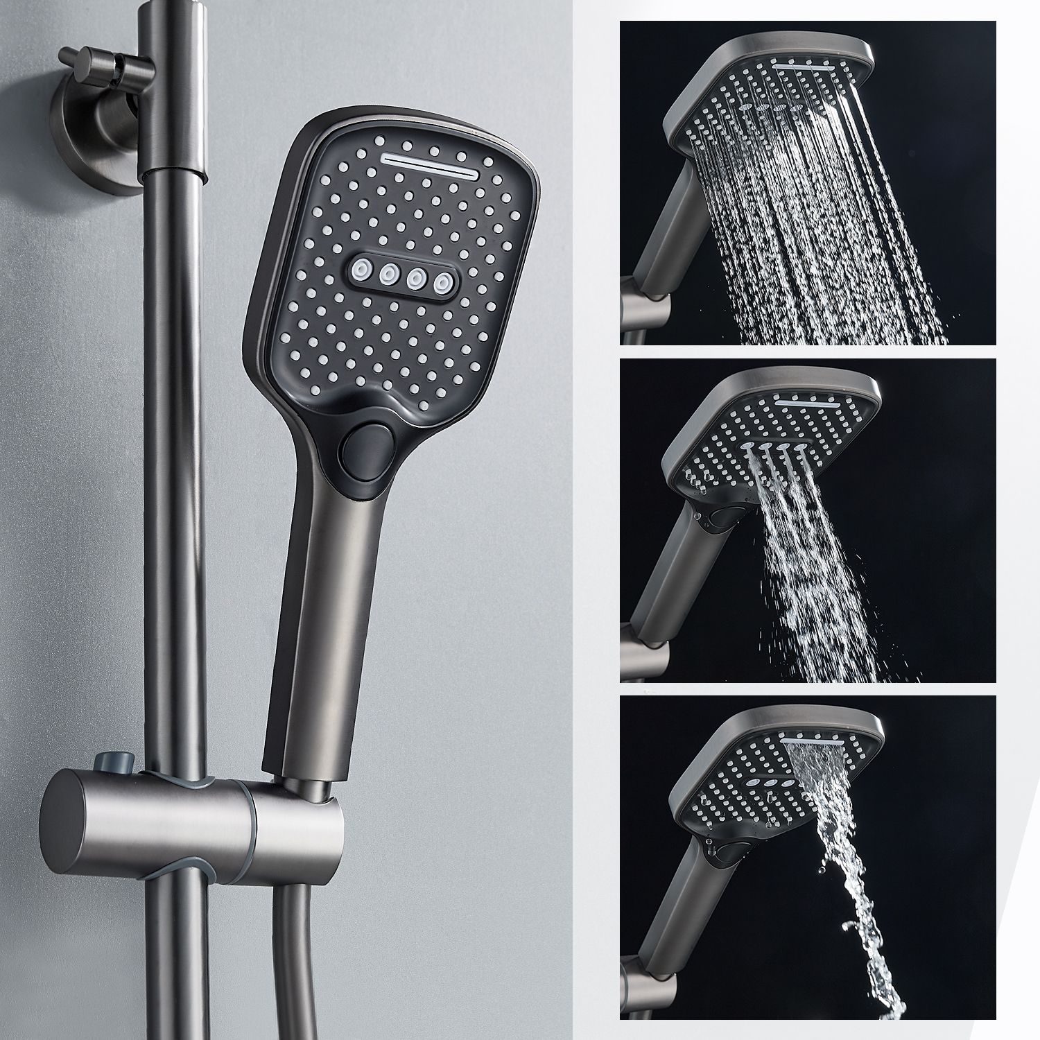 Верхний душ, душевая штанга с держателем лейки, ручной душ, смеситель, шланг |