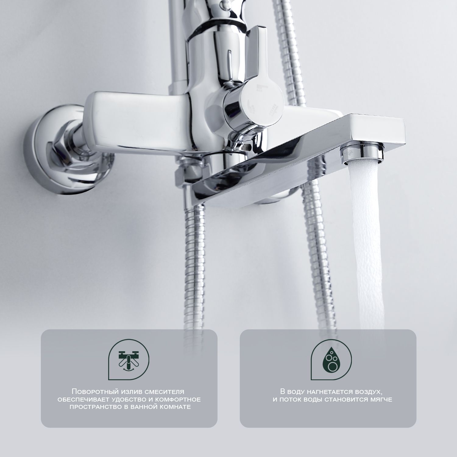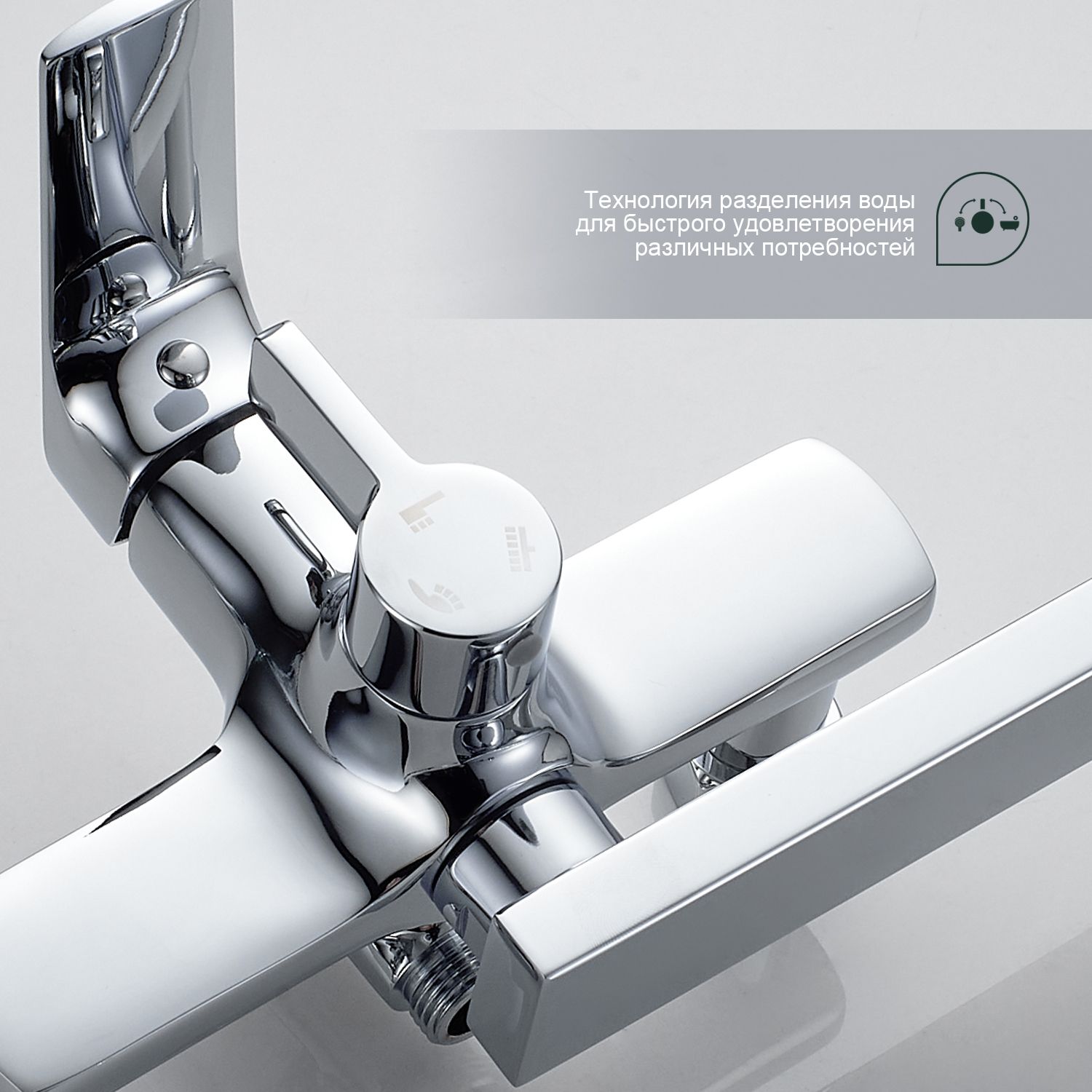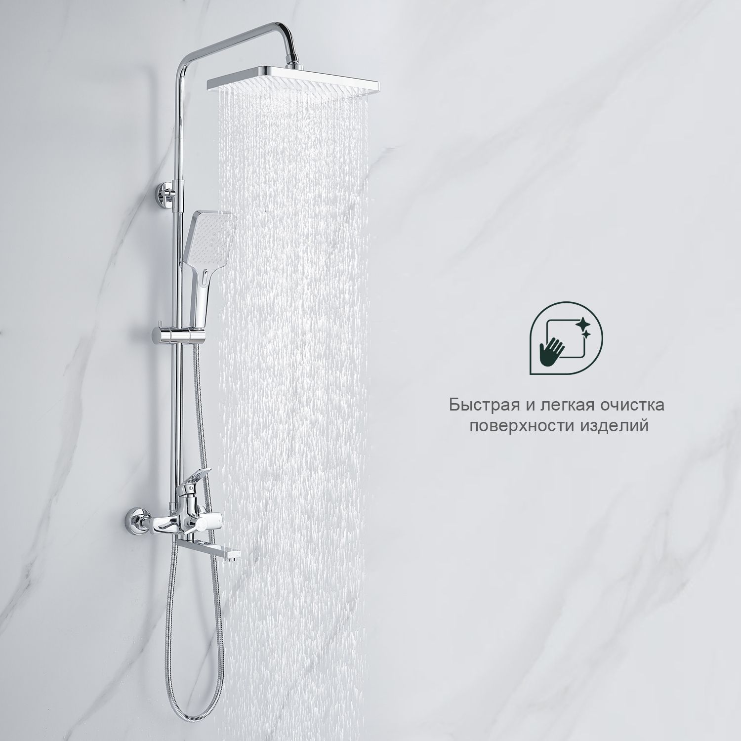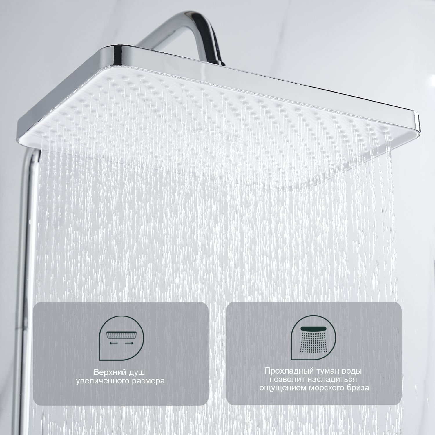 Верхний душ, душевая штанга с держателем лейки, ручной душ, смеситель, шланг |