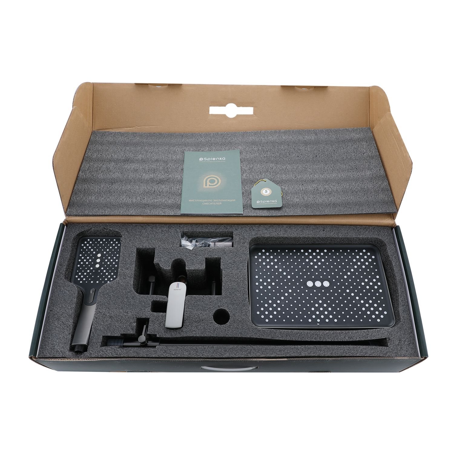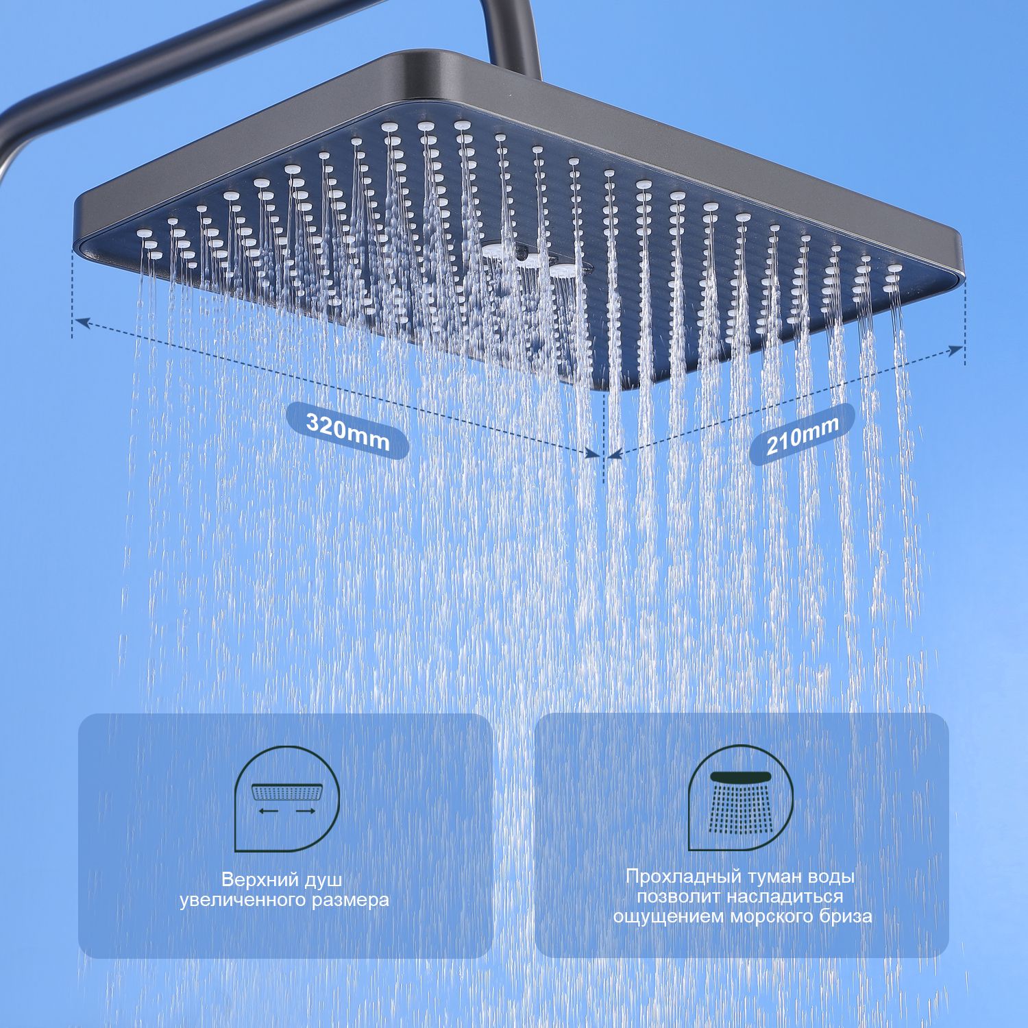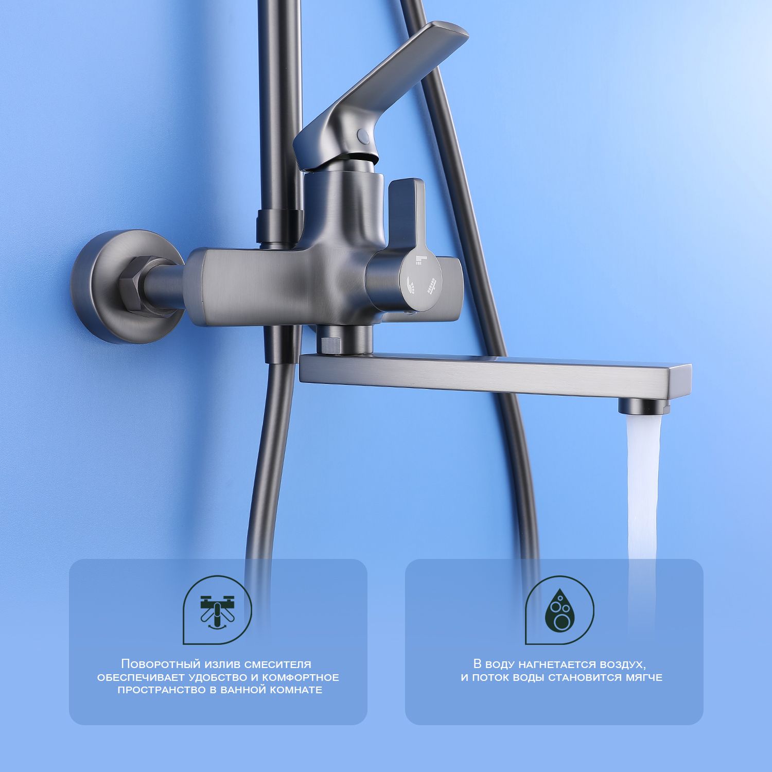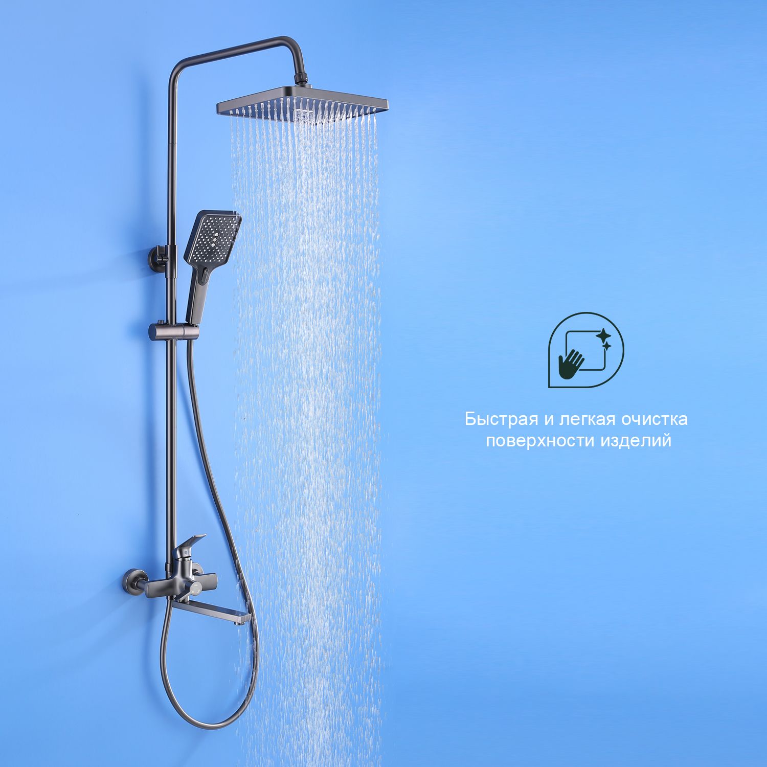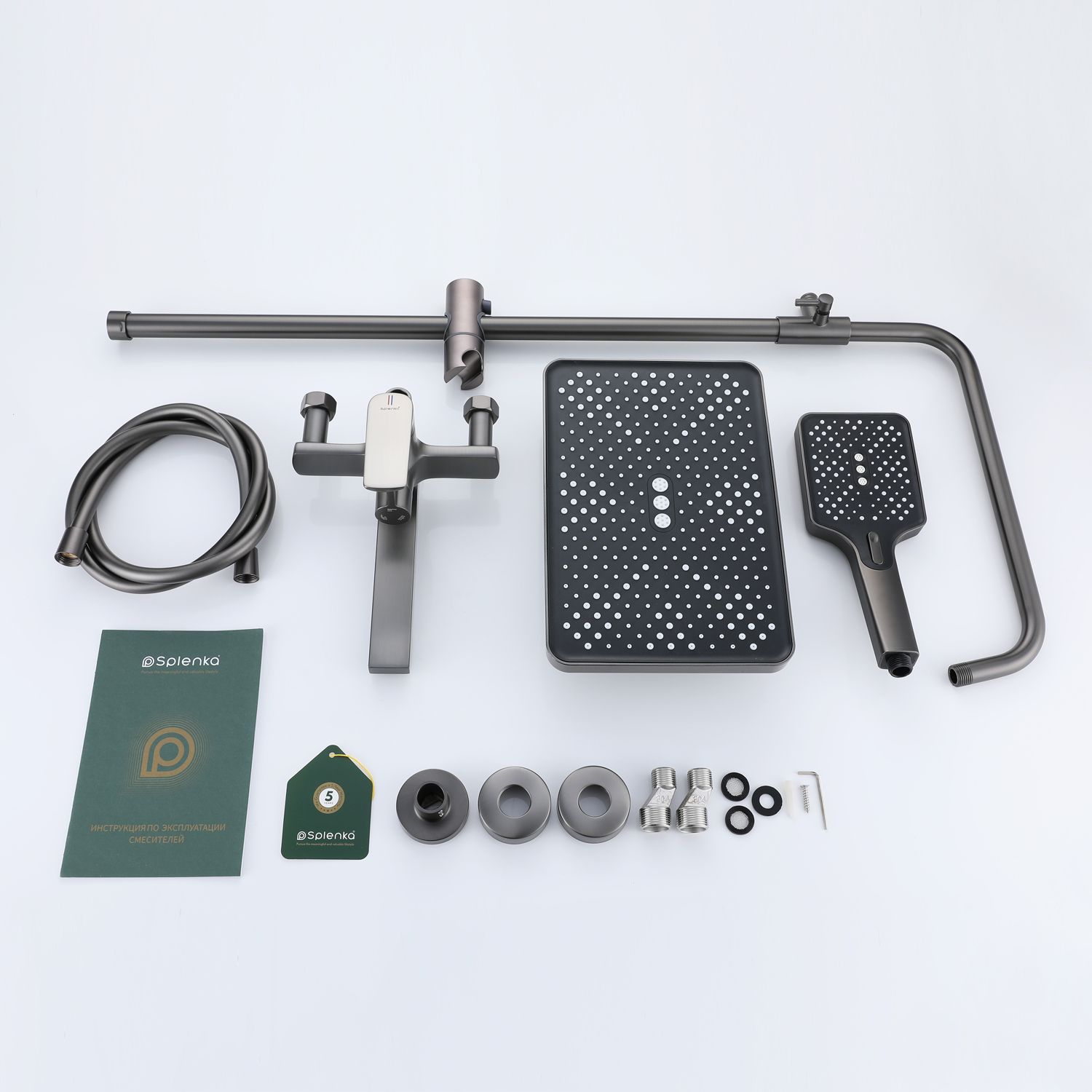Верхний душ, душевая штанга с держателем лейки, ручной душ, смеситель, шланг |