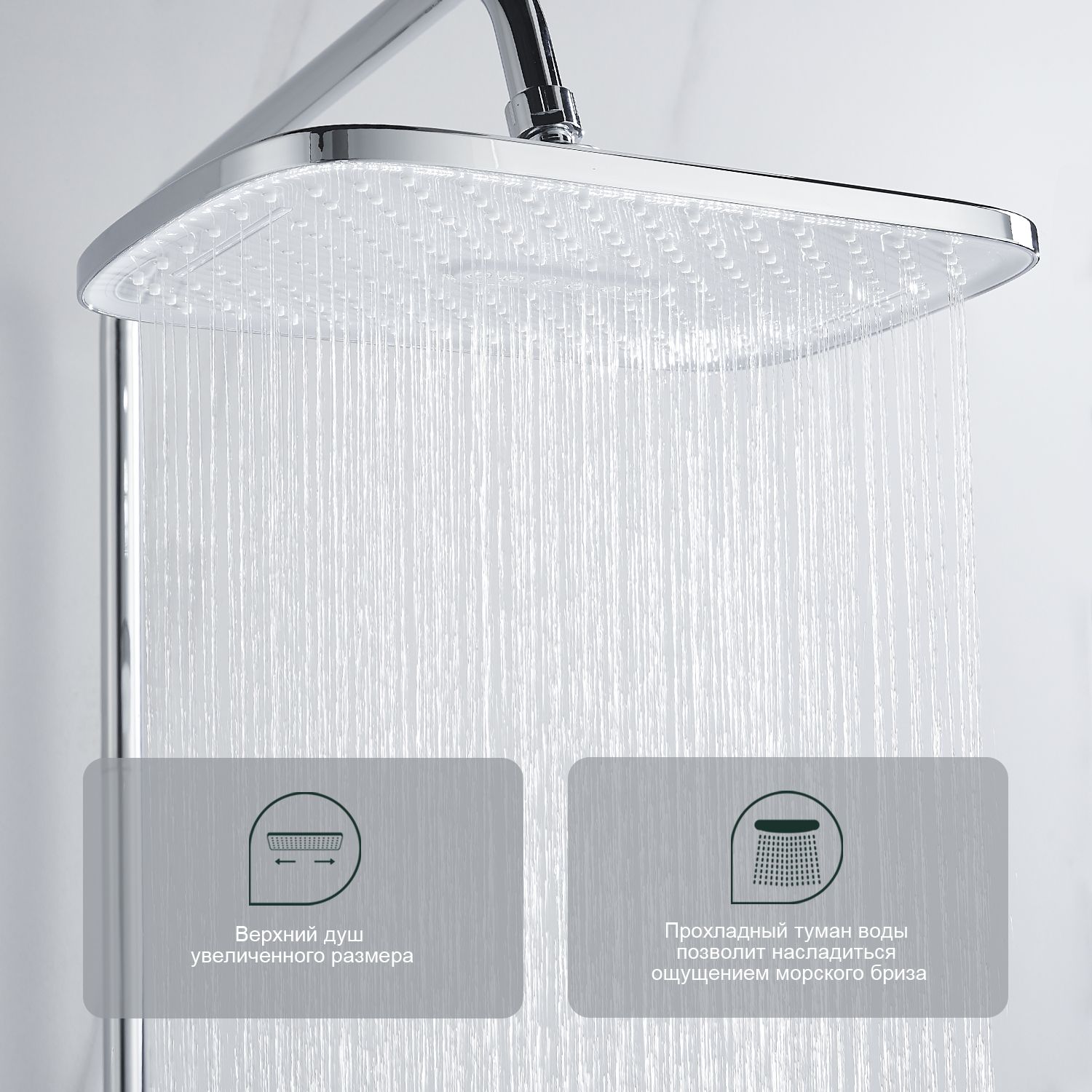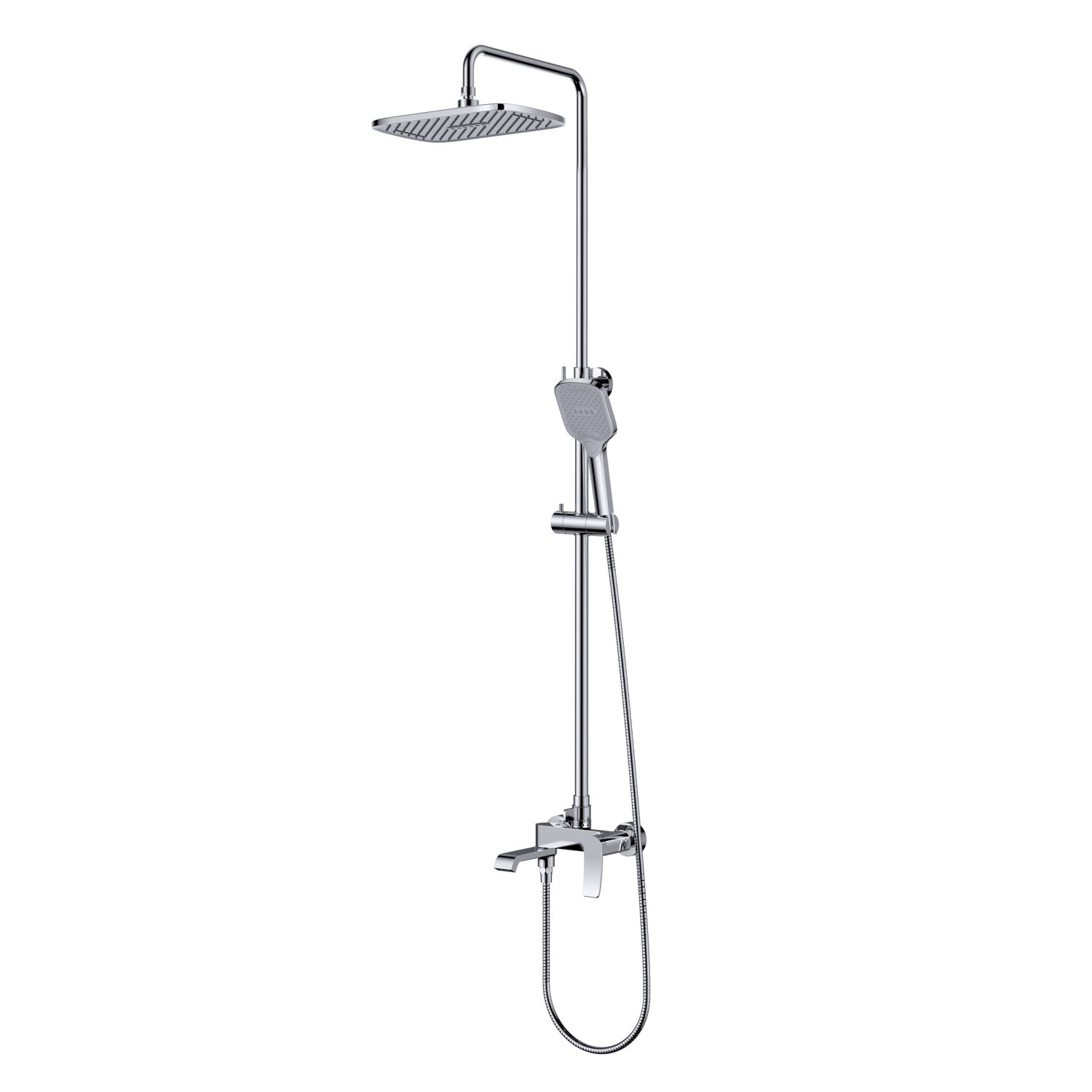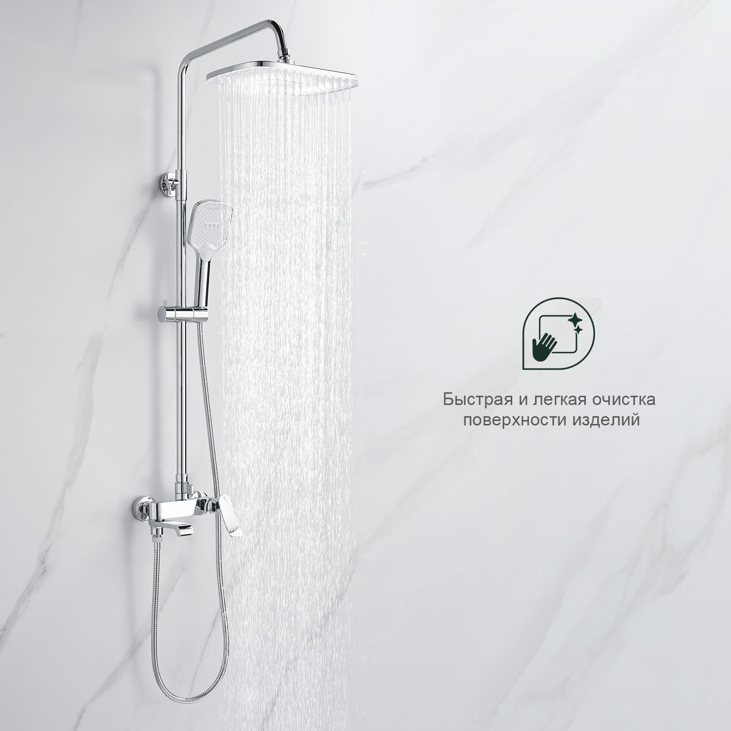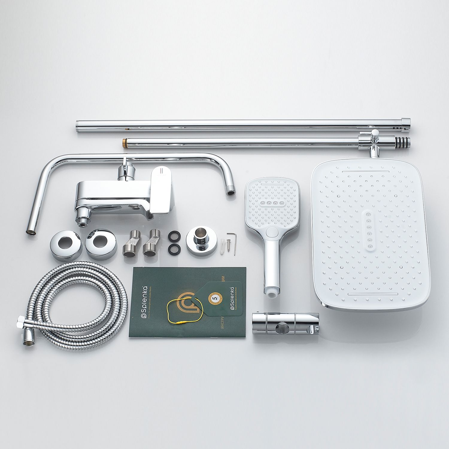 Верхний душ, душевая штанга с держателем лейки, ручной душ, смеситель, шланг |
