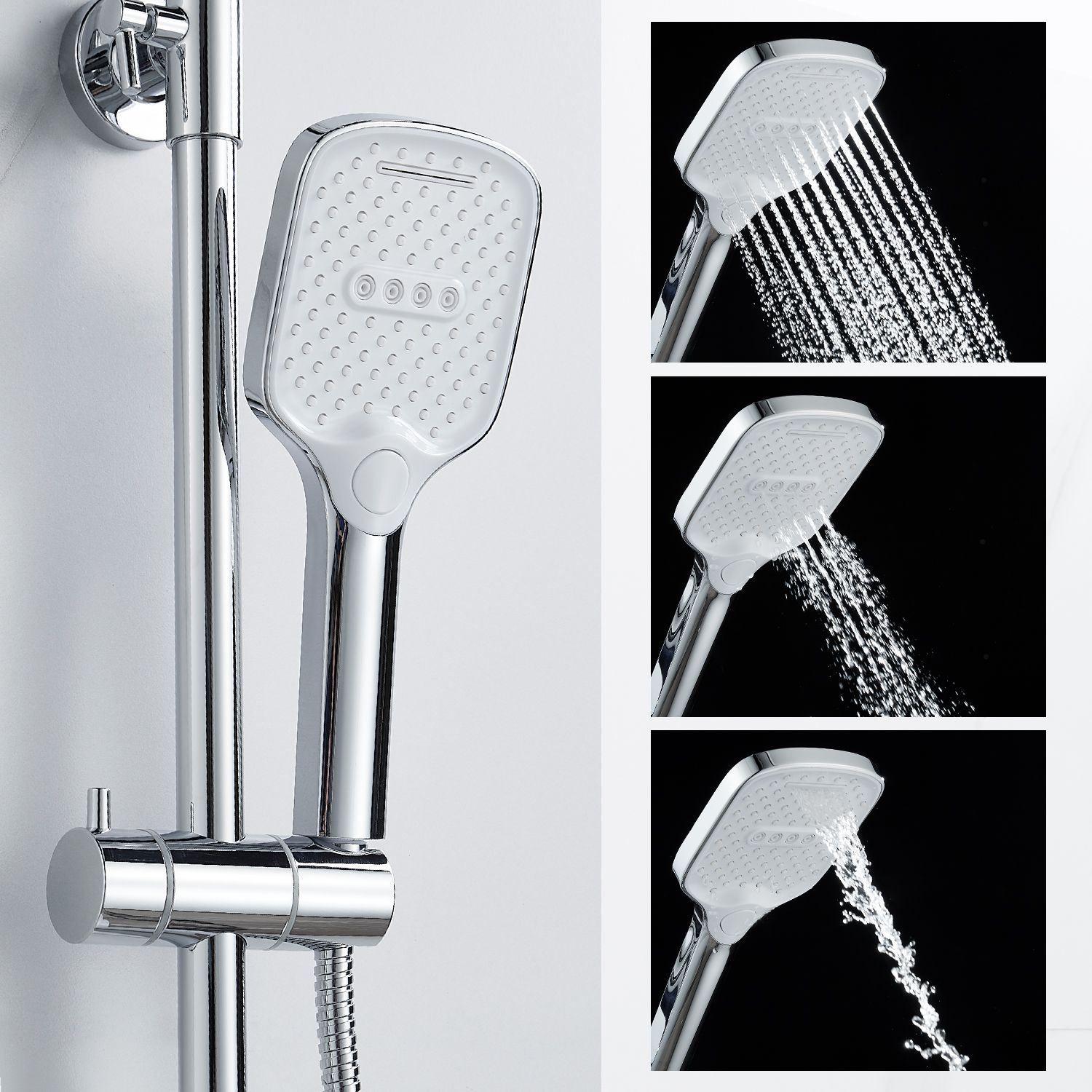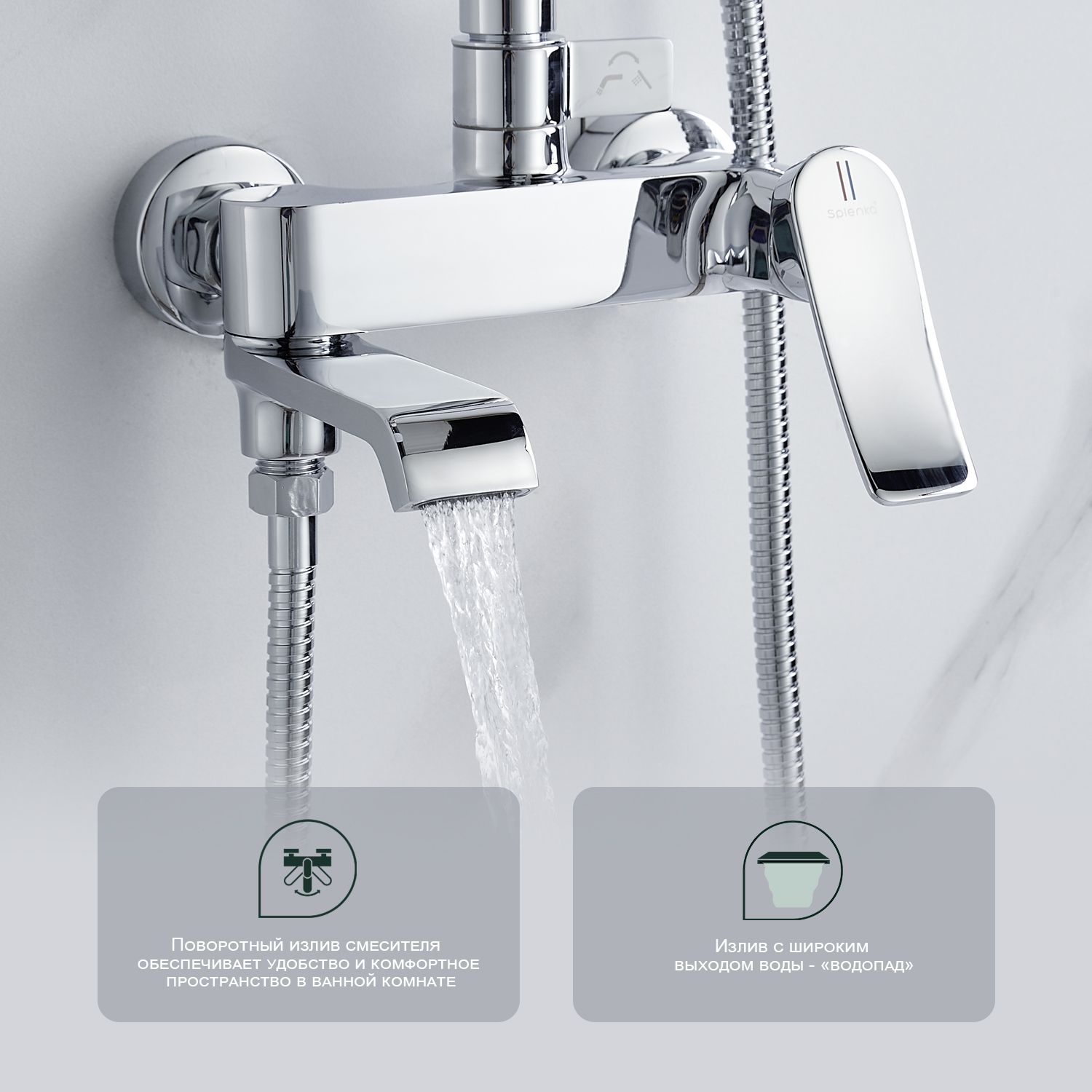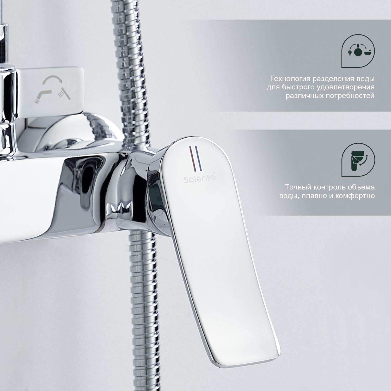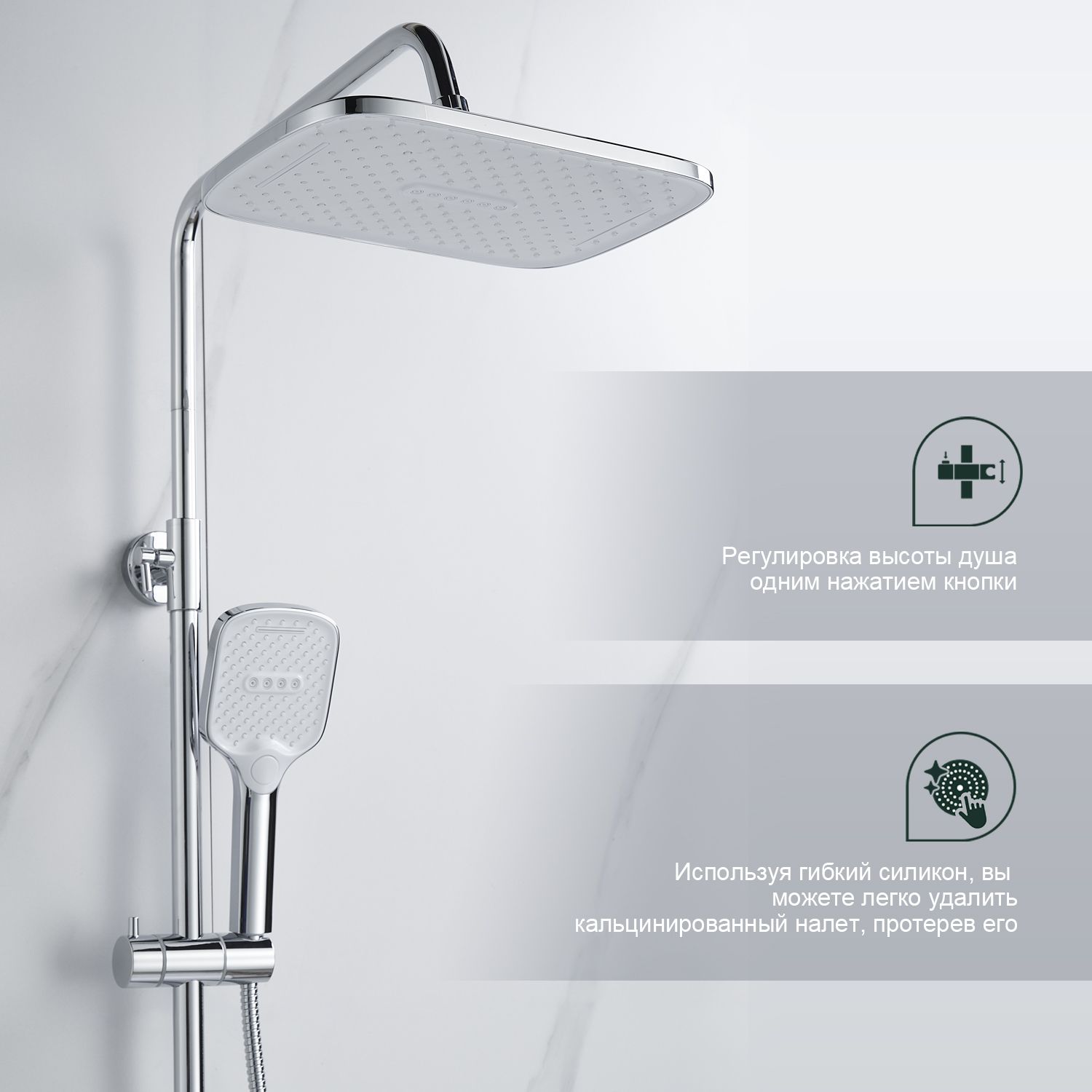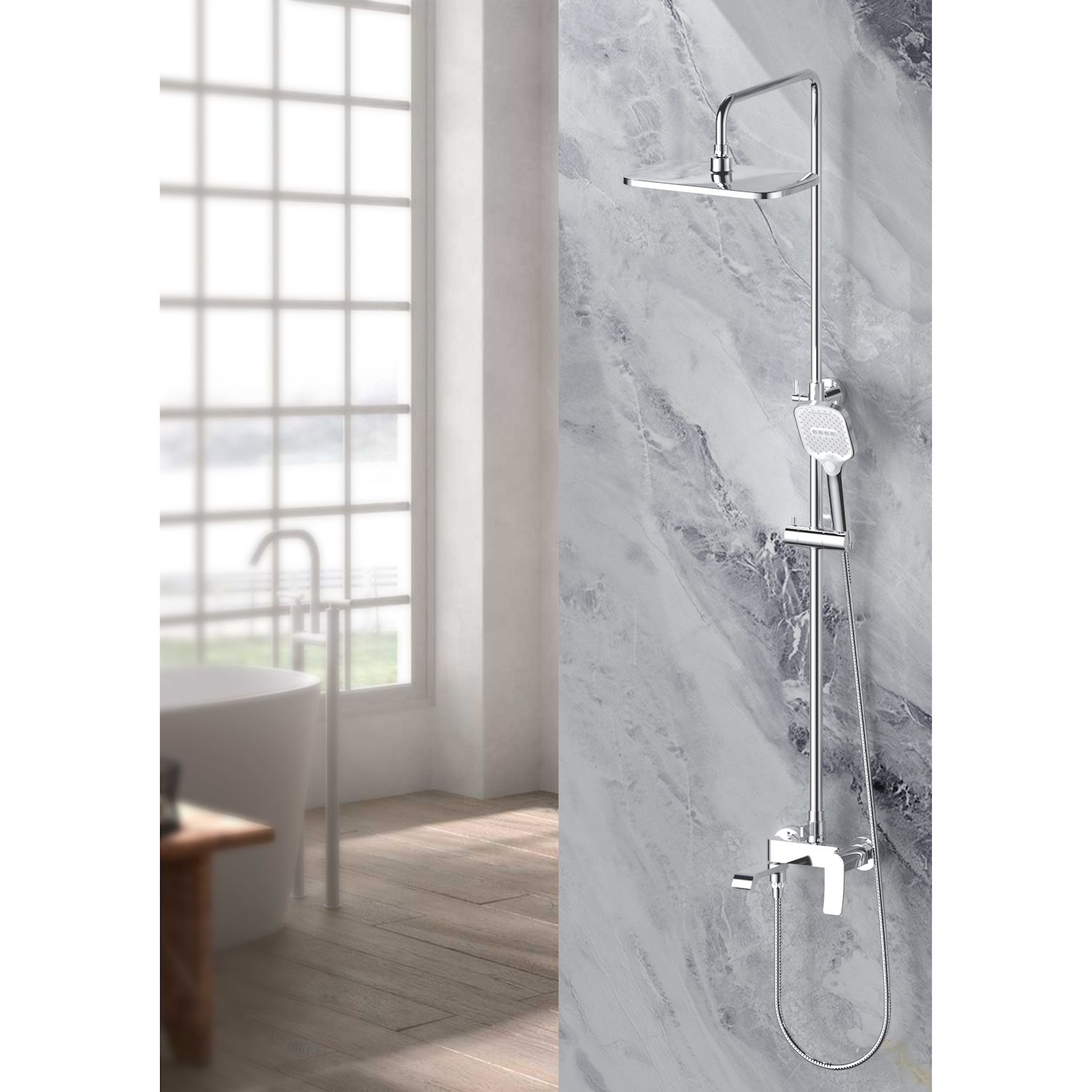 Верхний душ, душевая штанга с держателем лейки, ручной душ, смеситель, шланг |