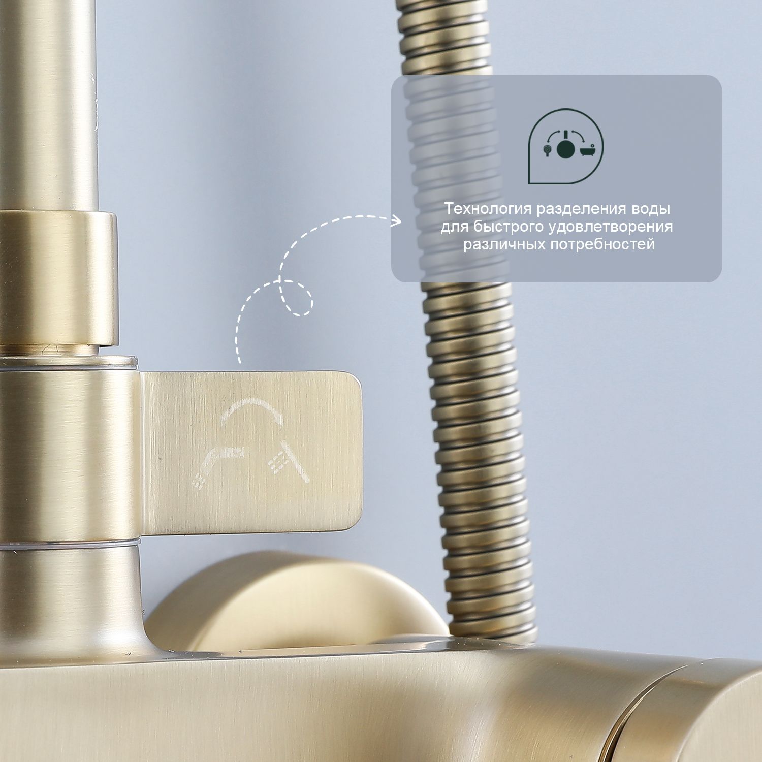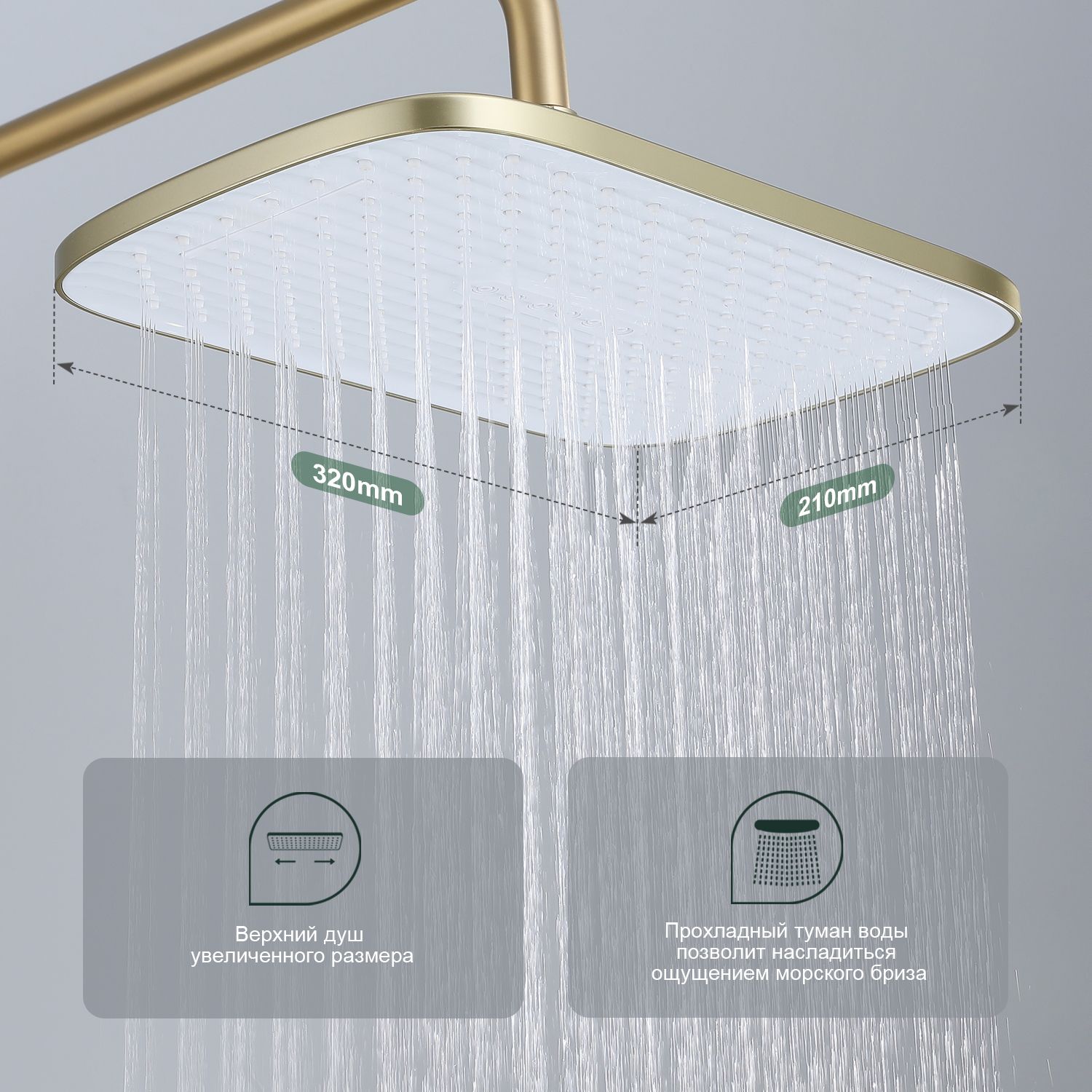 Верхний душ, душевая штанга с держателем лейки, ручной душ, смеситель, шланг |