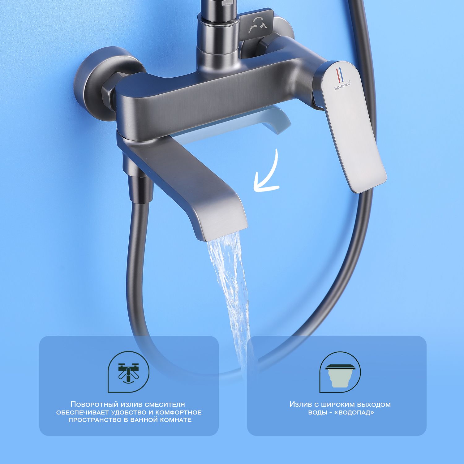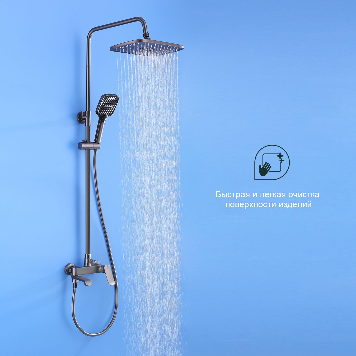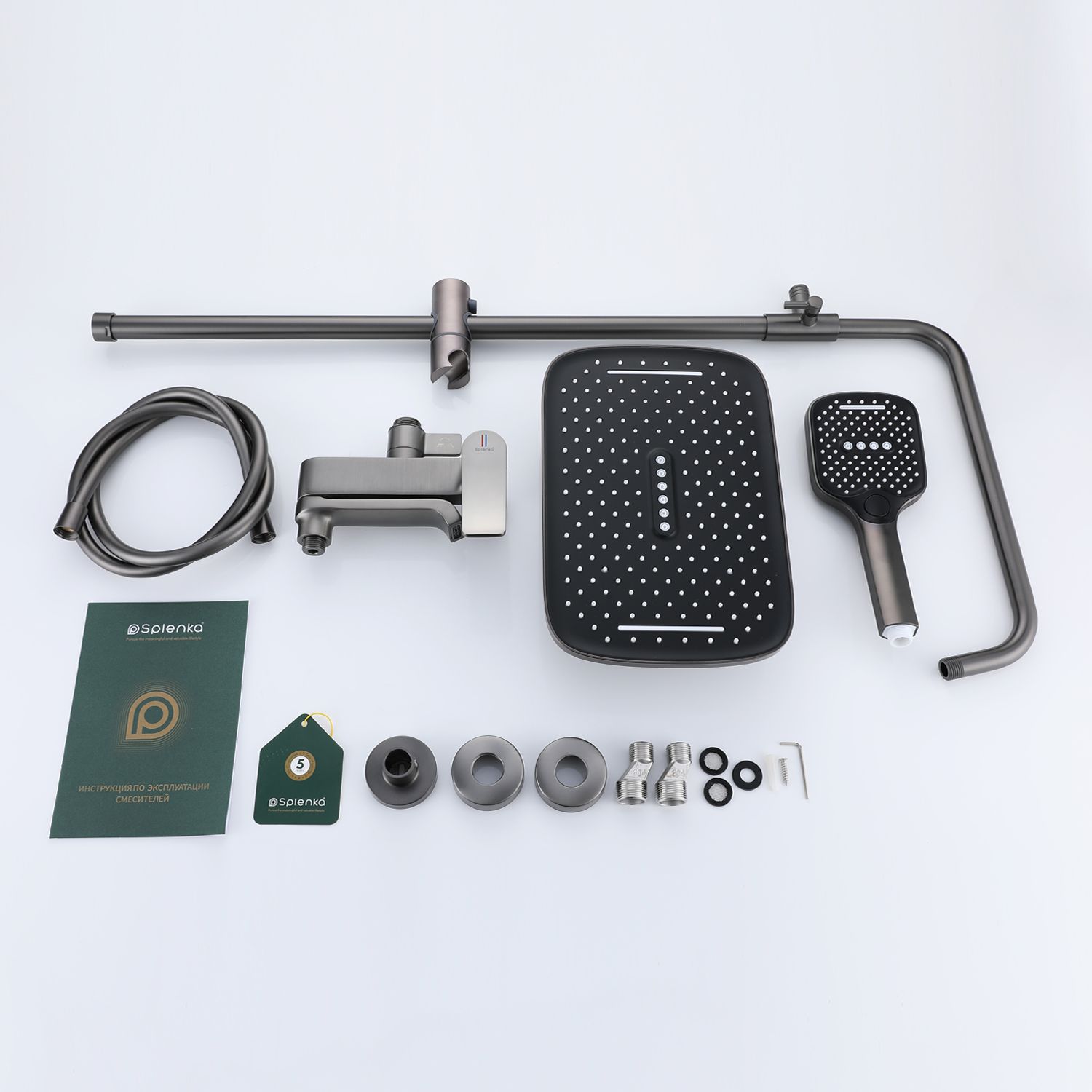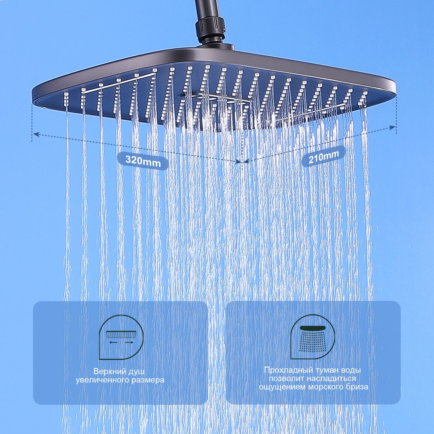 Верхний душ, душевая штанга с держателем лейки, ручной душ, смеситель, шланг |