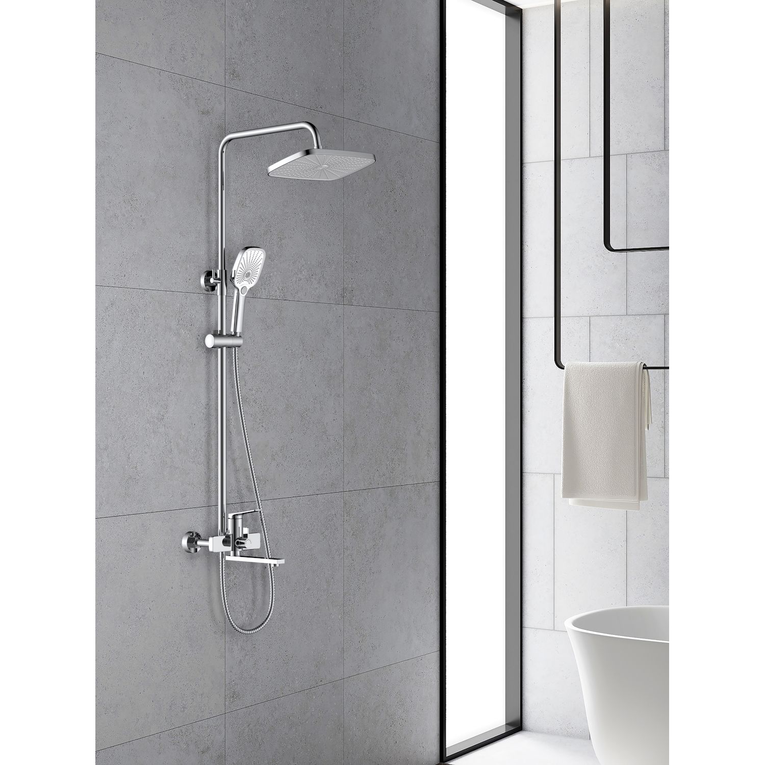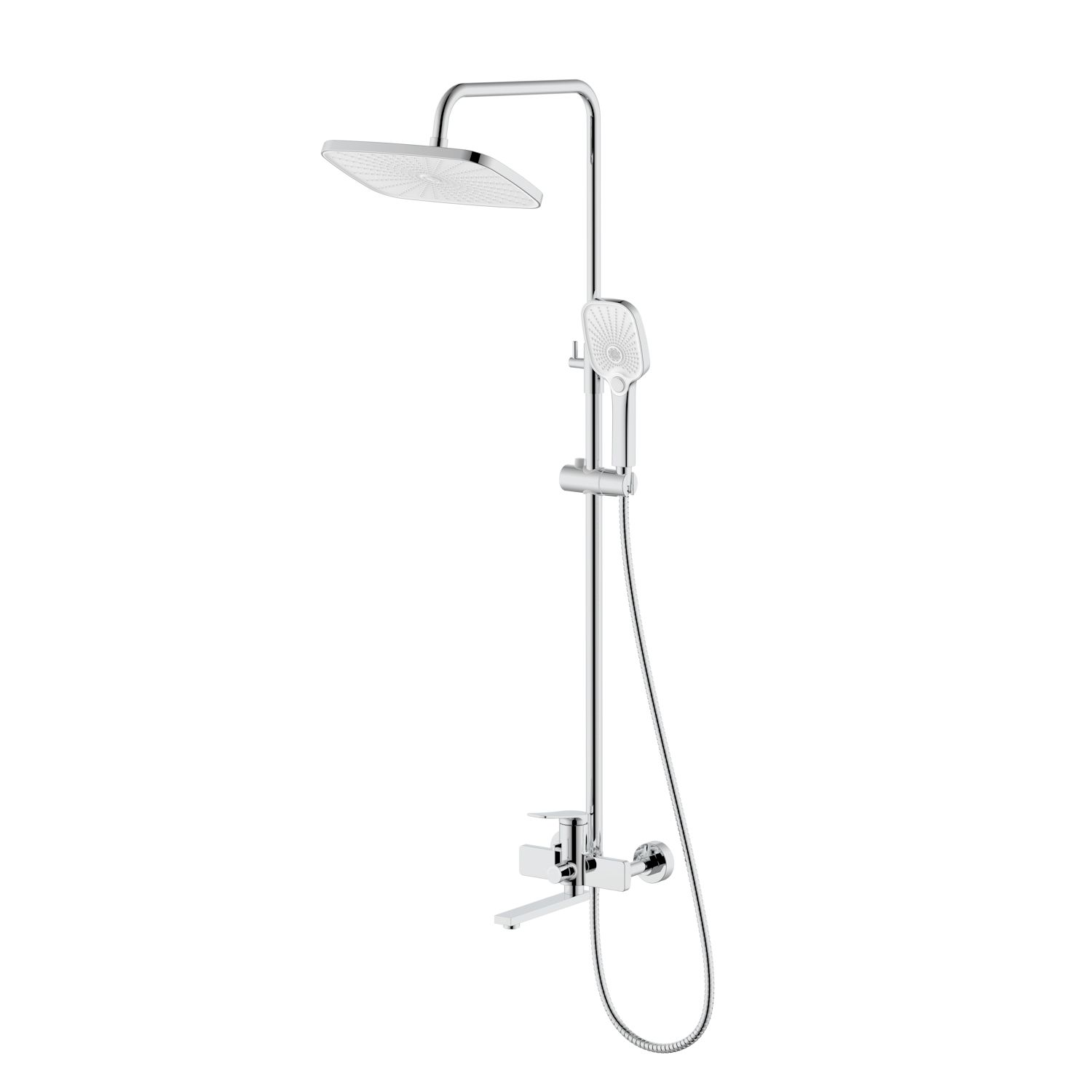 Верхний душ, душевая штанга с держателем лейки, ручной душ, смеситель, шланг |
