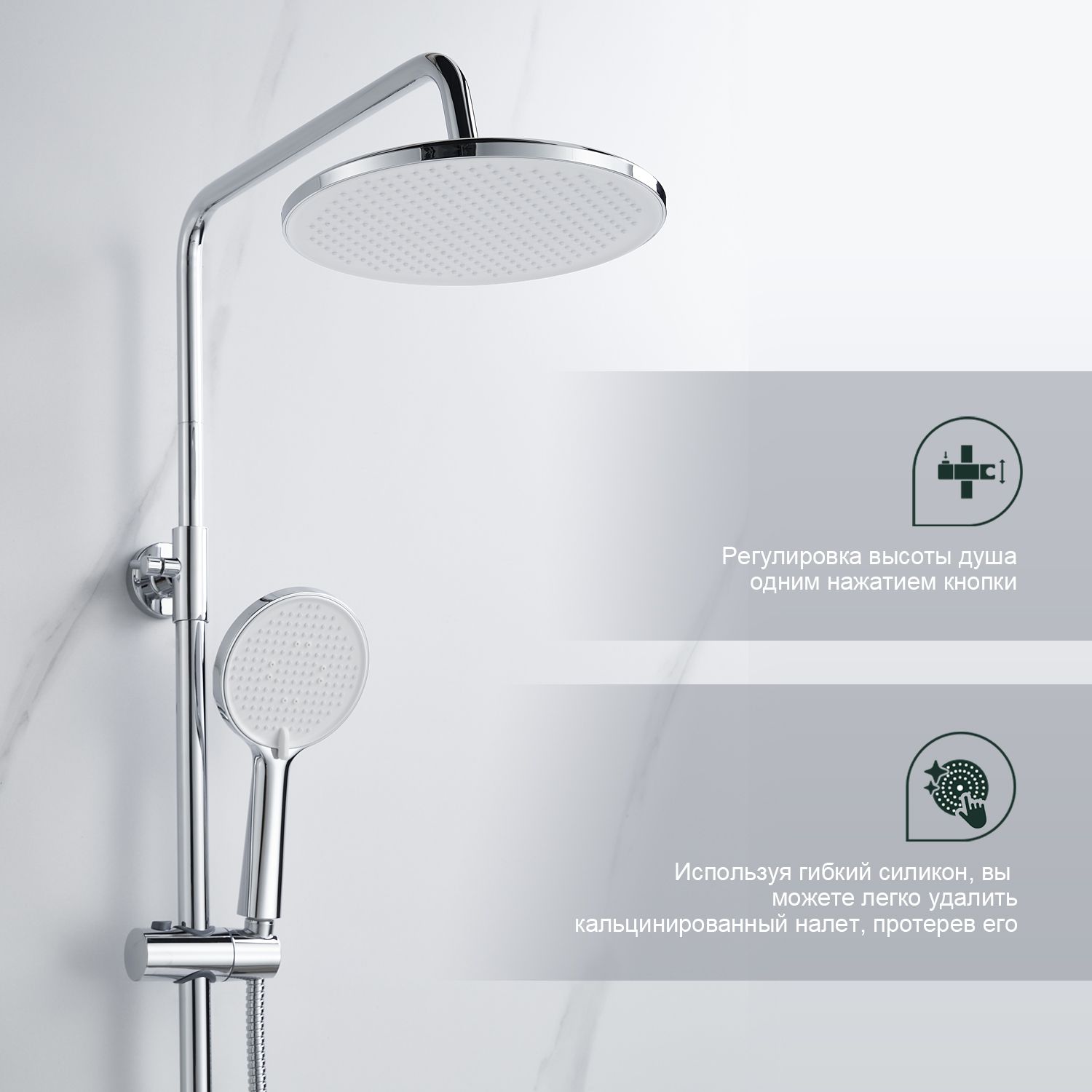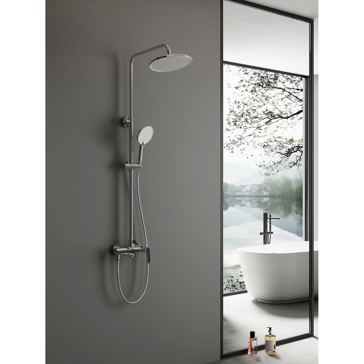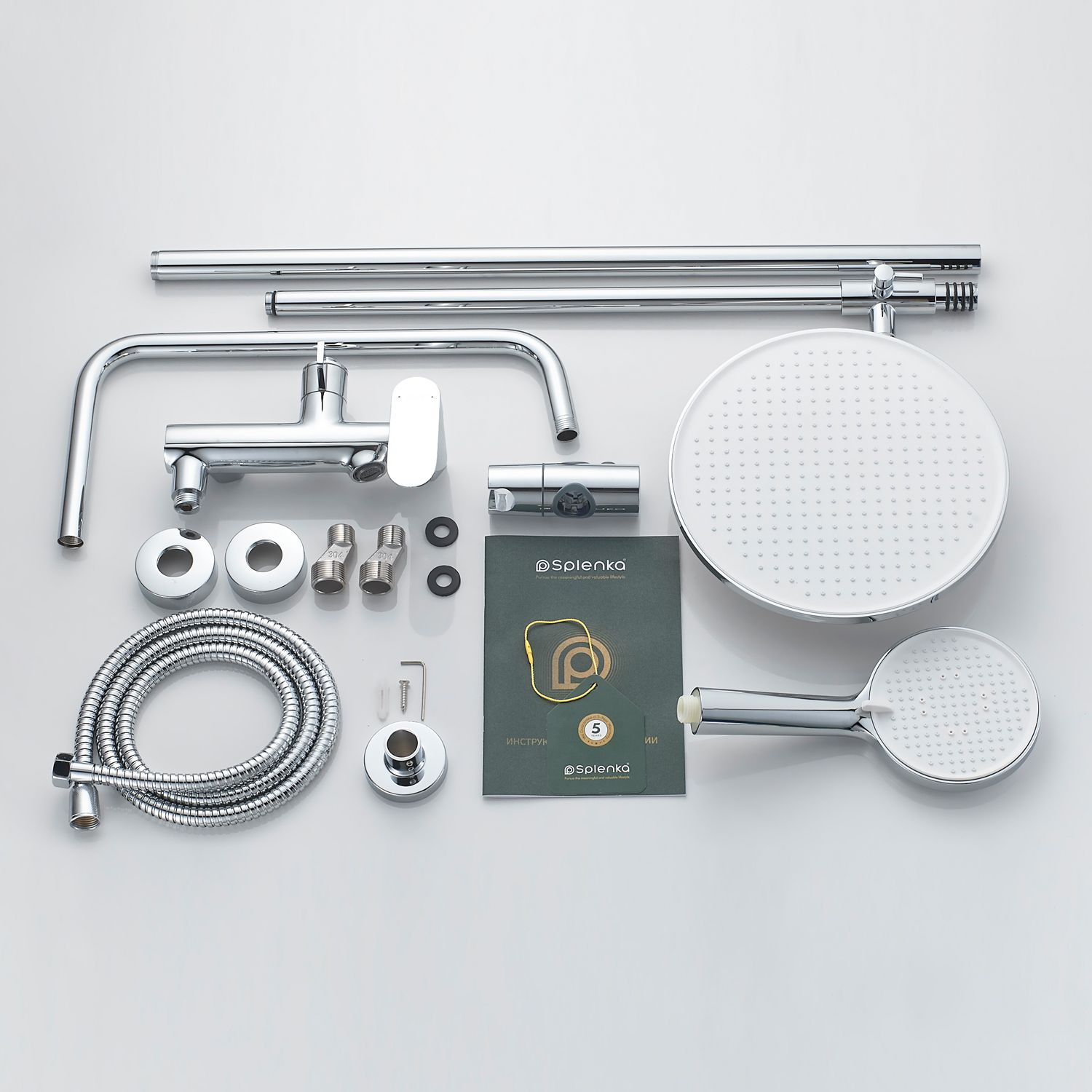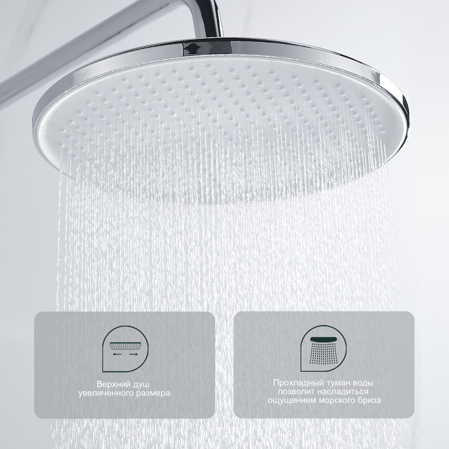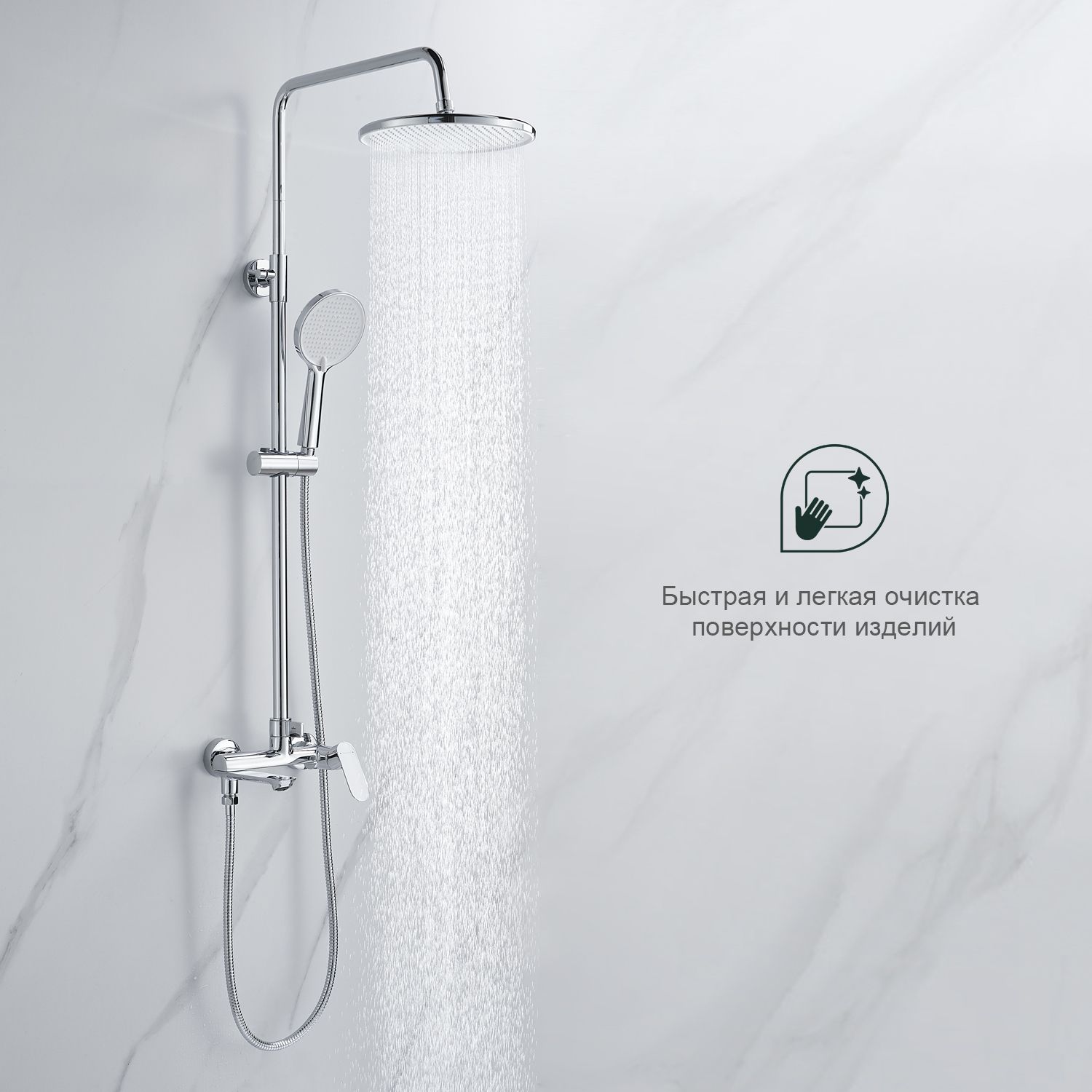 Верхний душ, душевая штанга с держателем лейки, ручной душ, смеситель, шланг |