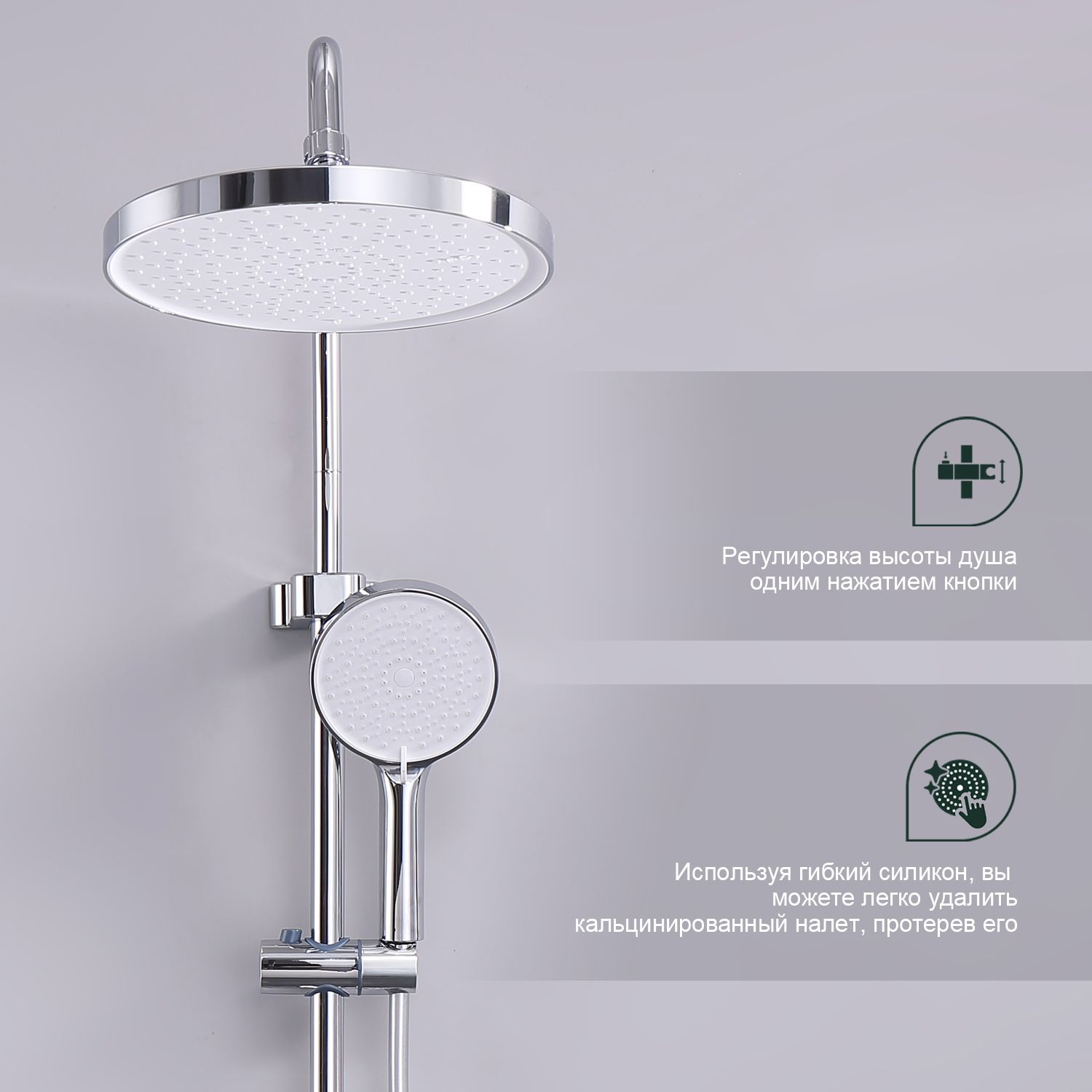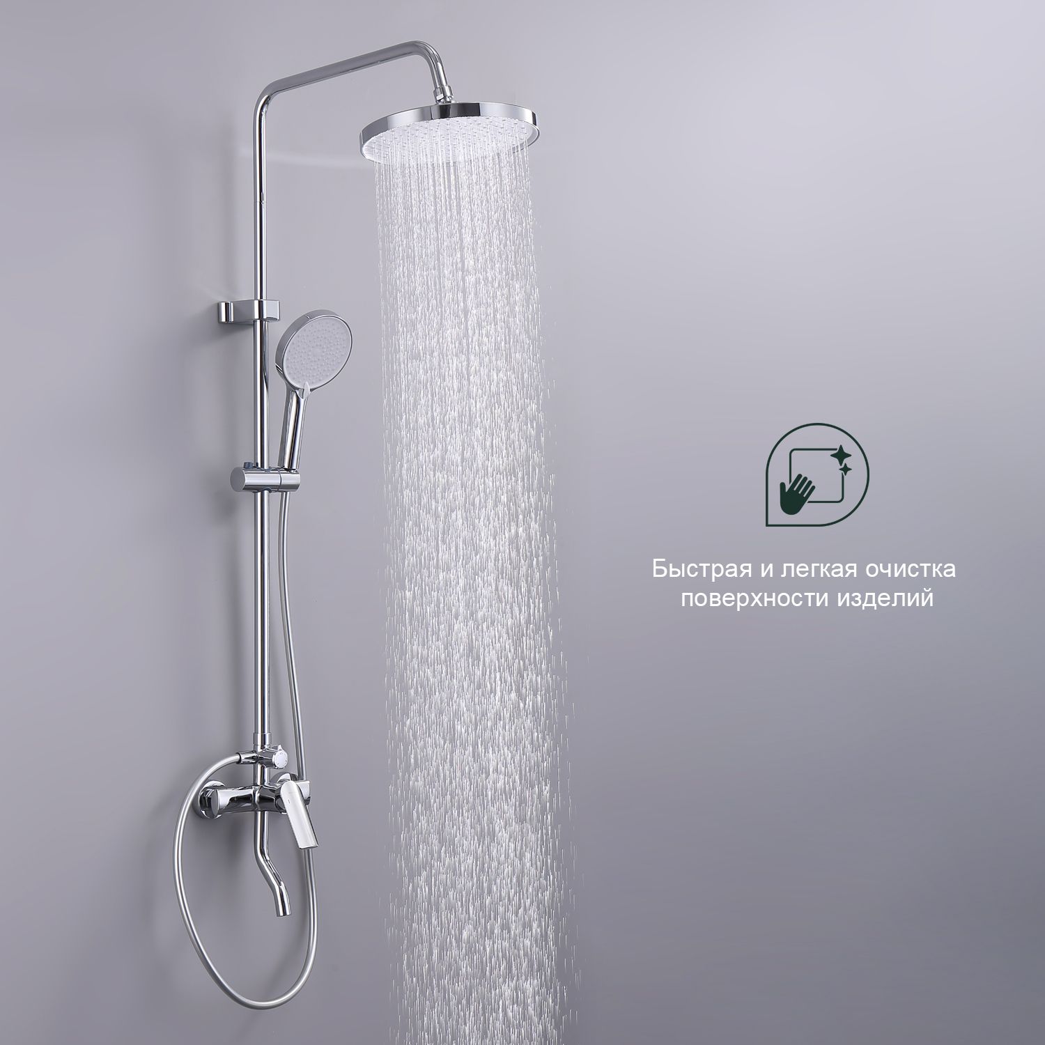 Верхний душ, душевая штанга с держателем лейки, ручной душ, смеситель, шланг |