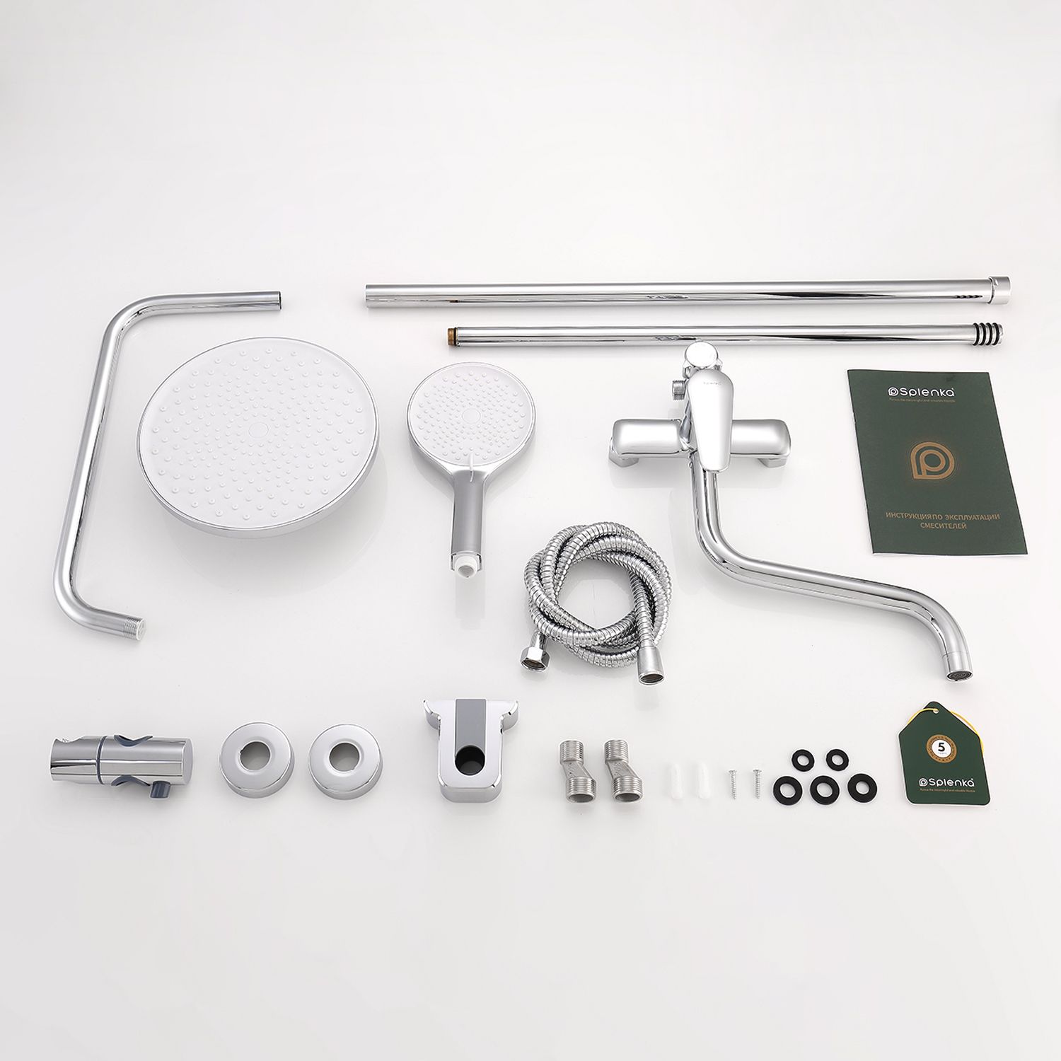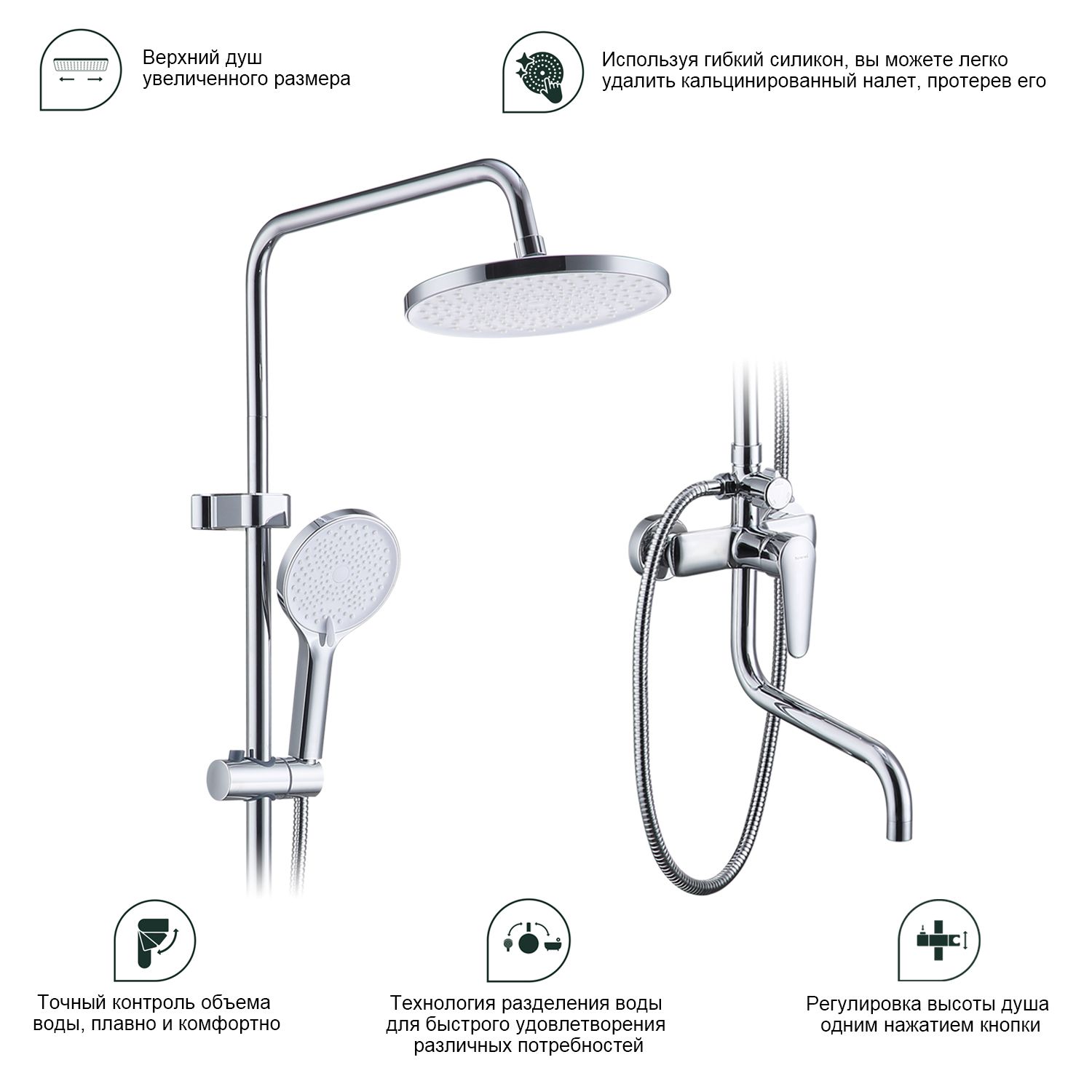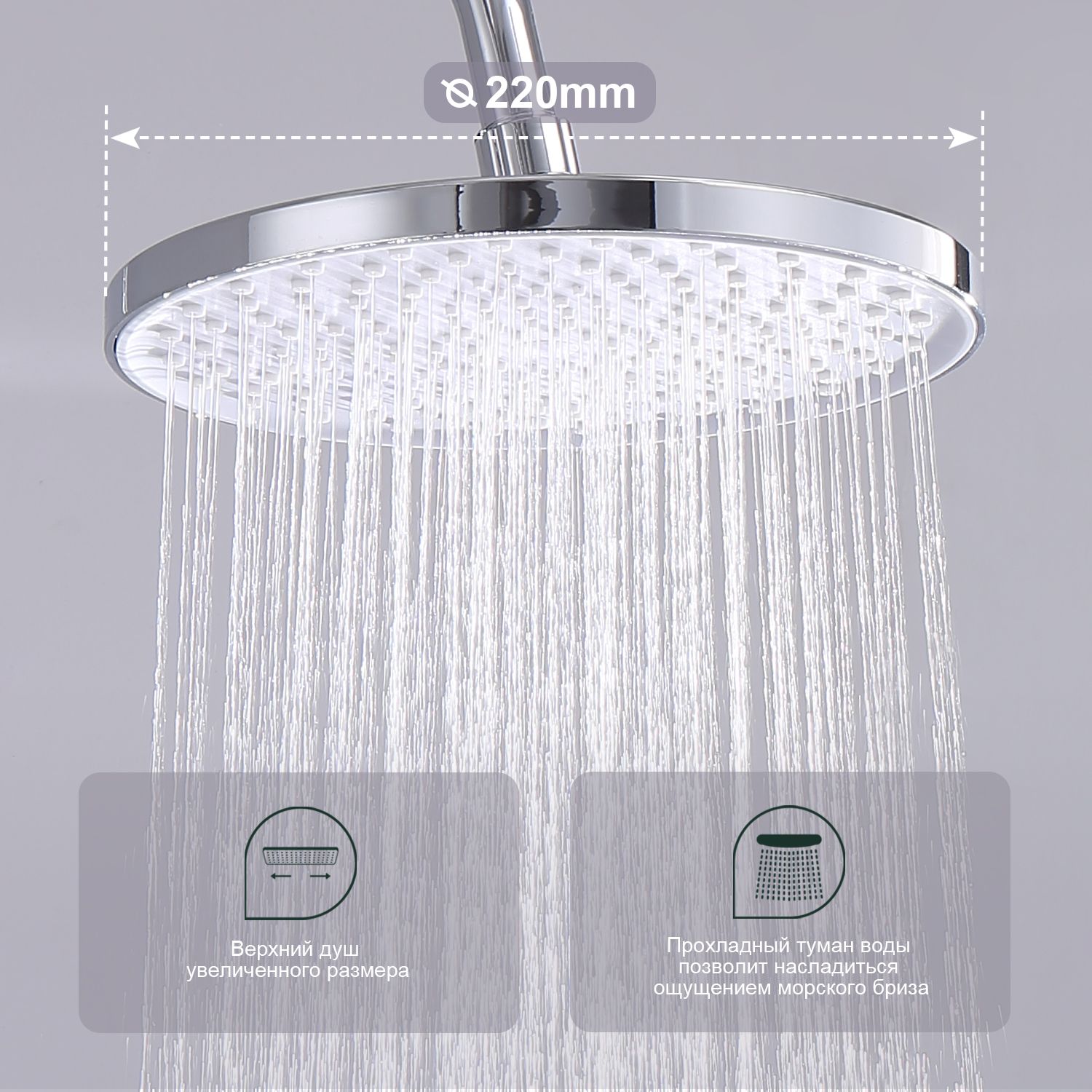 Верхний душ, душевая штанга с держателем лейки, ручной душ, смеситель, шланг |