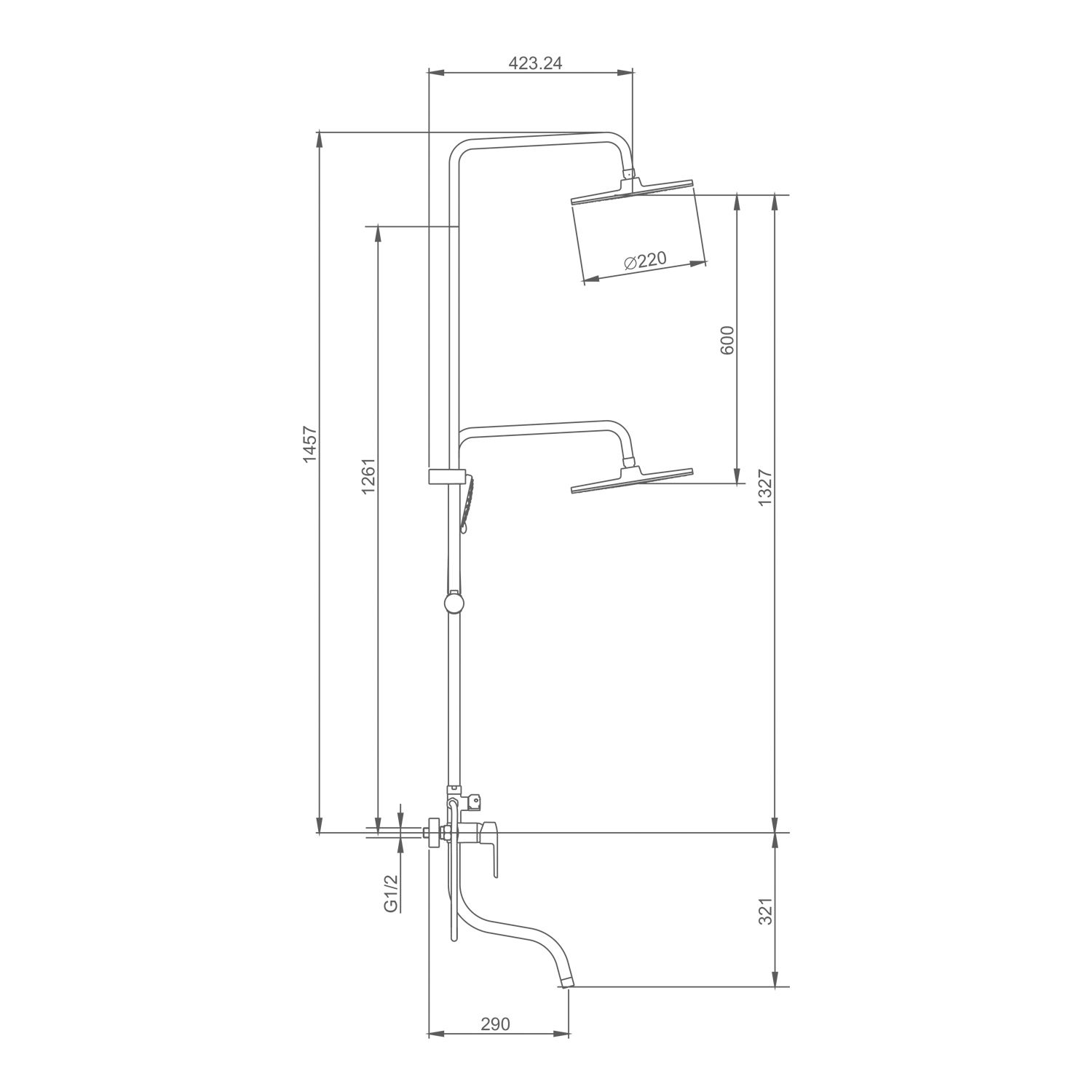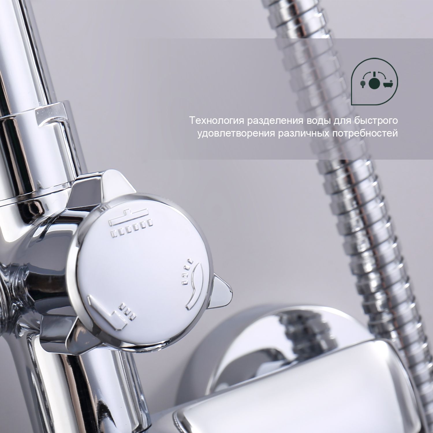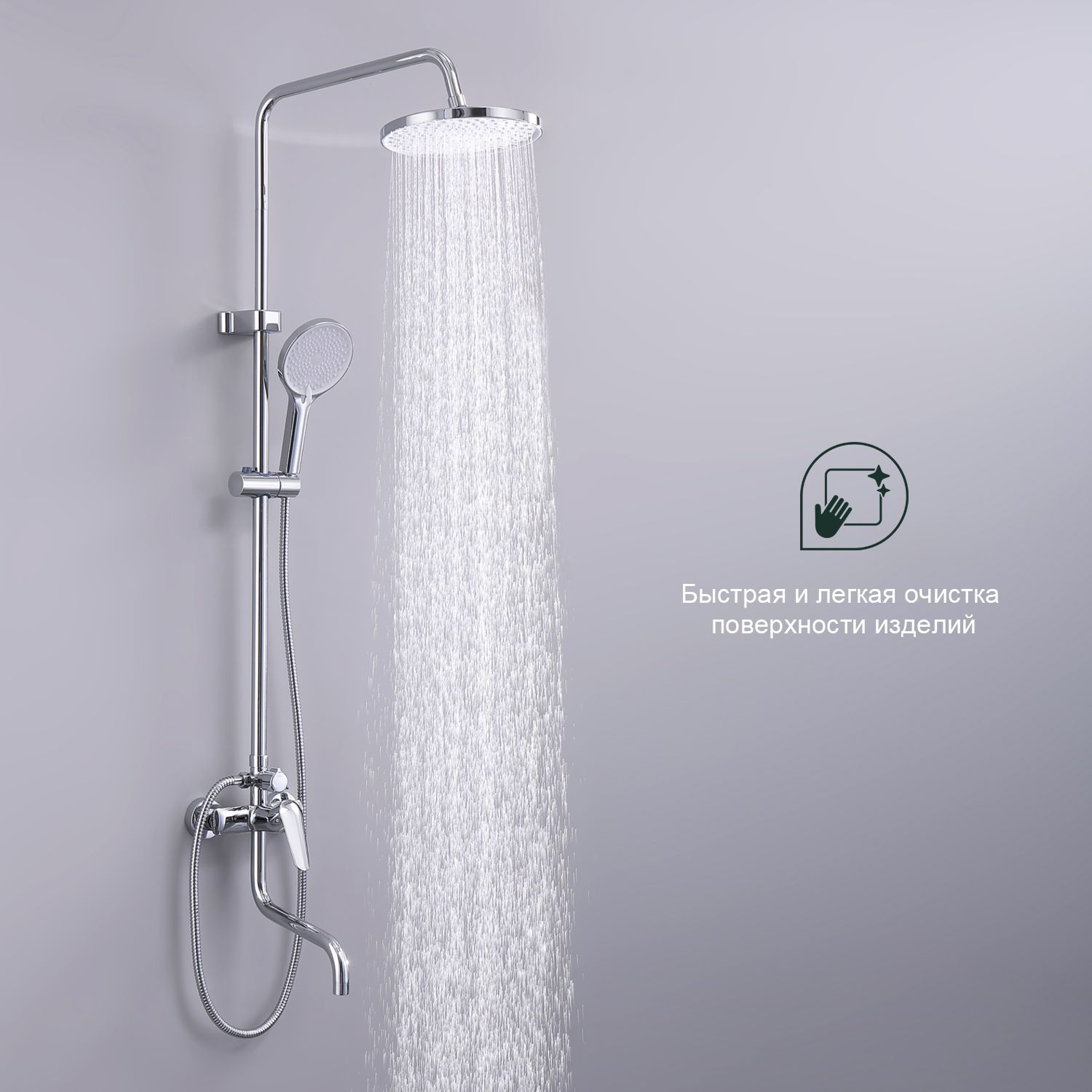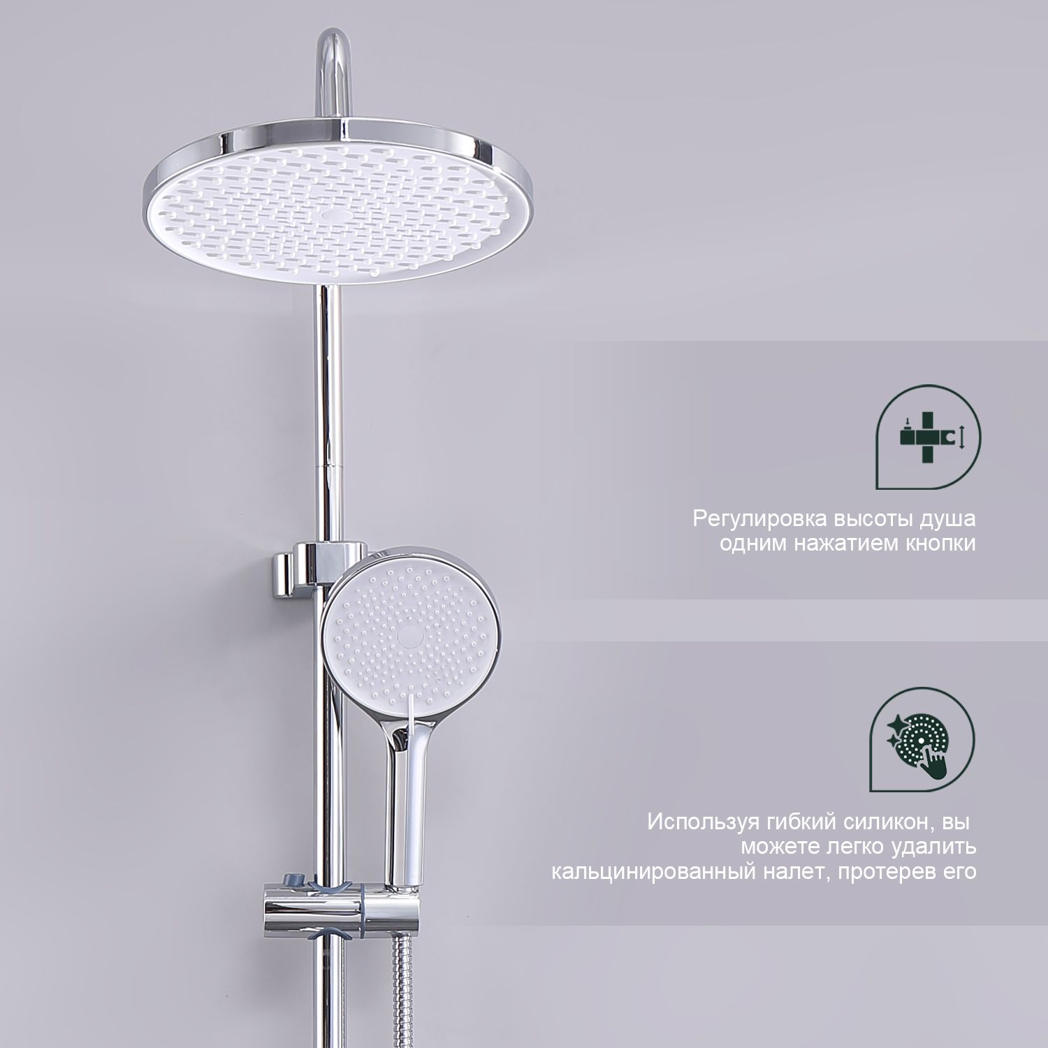 Верхний душ, душевая штанга с держателем лейки, ручной душ, смеситель, шланг |