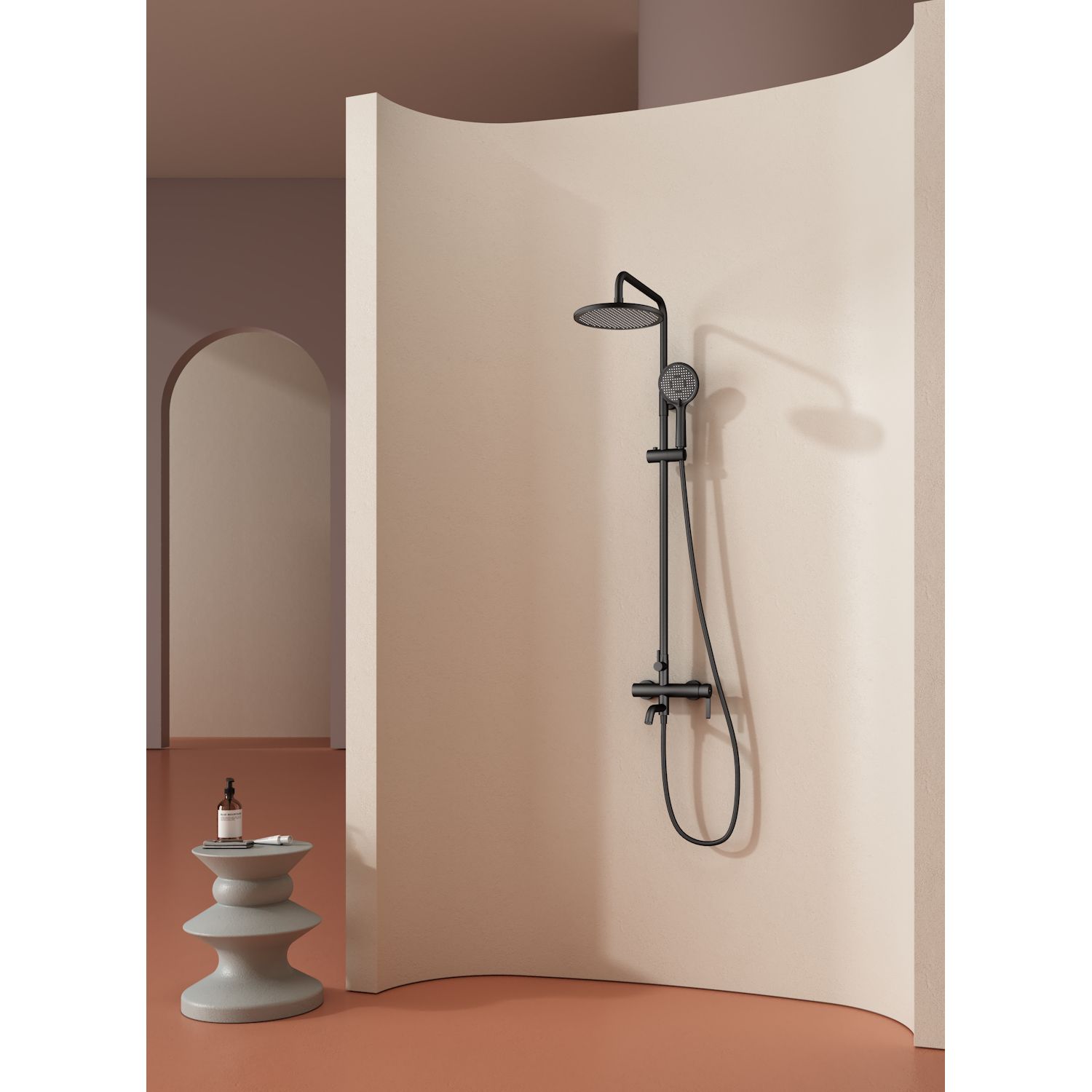 Верхний душ, душевая штанга с держателем лейки, ручной душ, смеситель, шланг |