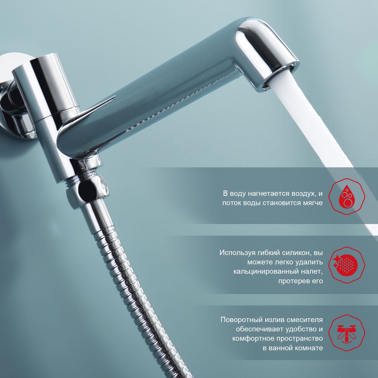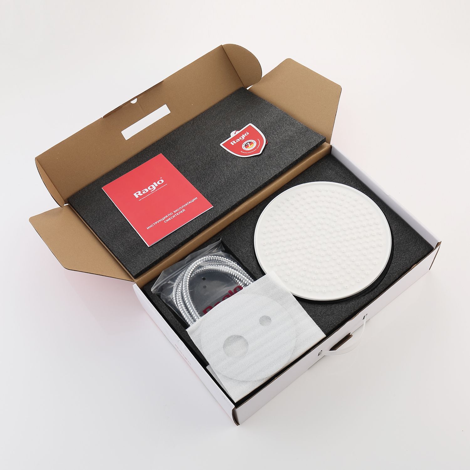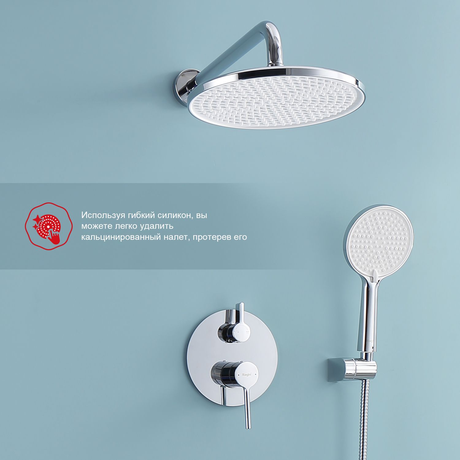 Смеситель, внутренняя часть, шланговое подключение с держателем лейки, душевой шланг, верхний душ с кронштейном, излив |