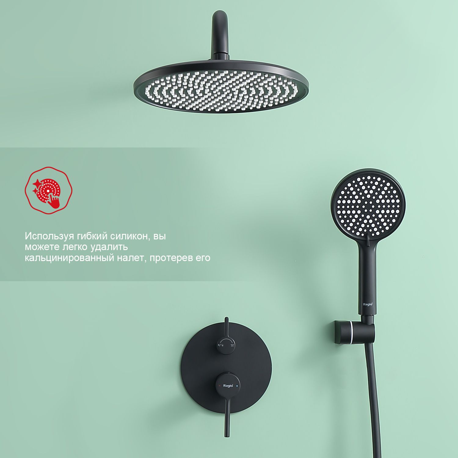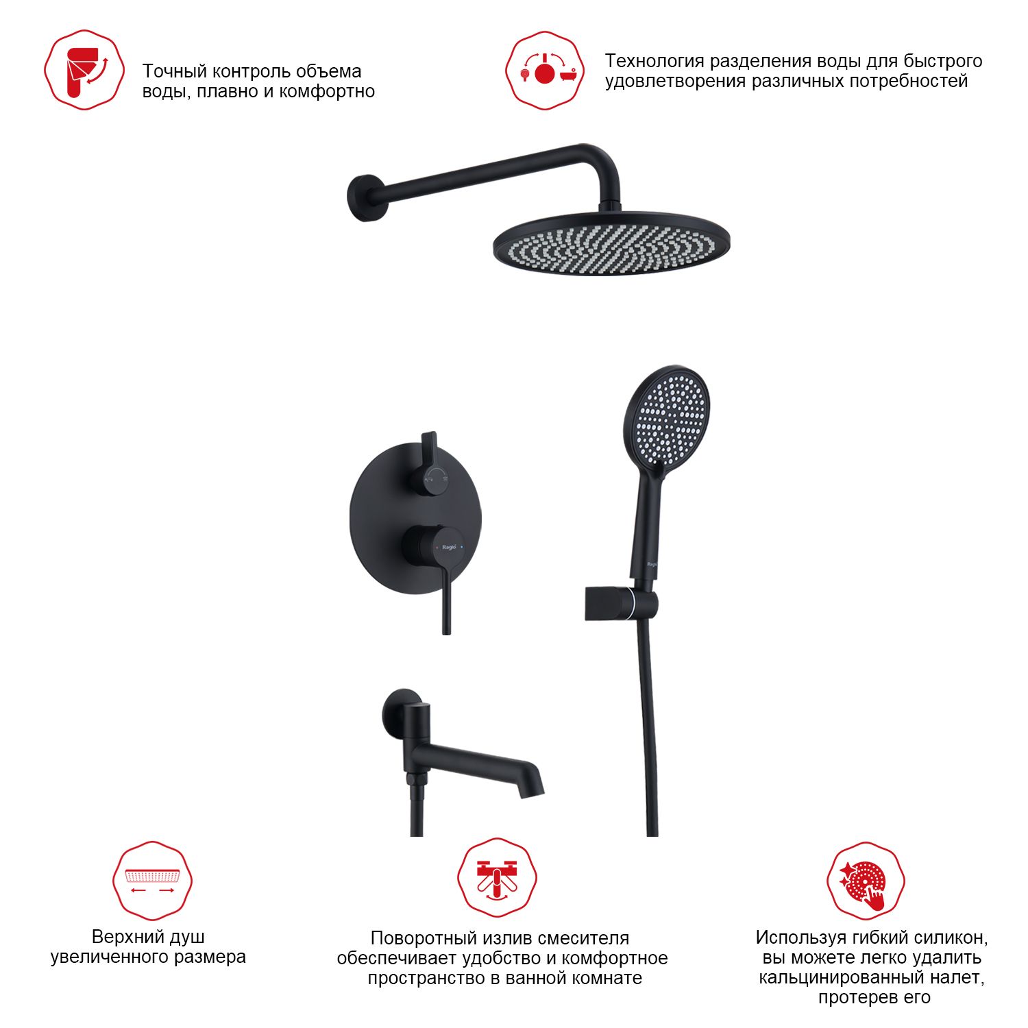 Смеситель, внутренняя часть, шланговое подключение с держателем лейки, душевой шланг, верхний душ с кронштейном, излив |