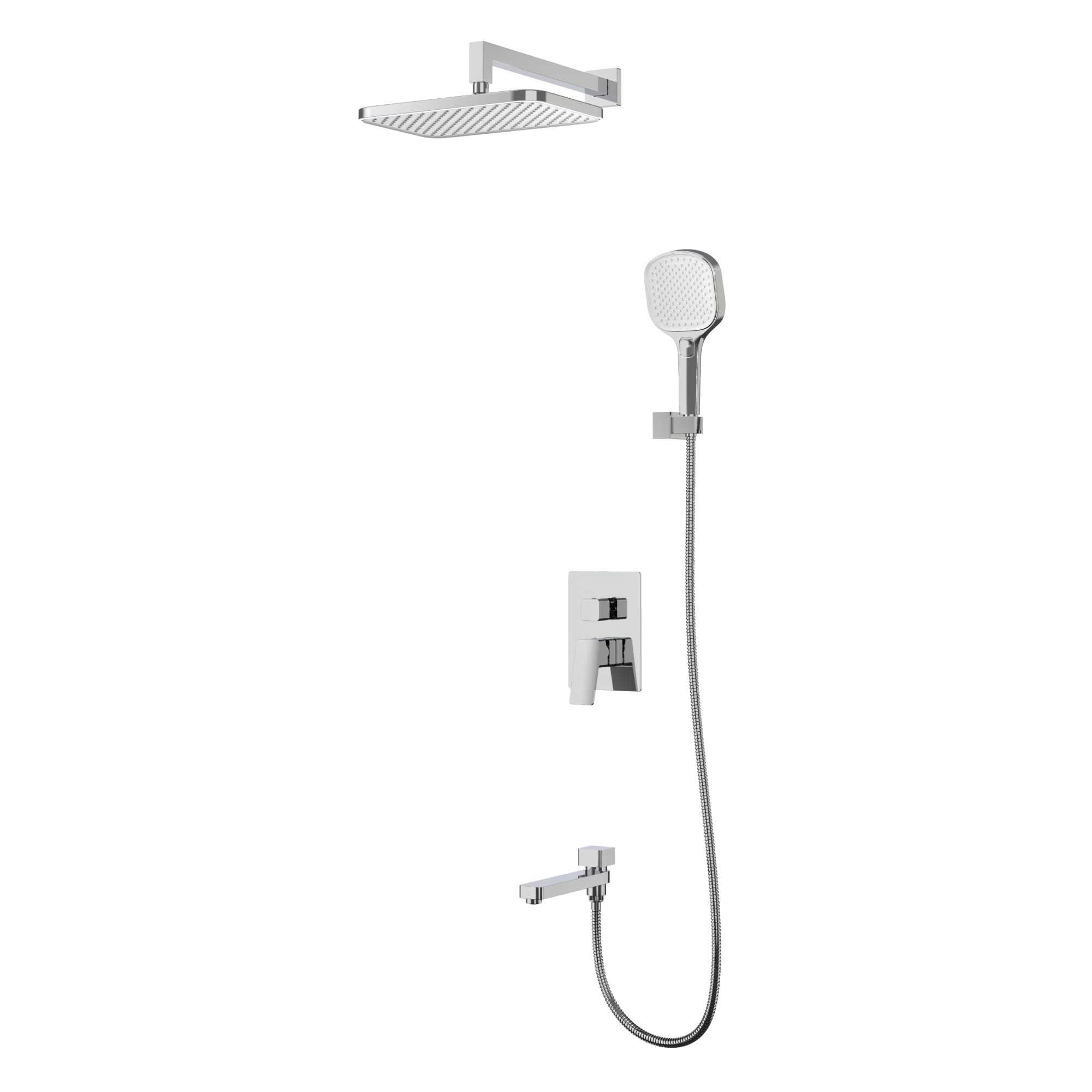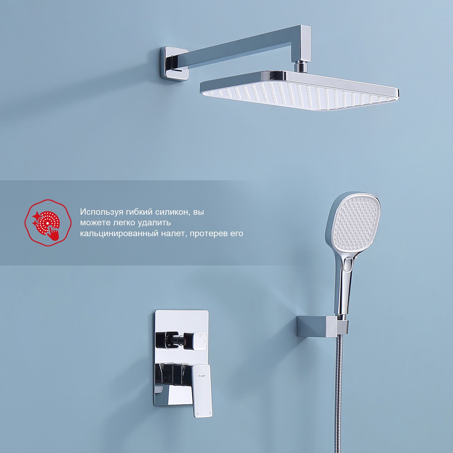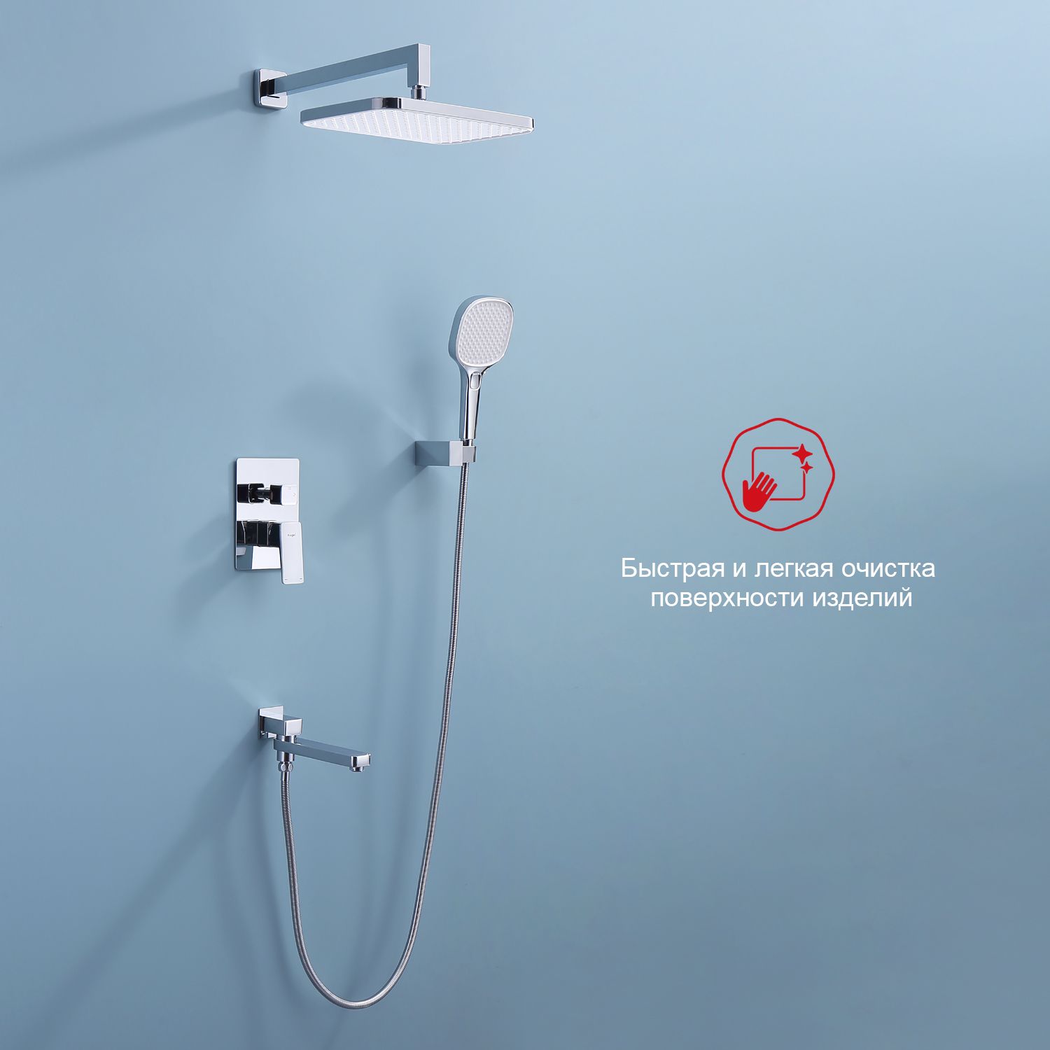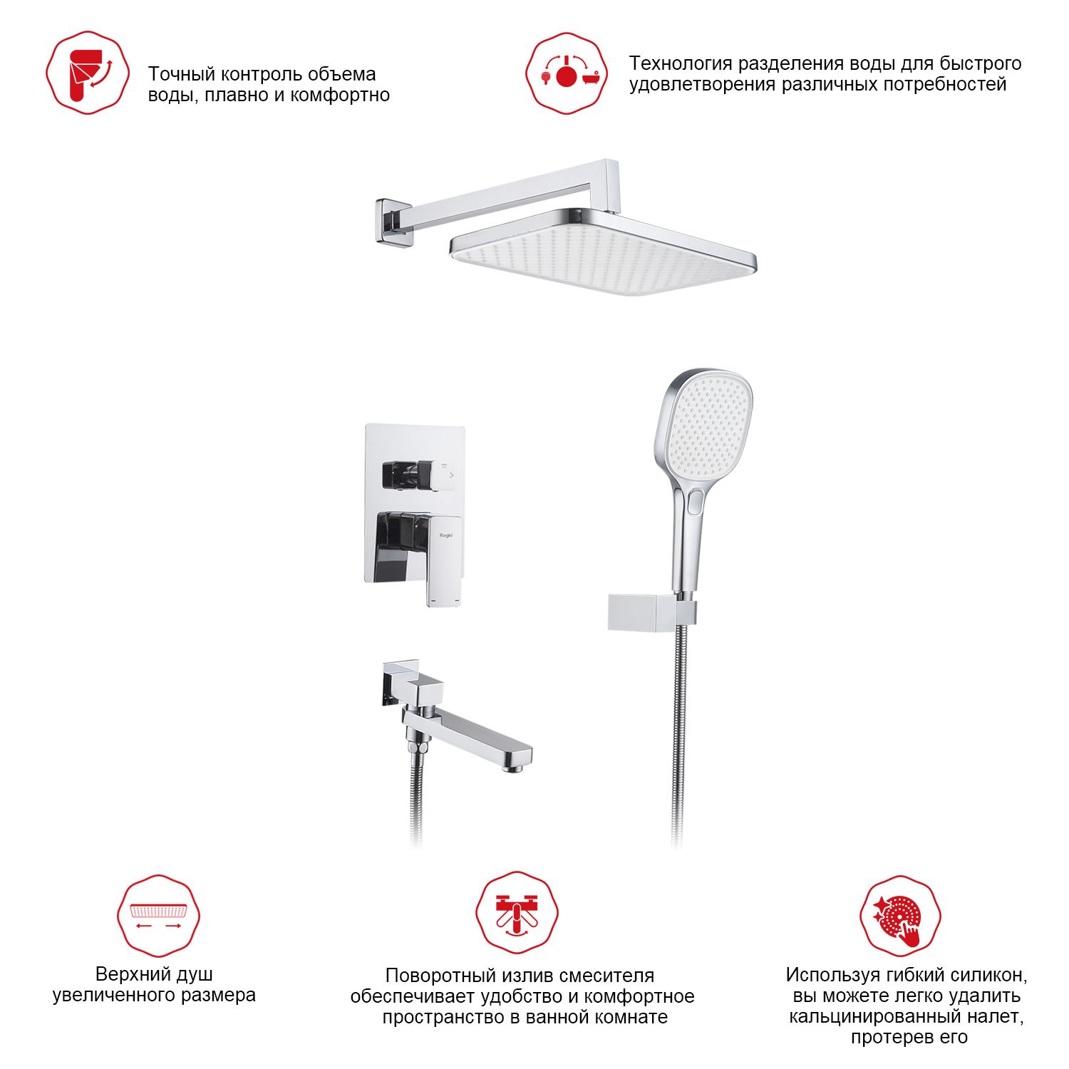Смеситель, внутренняя часть, шланговое подключение с держателем лейки, душевой шланг, верхний душ с кронштейном, излив |
