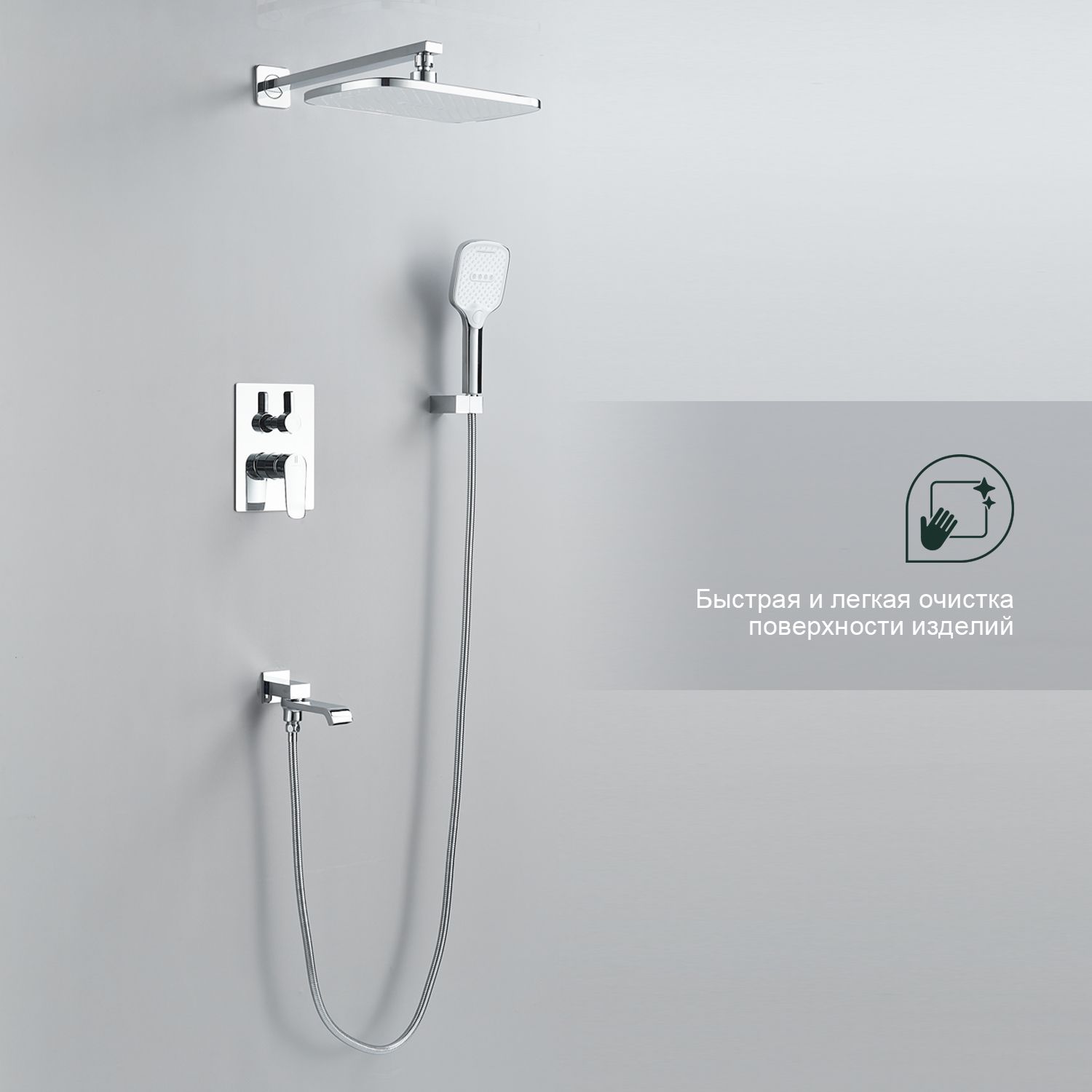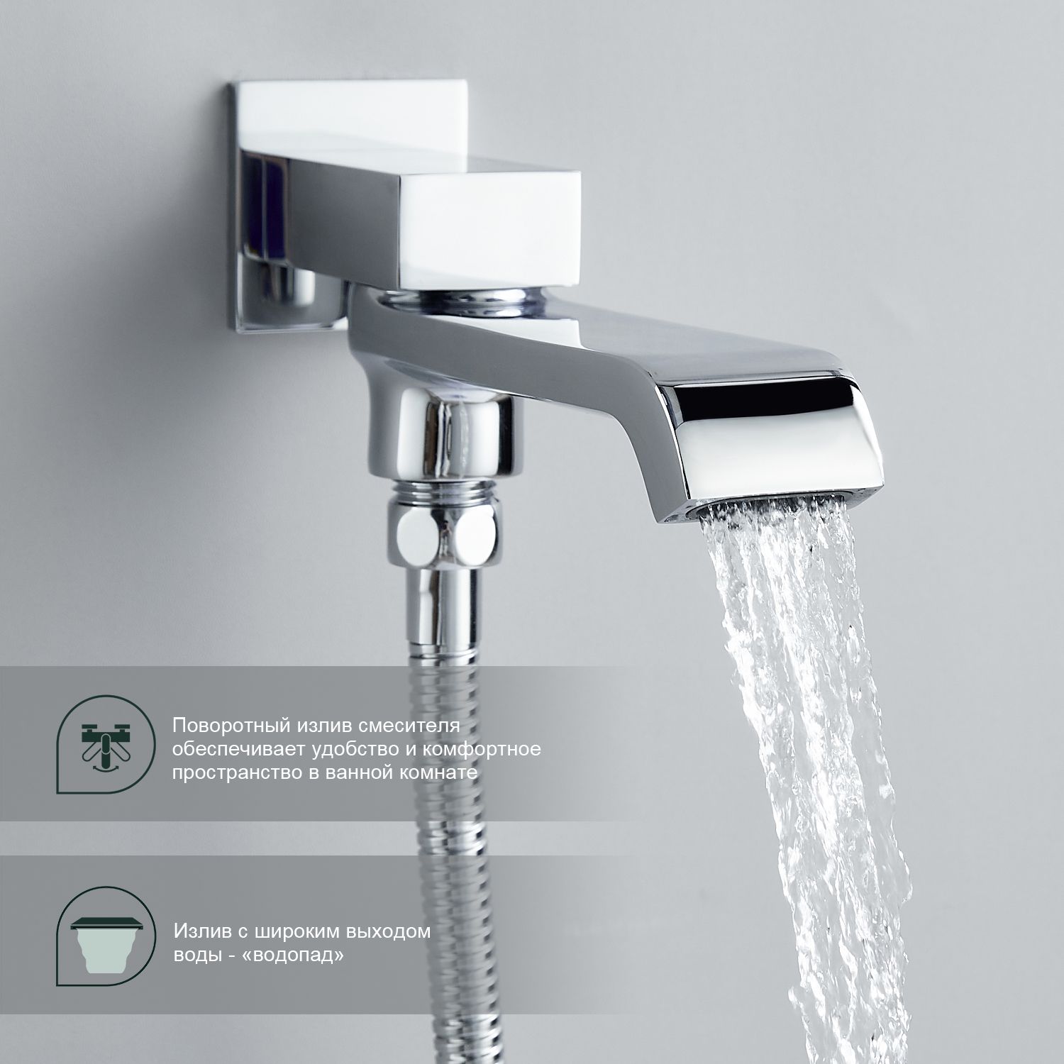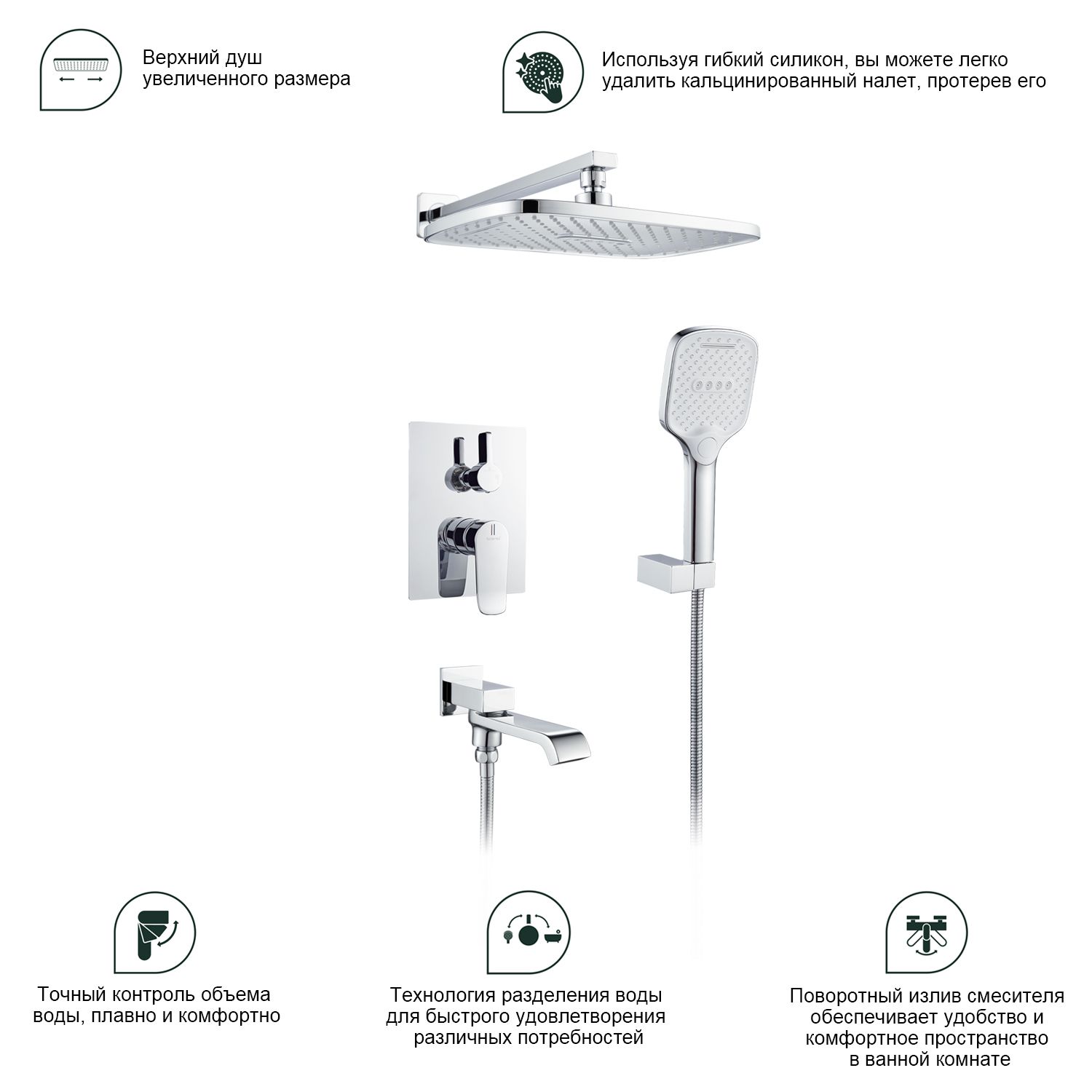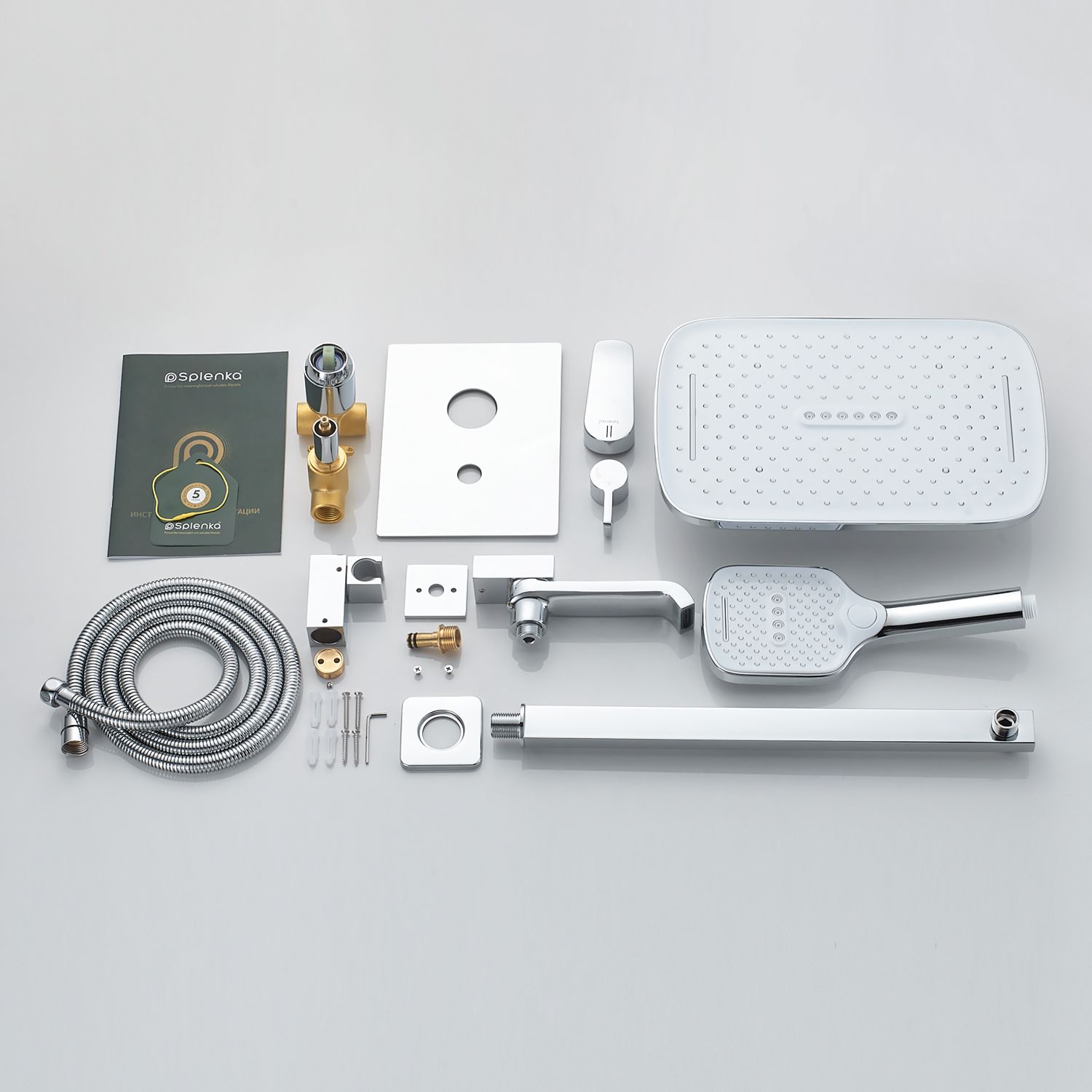 Смеситель, внутренняя часть, шланговое подключение с держателем лейки, душевой шланг, верхний душ с кронштейном, излив |