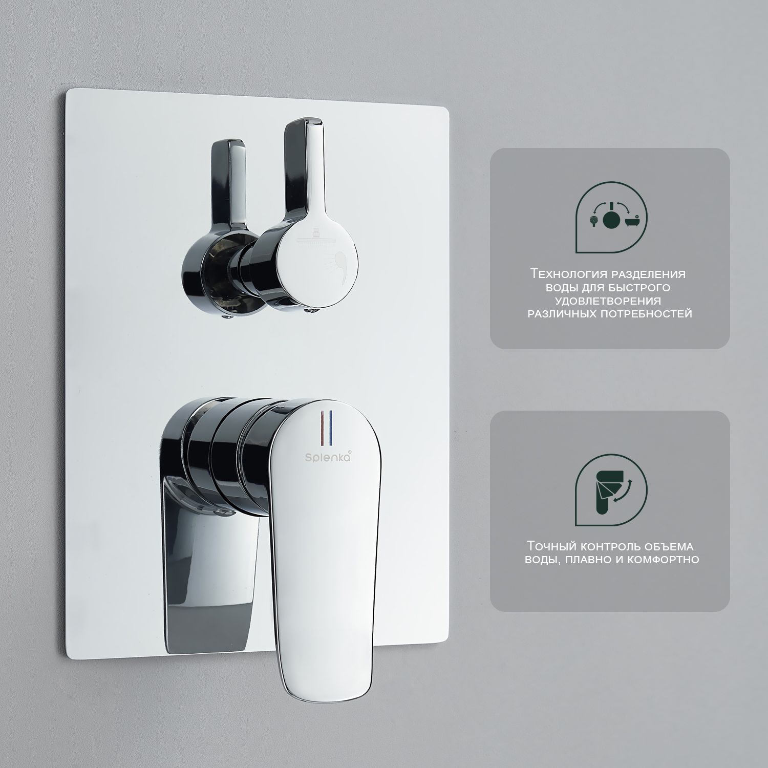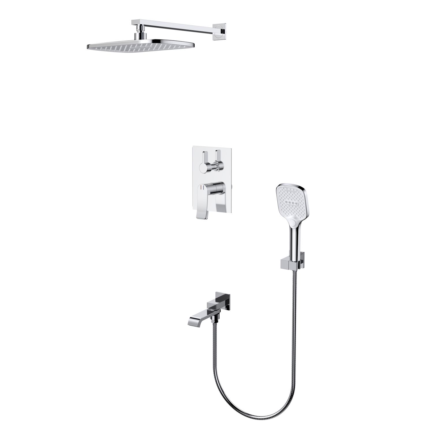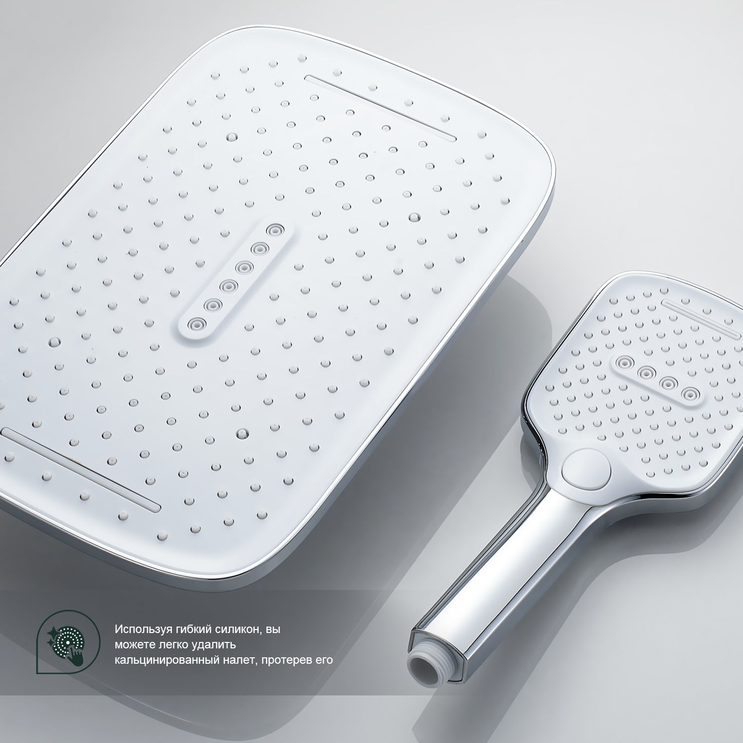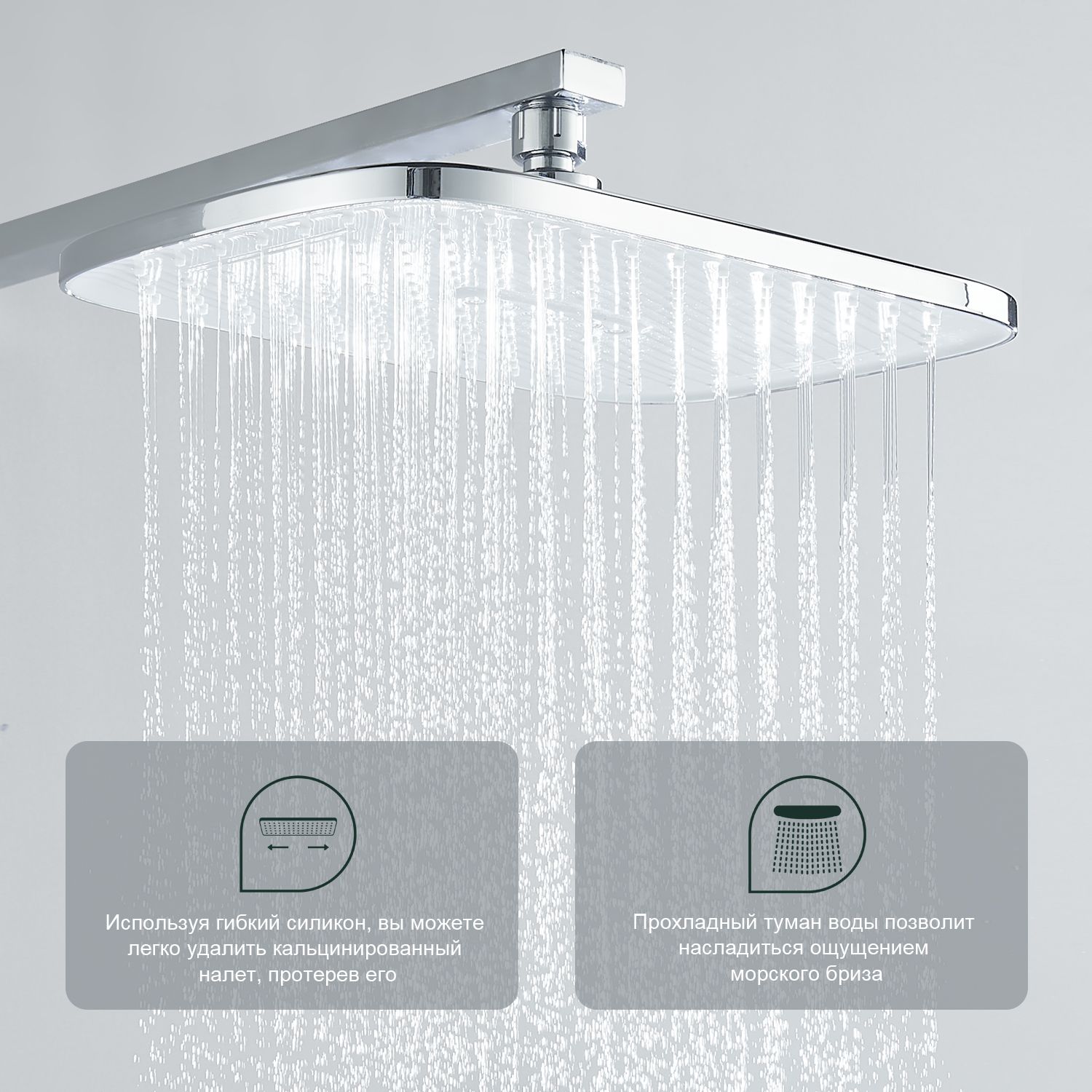 Смеситель, внутренняя часть, шланговое подключение с держателем лейки, душевой шланг, верхний душ с кронштейном, излив |