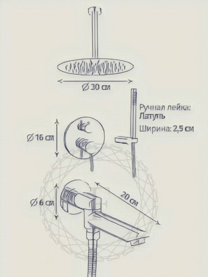 Размер верхнего душа, мм: 300 мм;