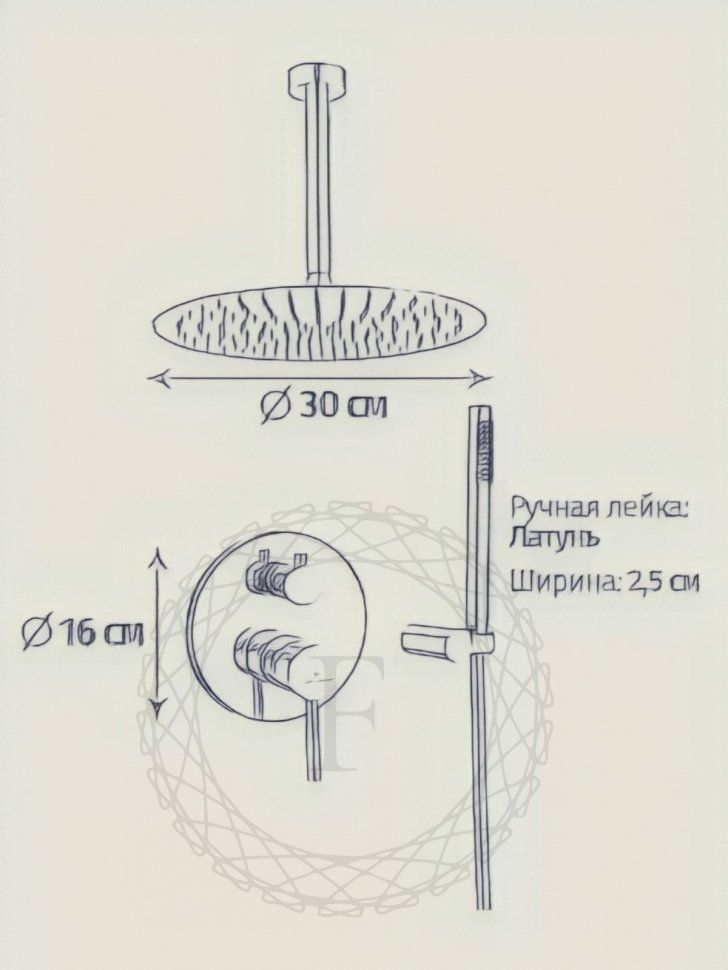 Размер верхнего душа, мм: 300 мм;