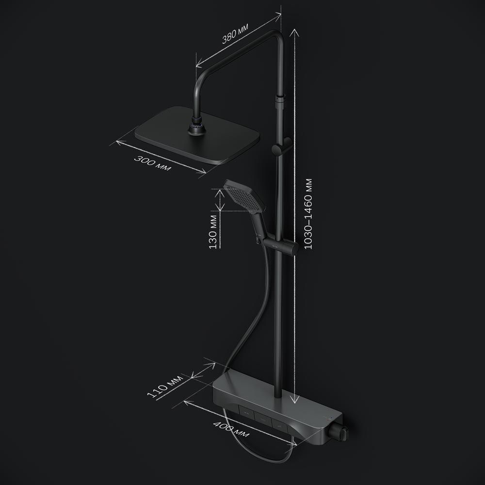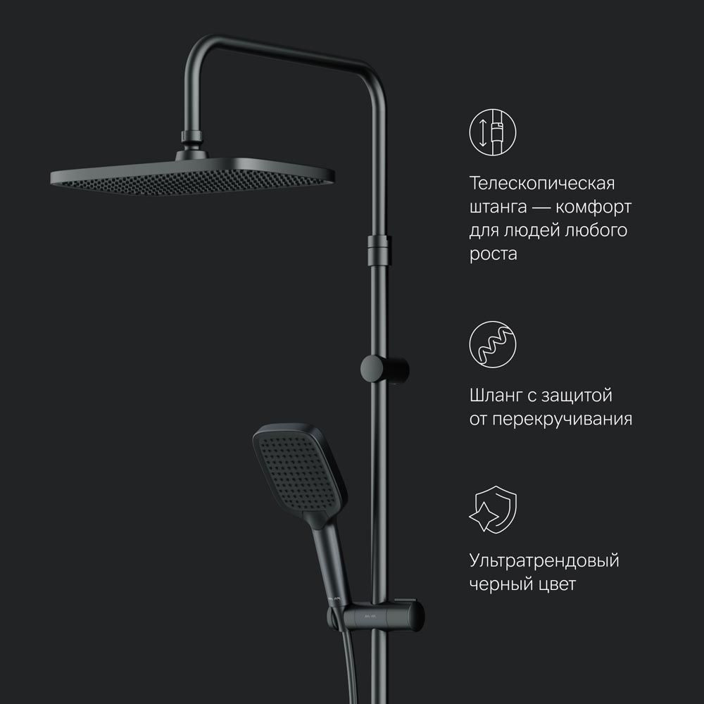 Телескопическая штанга регулируется по высоте в диапазоне от 1030 до 1460 мм обеспечивая комфорт для людей любого роста. А трендовая прямоугольная форма и увеличенный размер тропического душа подарят вам ощущения настоящего домашнего SPA. ""