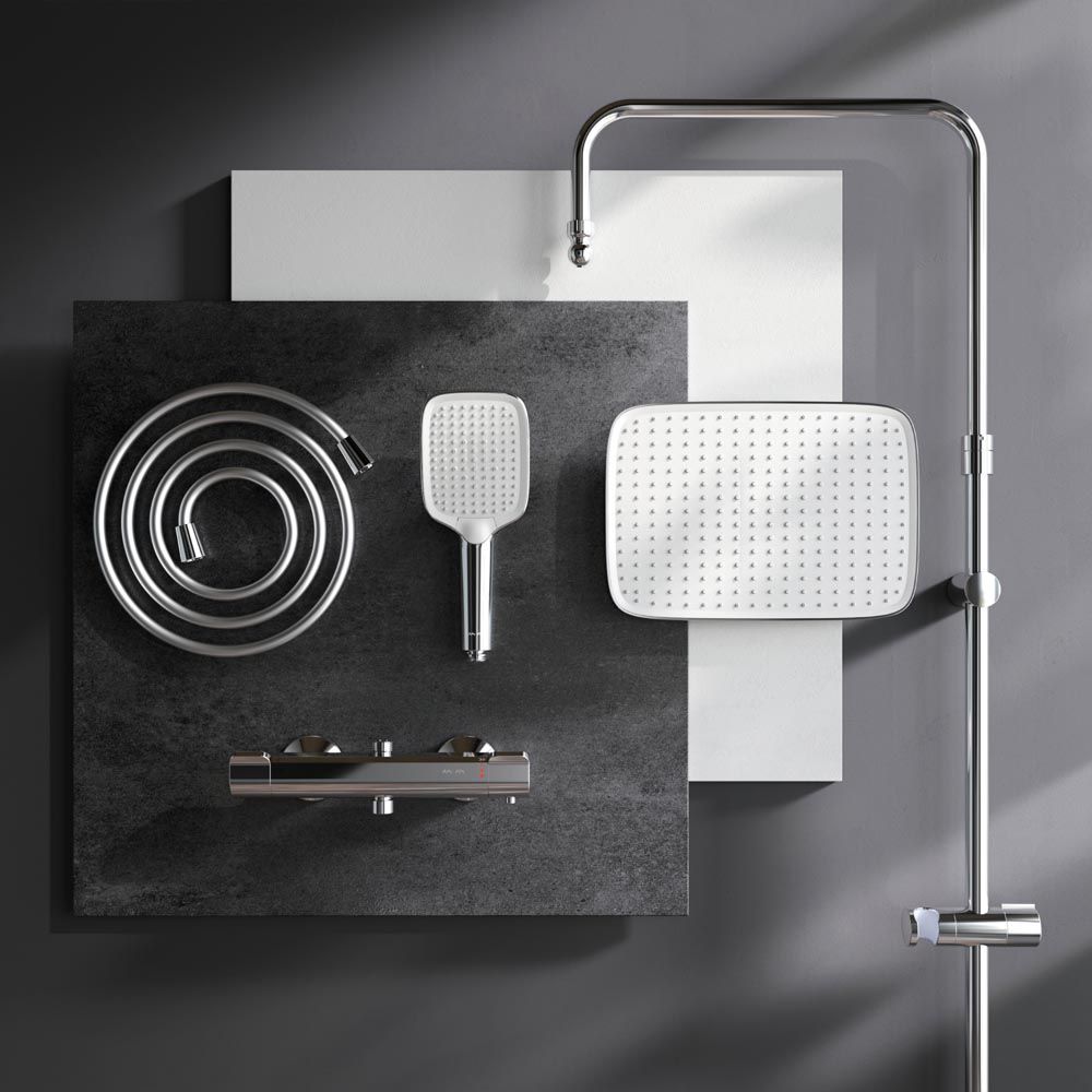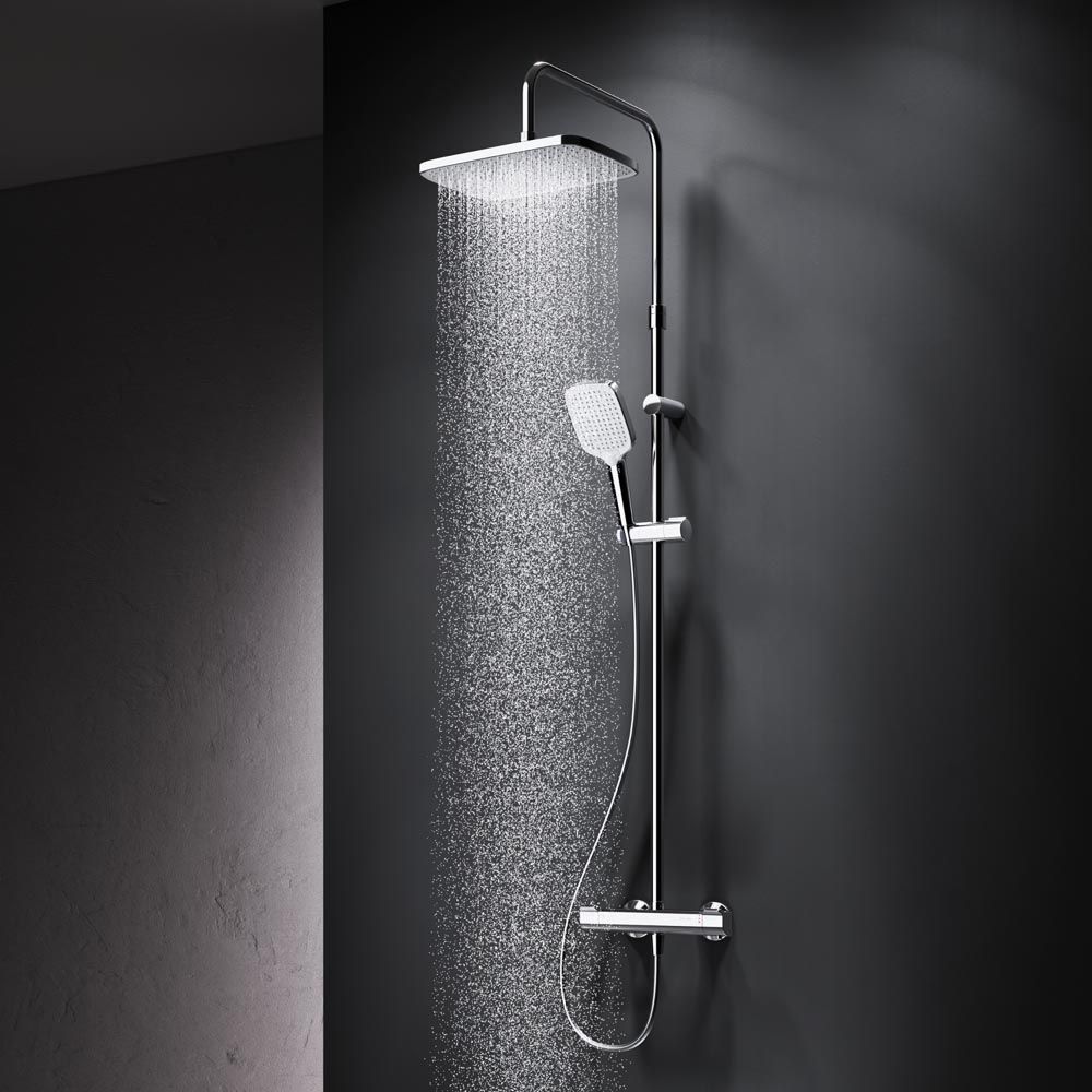 Безупречный внешний вид: яркий геометричный дизайн и утонченный силуэт – душевая система Func станет настоящим украшением современной ванной комнаты. ""