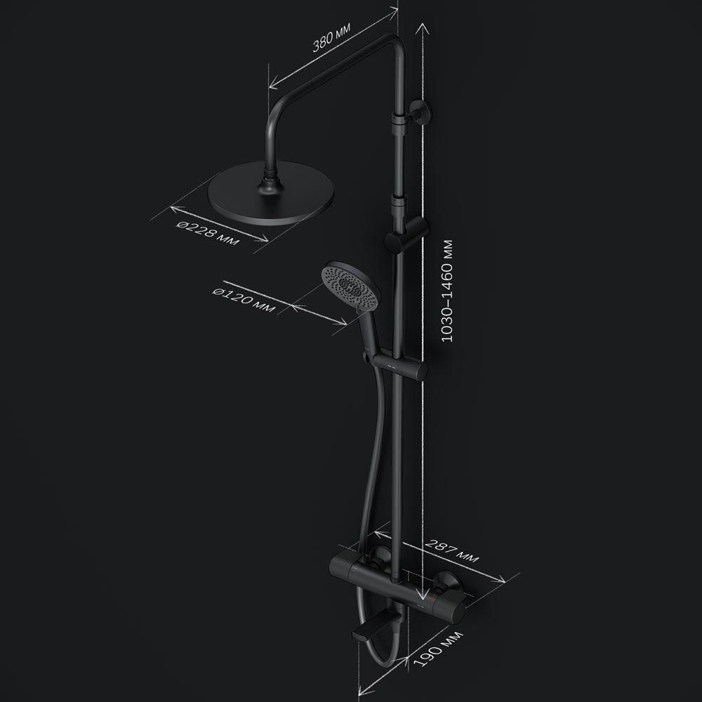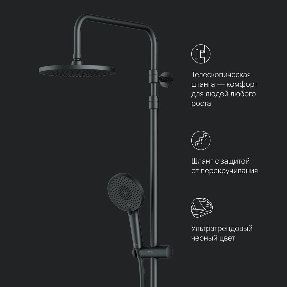Телескопическая штанга с диапазоном регулировки 400 мм сделает процесс принятия душа удобным для людей любого роста. А благодаря увеличенным размерам тропического (228 мм) и ручного (120 мм) душей вы ощутите все преимущества использования дизайнерского продукта.