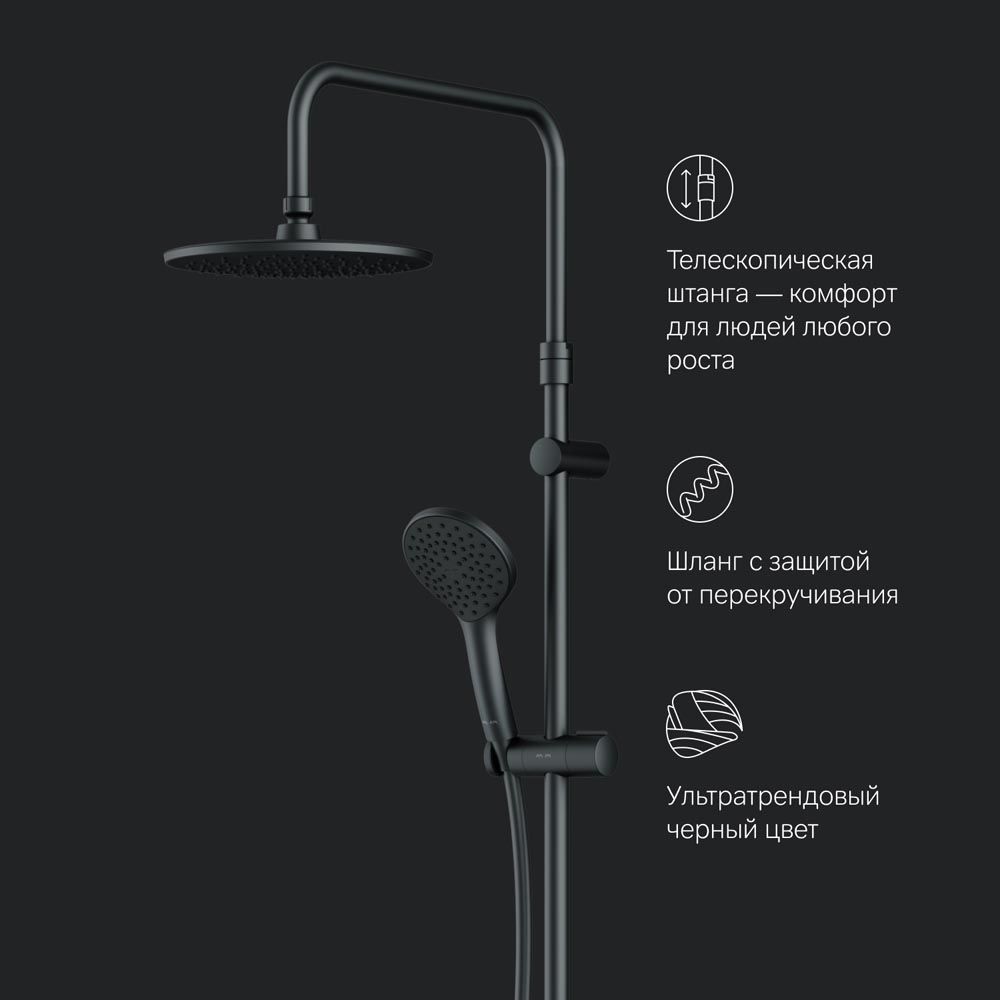 Диаметр душевых леек (верхний душ 220 мм и ручной душ 110 мм) позволит ощутить преимущества тропического душа даже в стандартной ванной тогда как увеличенная длина шланга 1750 мм обеспечит свободу движений во время принятия душа.