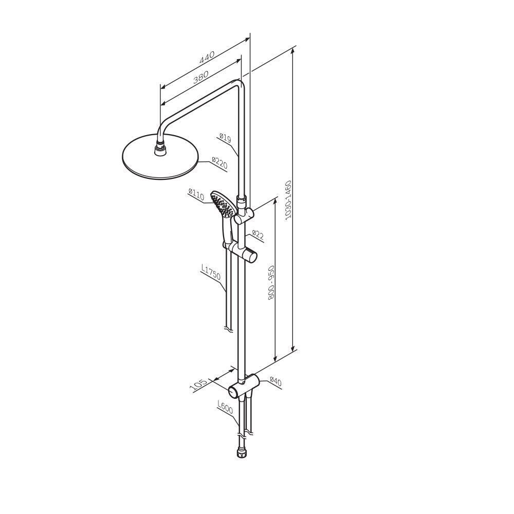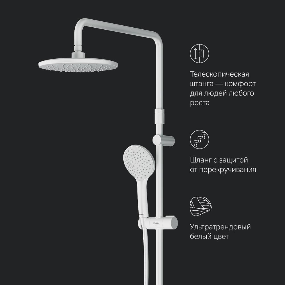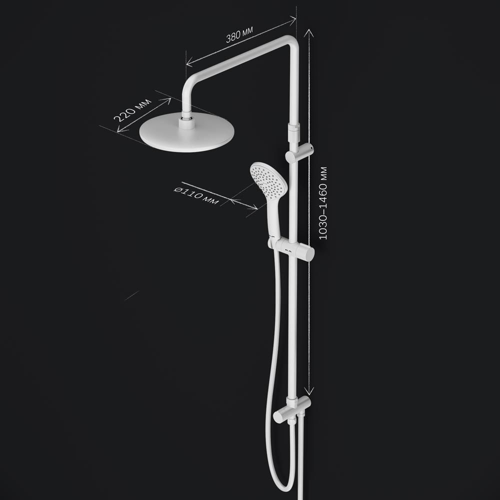 Диаметр душевых леек (верхний душ 220 мм и ручной душ 110 мм) позволит ощутить преимущества тропического душа даже в стандартной ванной тогда как увеличенная длина шланга 1750 мм обеспечит свободу движений во время принятия душа.